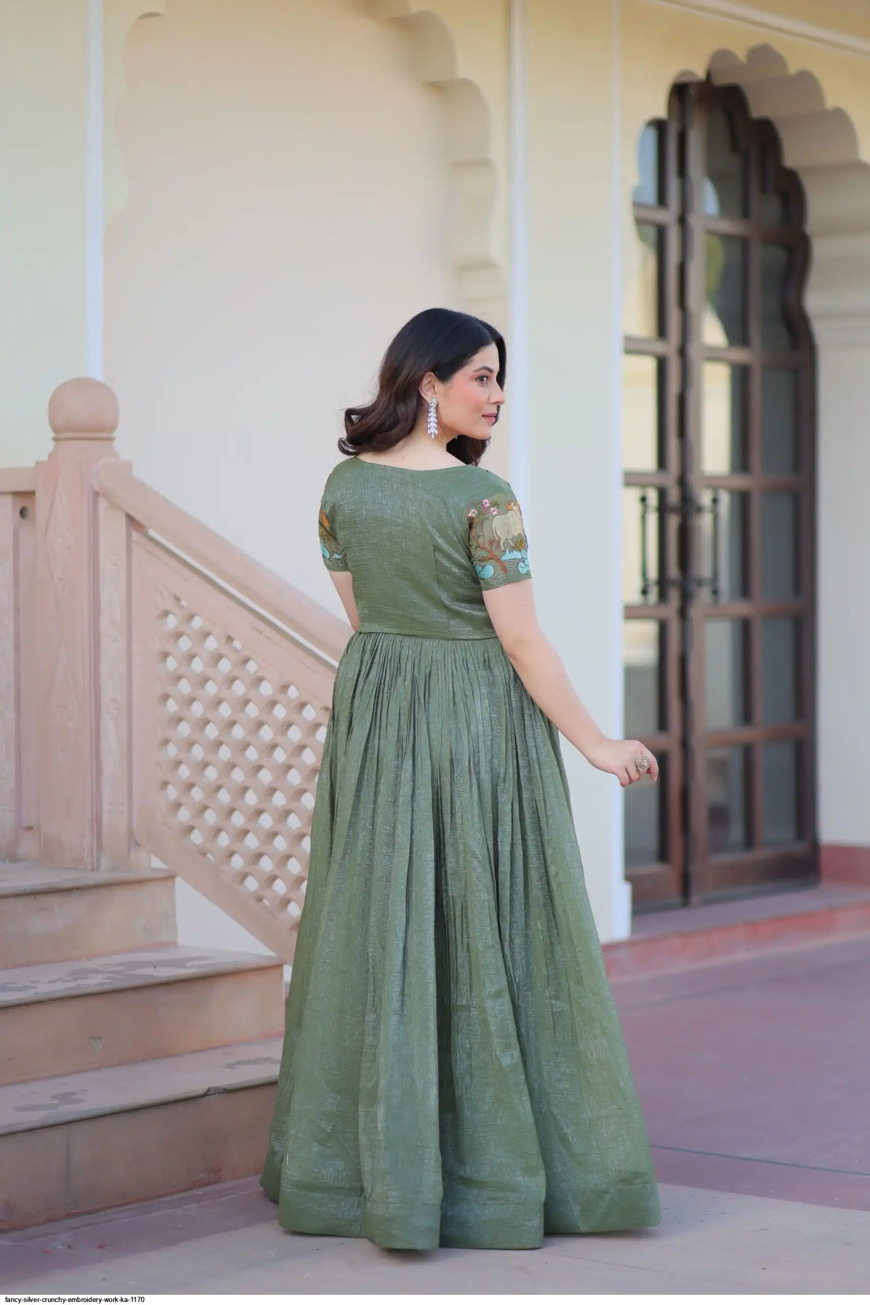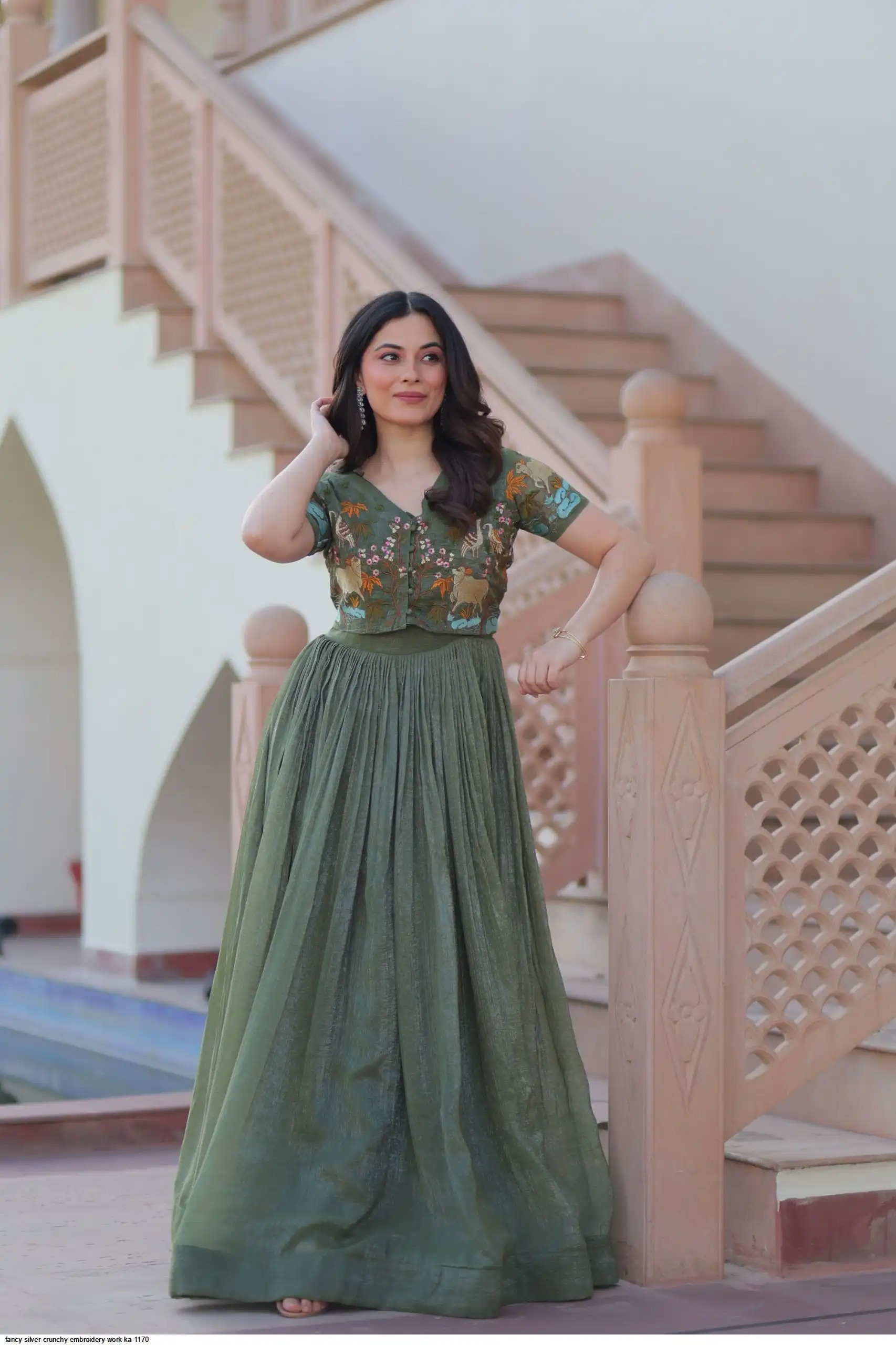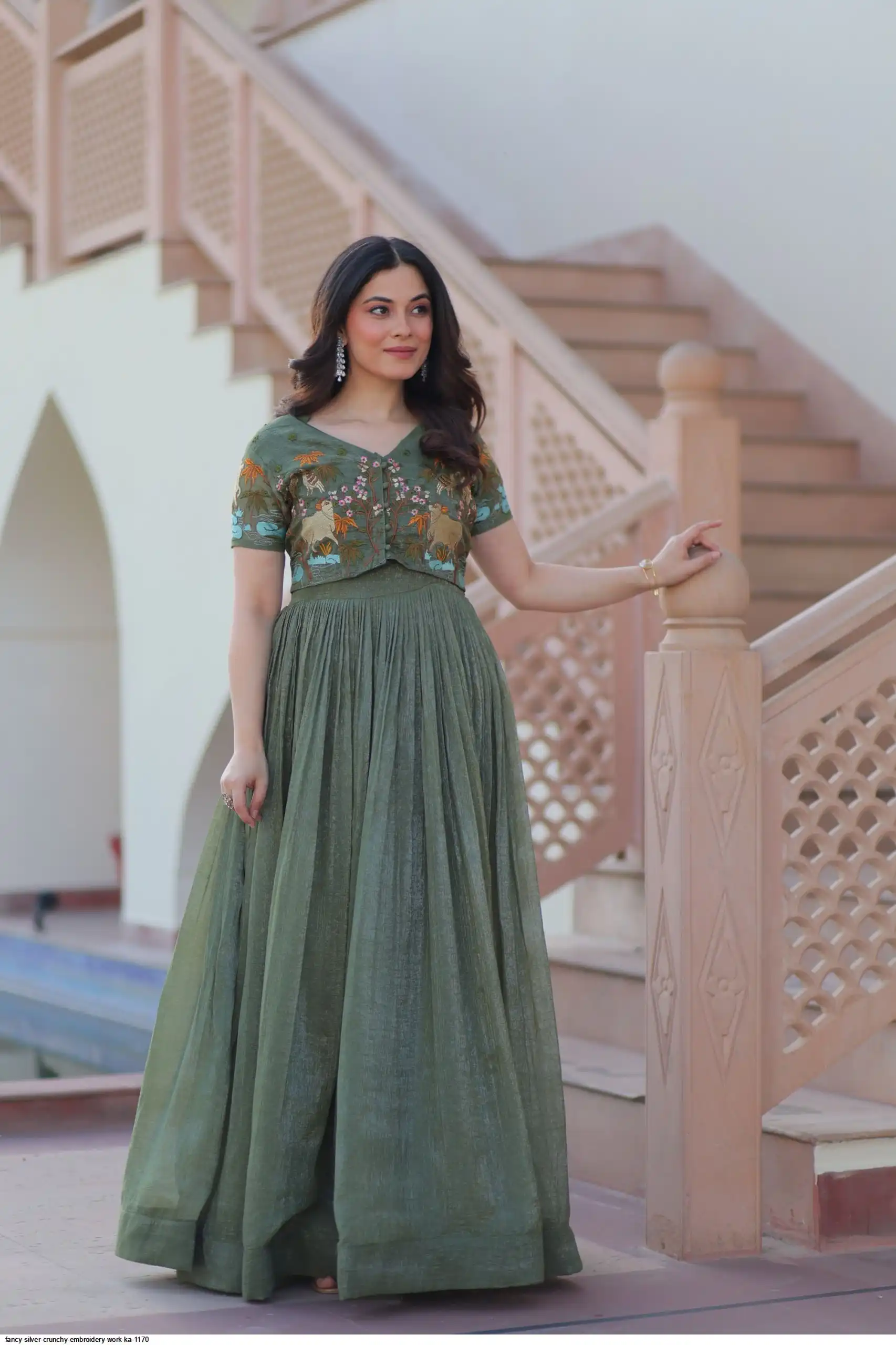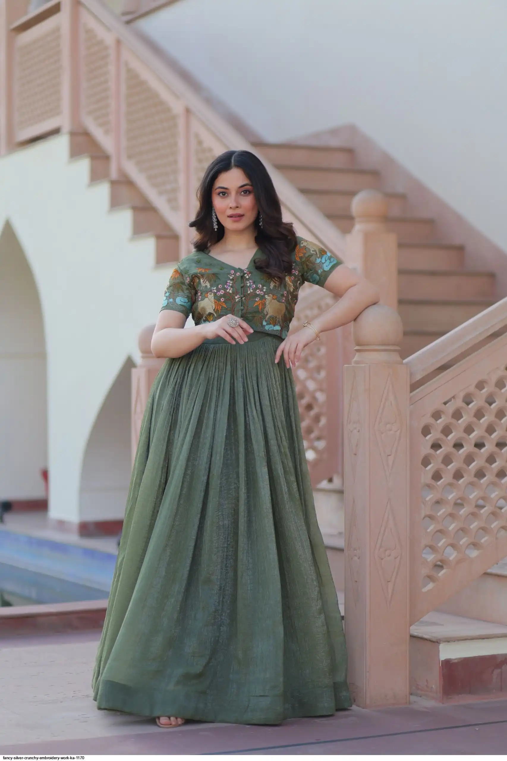 Fabric:- Silver Crunchy Fabric with Embroidery work