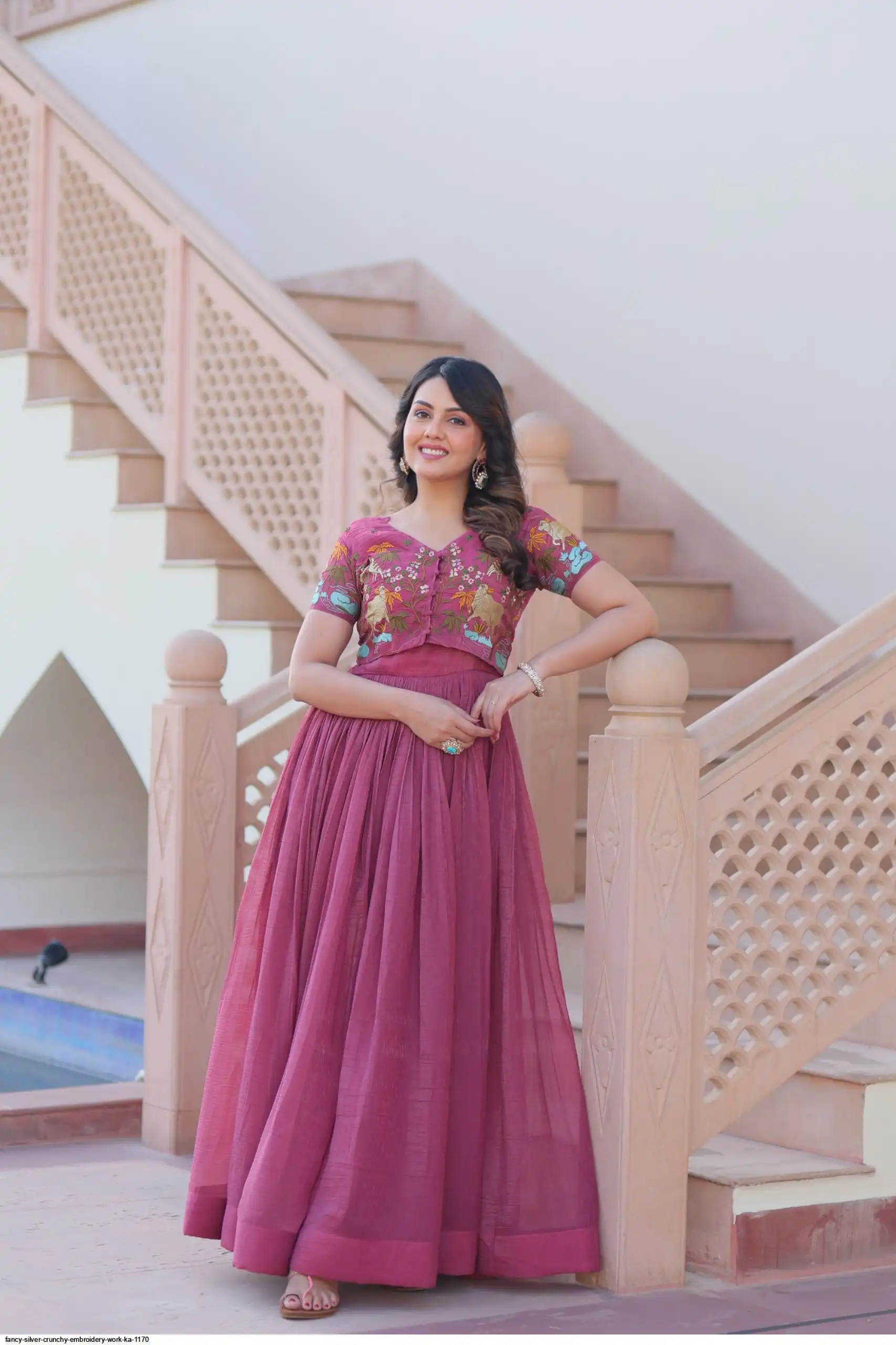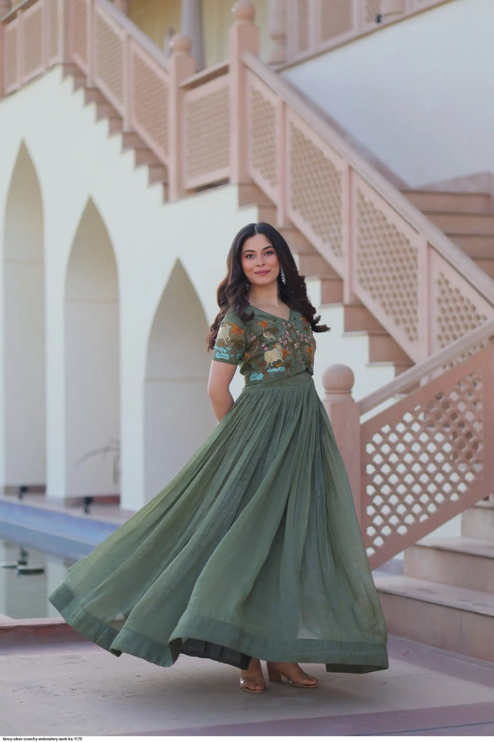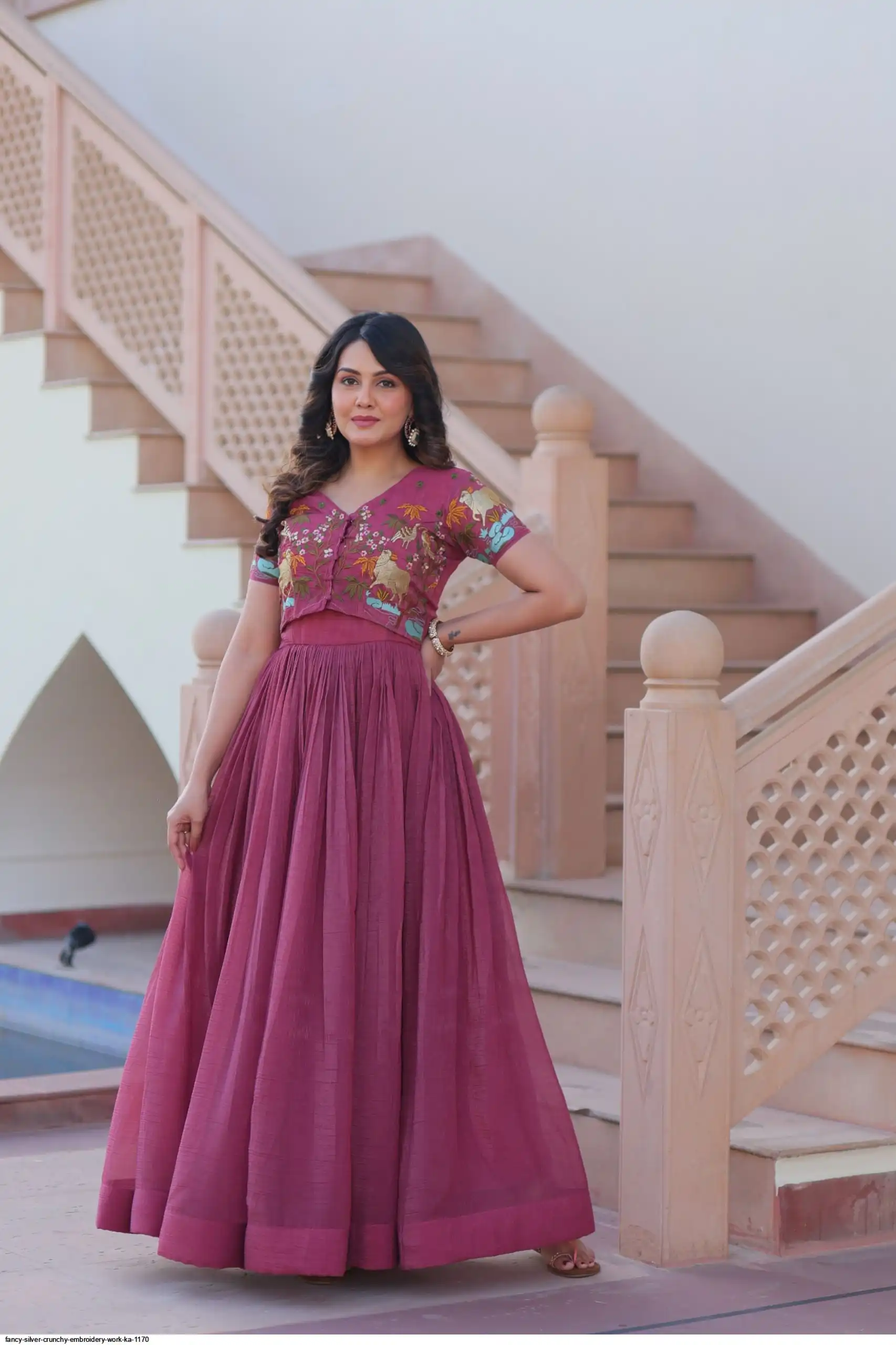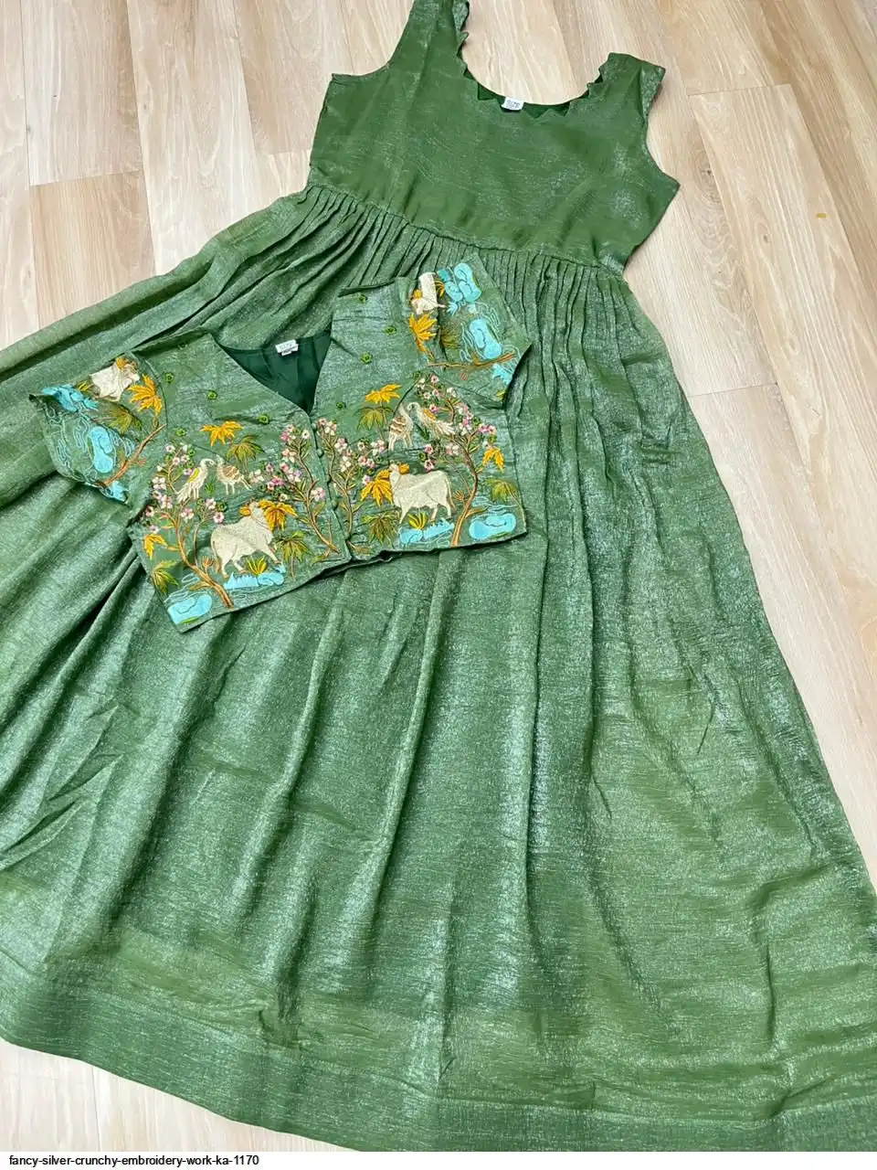Fabric:- Silver Crunchy Fabric with Embroidery work