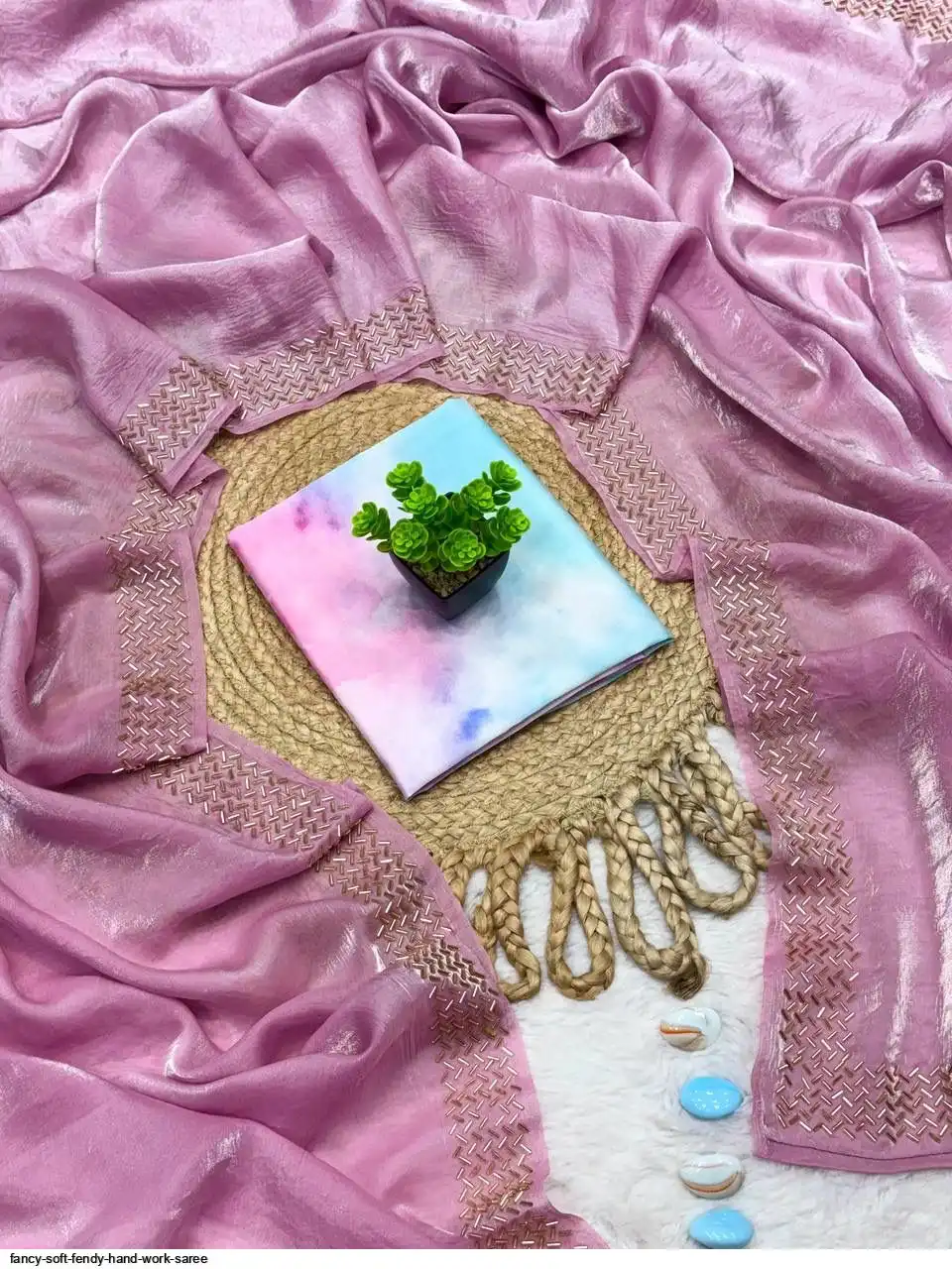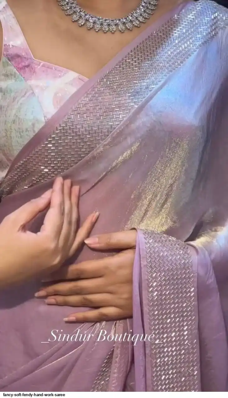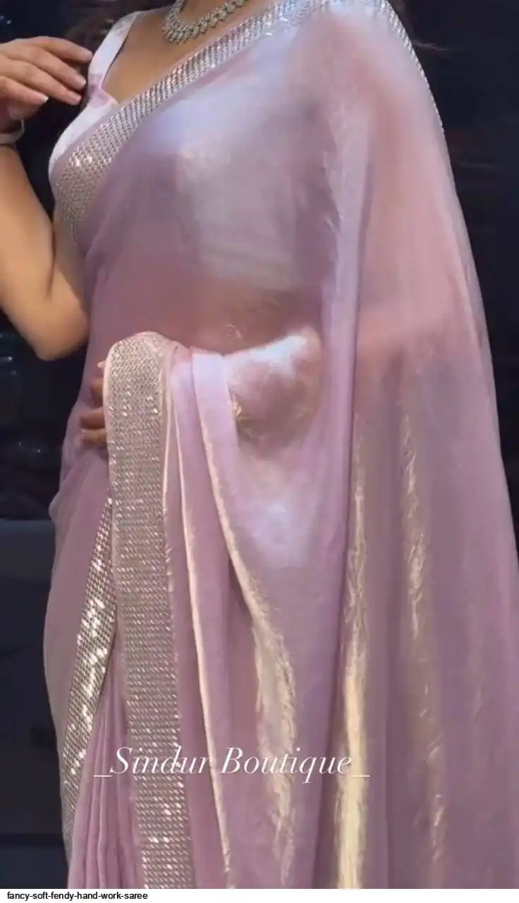 PURE TISSSUE SIMARI SOFT FENDY SAREE ALONG WITH BEADS HAND WORK FOUR SIDE WORK RICH AND ELEGANT LOOK CUT 5.50
