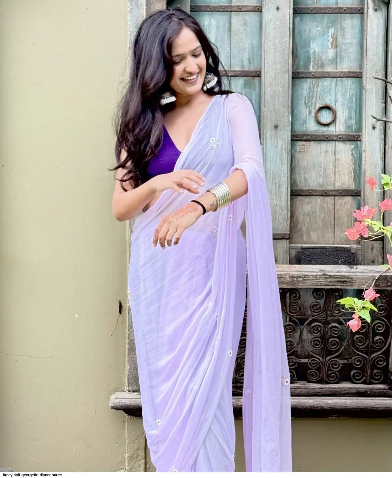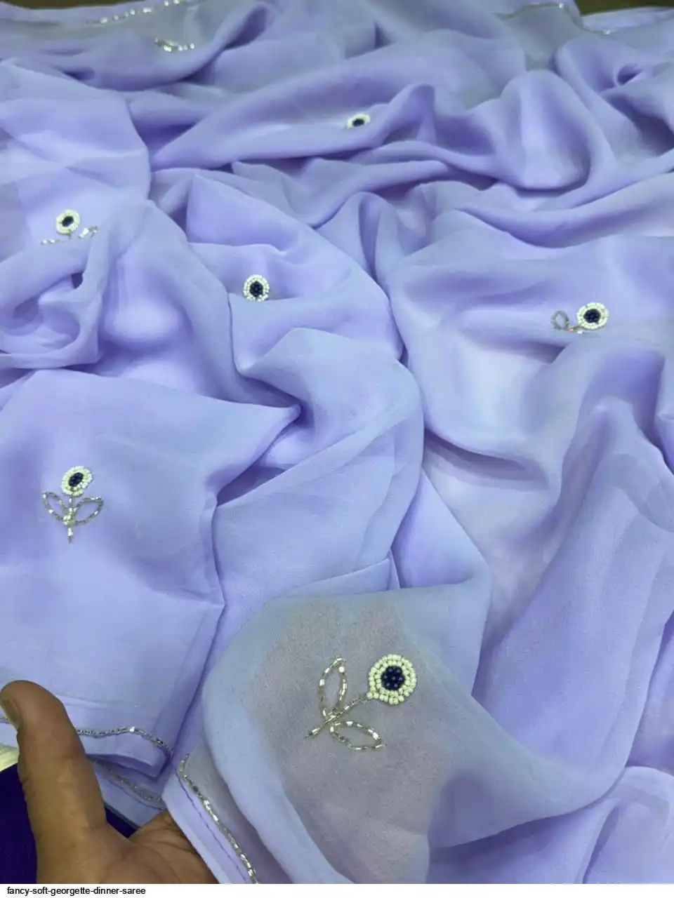 SOFT GEORGETTE DINNER SAREE WITH HANDWORK CUT DANA LEAF WITH SILVER CUT DANA HANDWORK LINE BODER