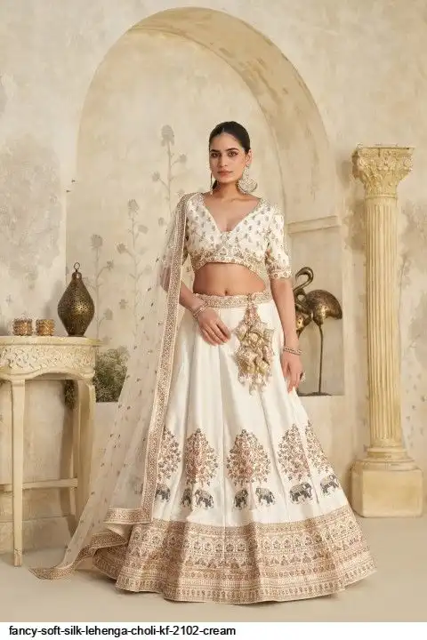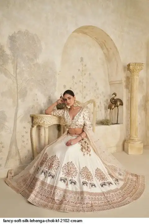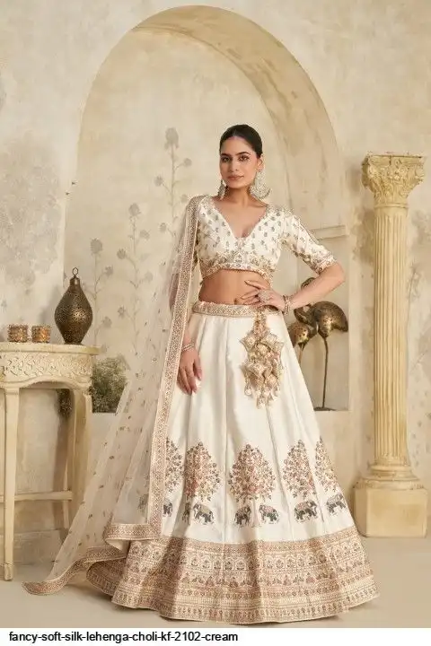 FANCY SOFT SILK LEHENGA CHOLI KF 2102 CREAM