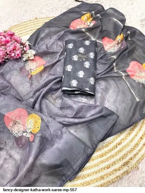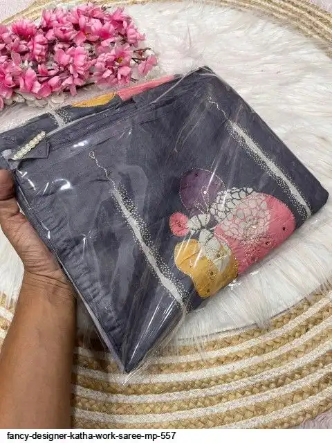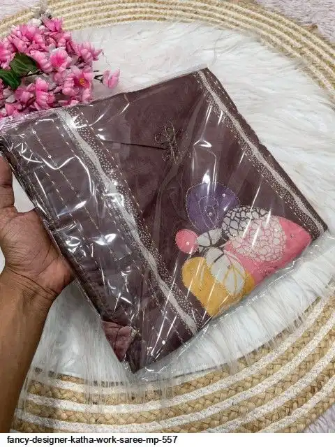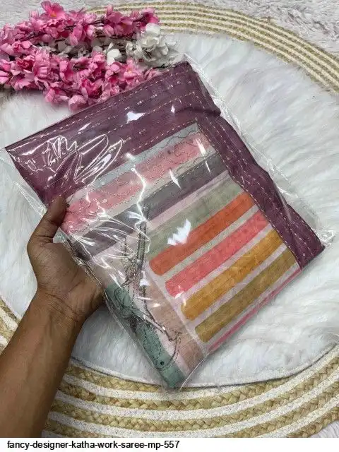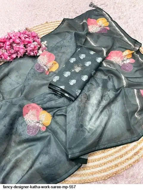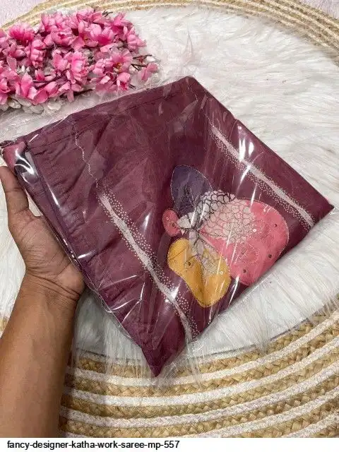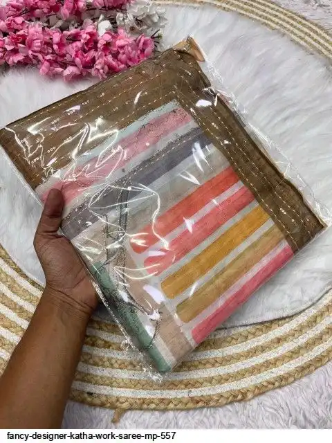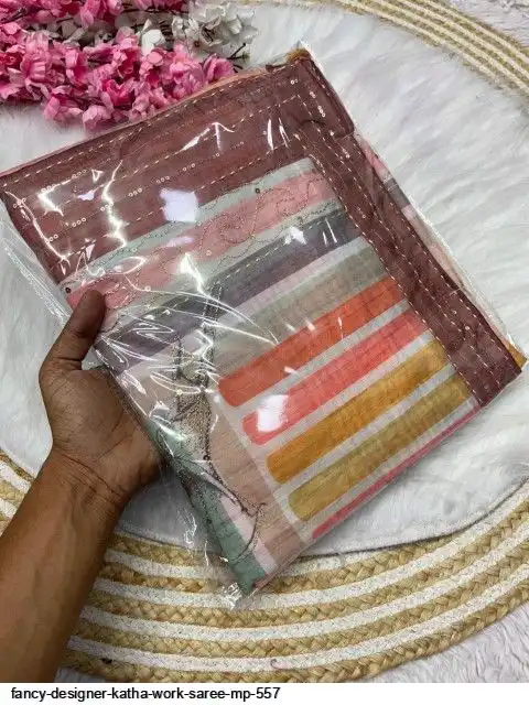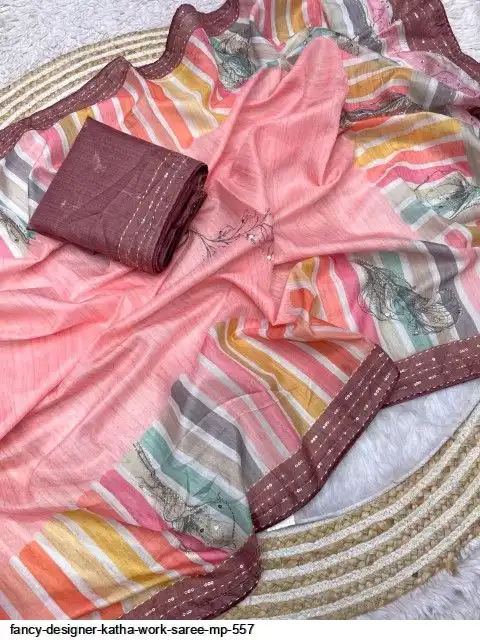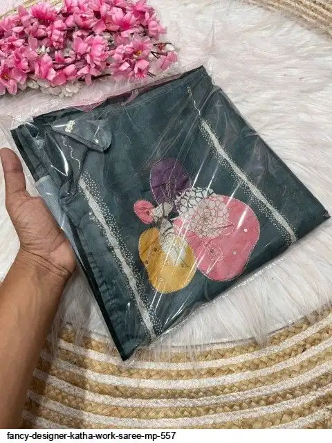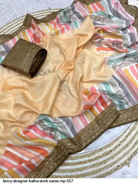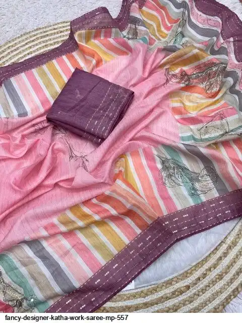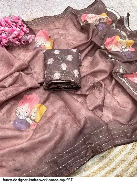 Fabric : Perfect Tusser Sarees With Designer khtha work With Contrast blouse