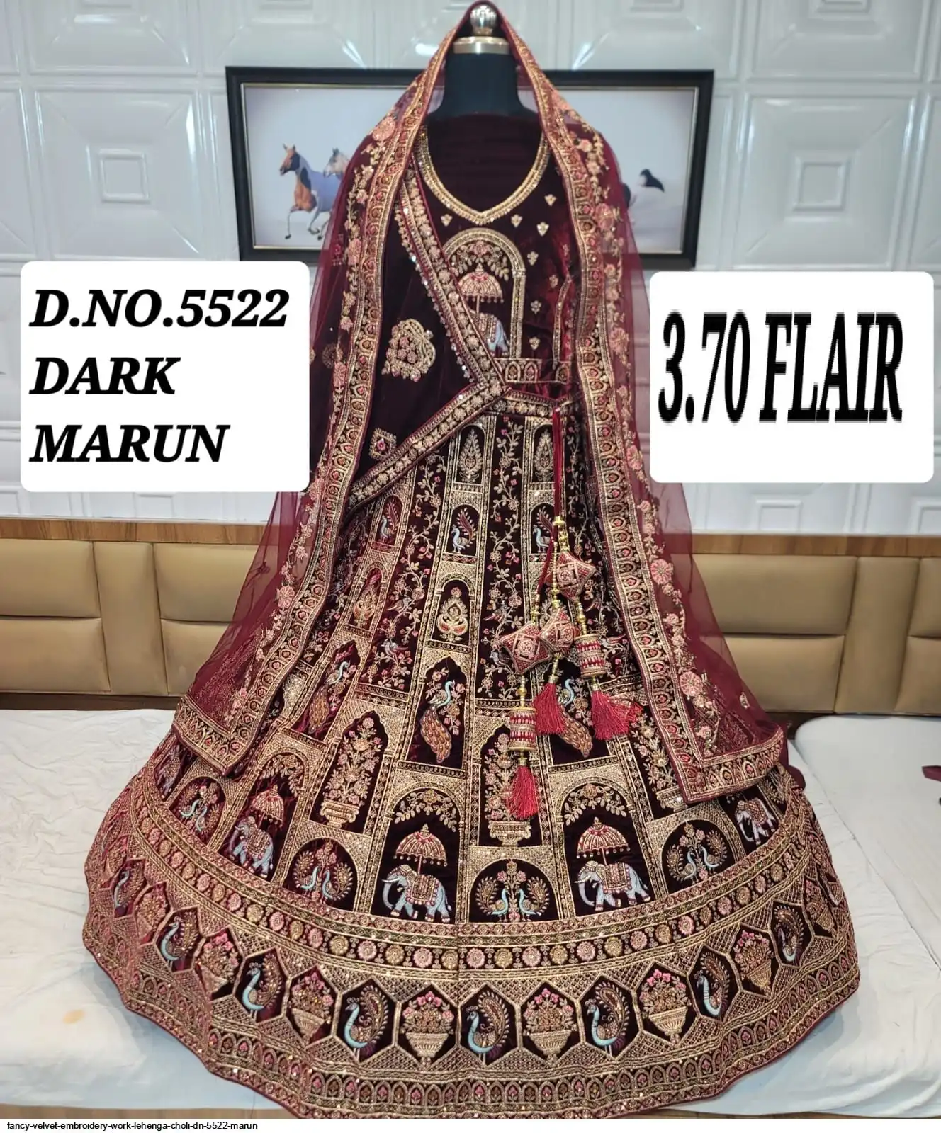 FANCY VELVET EMBROIDERY WORK LEHENGA CHOLI DN 5522 MARUN