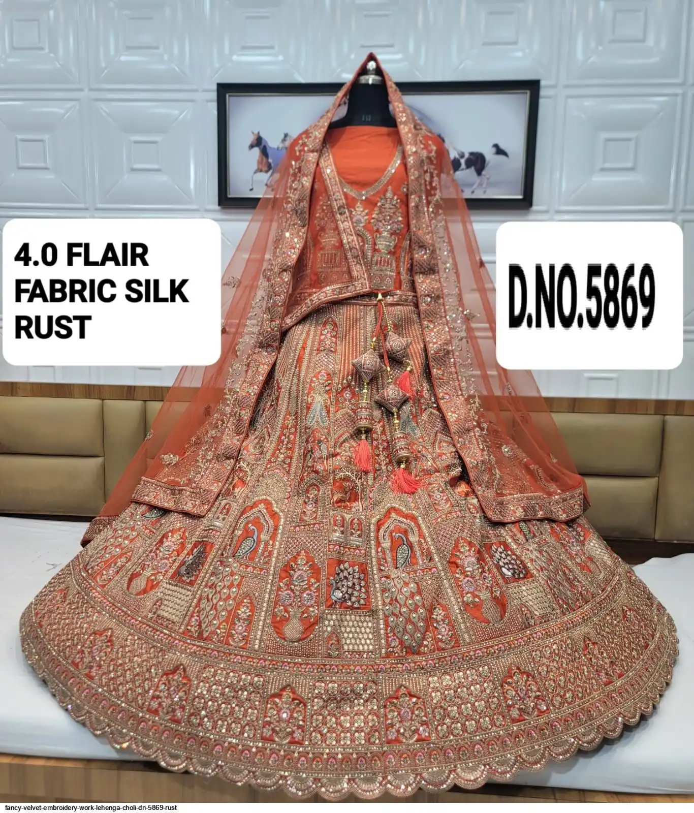 FANCY VELVET EMBROIDERY WORK LEHENGA CHOLI DN 5869 RUST