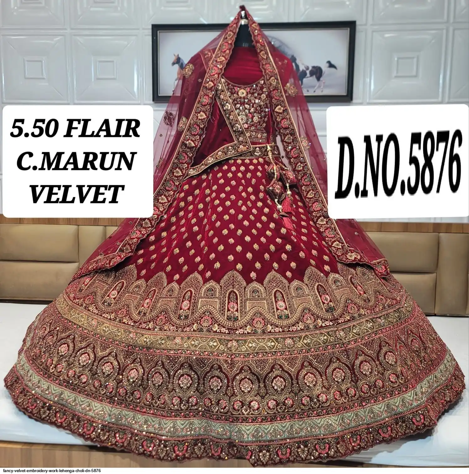 FANCY VELVET EMBROIDERY WORK LEHENGA CHOLI DN 5876
