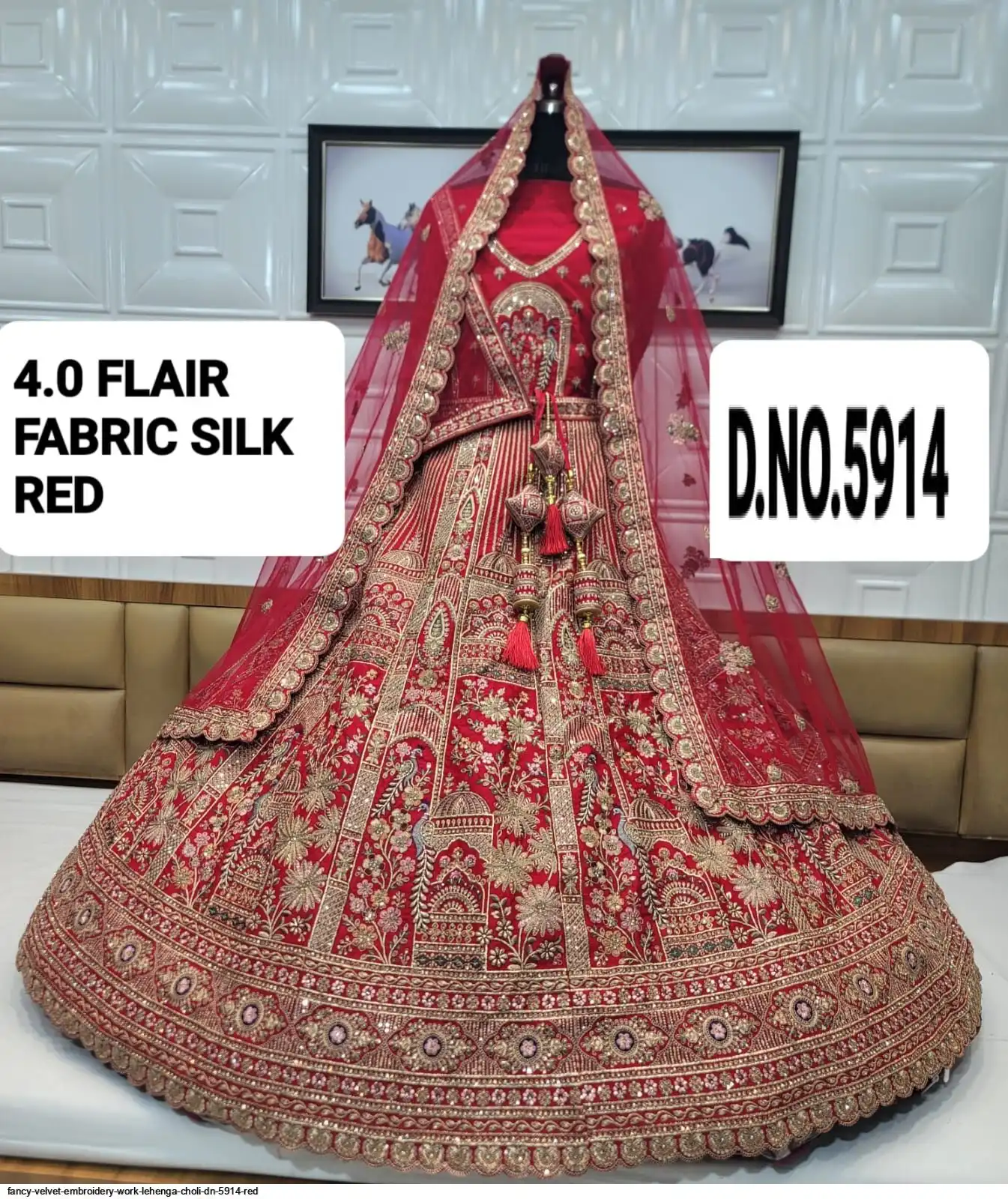 FANCY VELVET EMBROIDERY WORK LEHENGA CHOLI DN 5914 RED