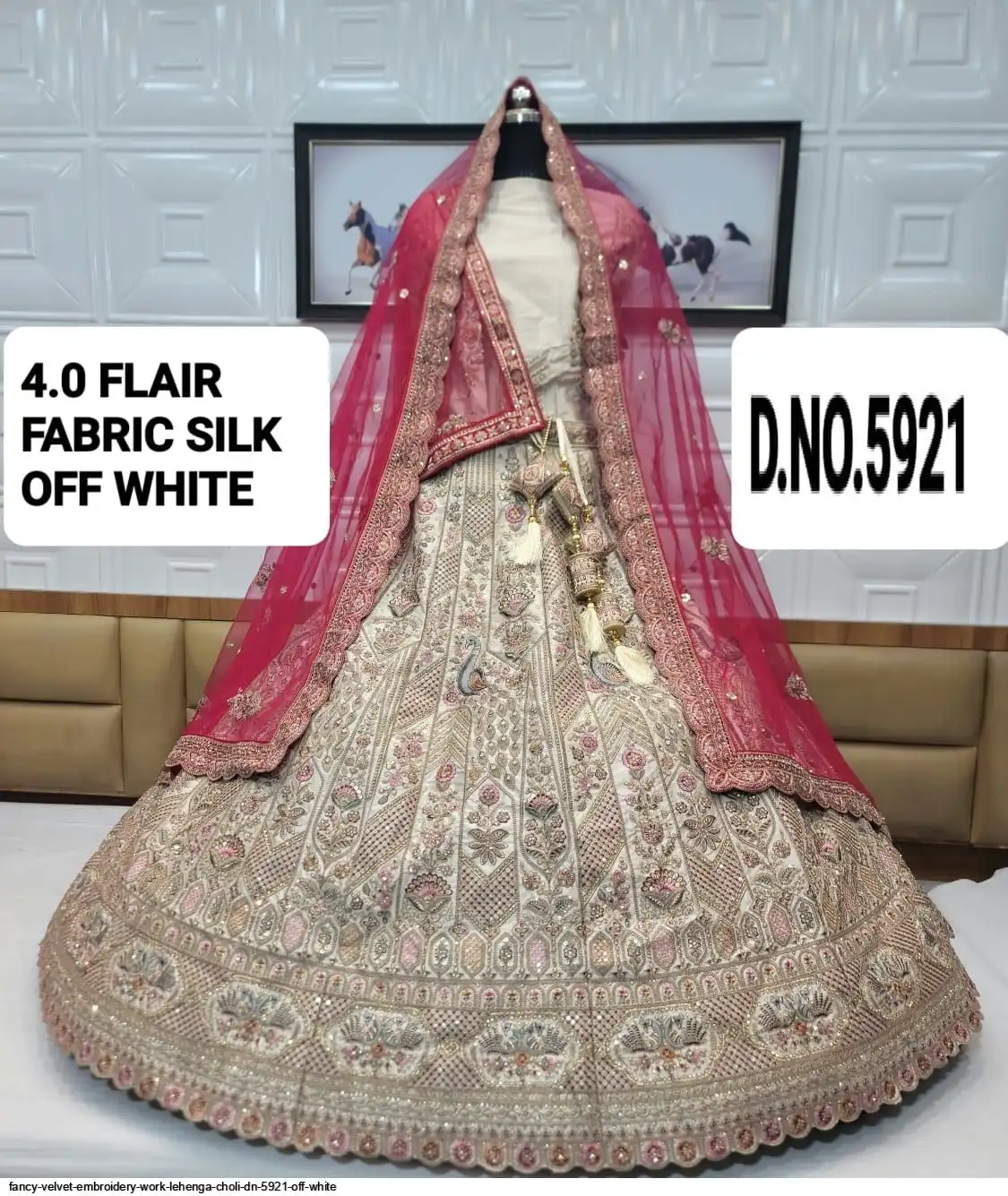 FANCY VELVET EMBROIDERY WORK LEHENGA CHOLI DN 5921 OFF WHITE