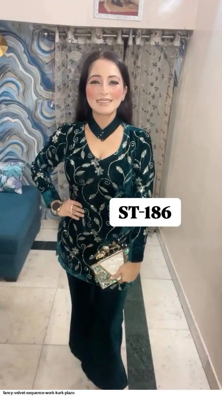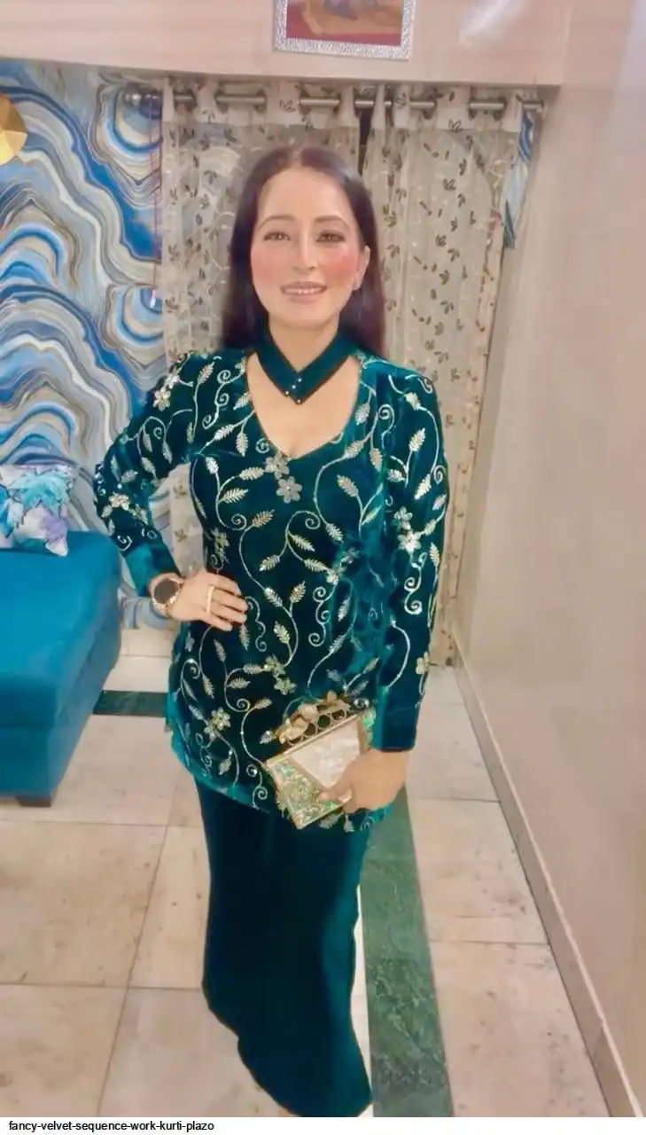 NEW DESIGNER PARTY WEAR HEAVY VISCOSE VELVET TOP WITH PENT