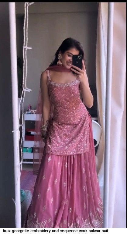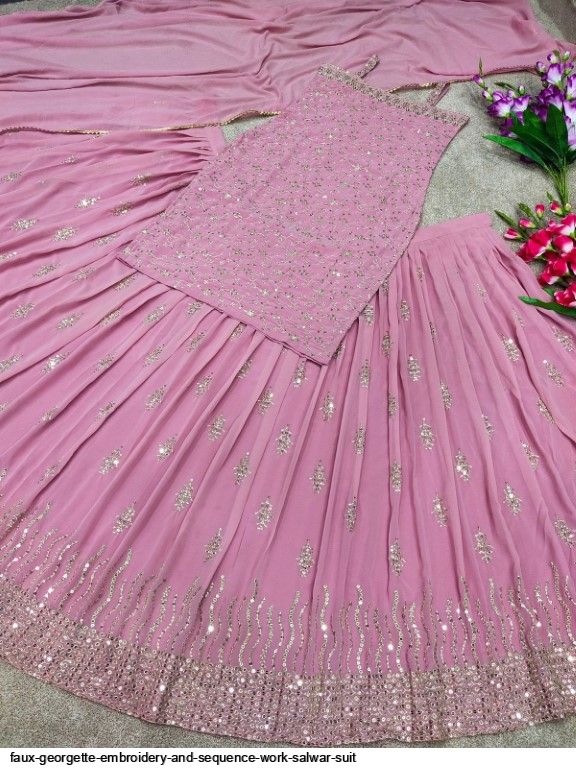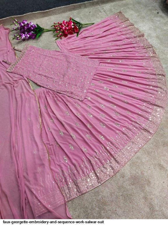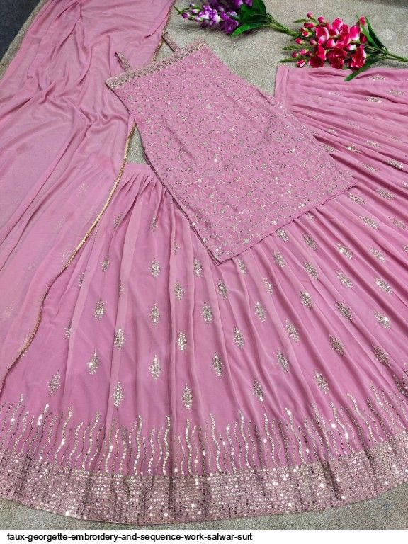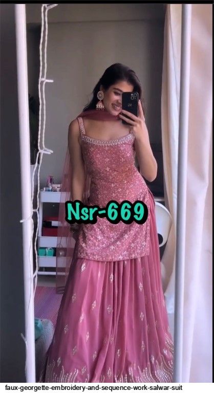 Top Fabrics :Faux Georgette With Heavy Embroidery And 5mm Sequence Work With Sleev Fabric