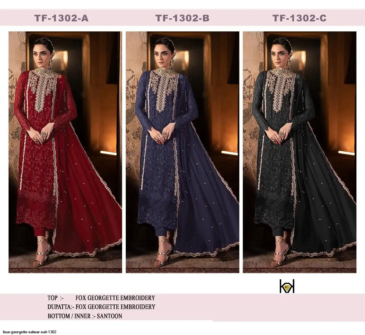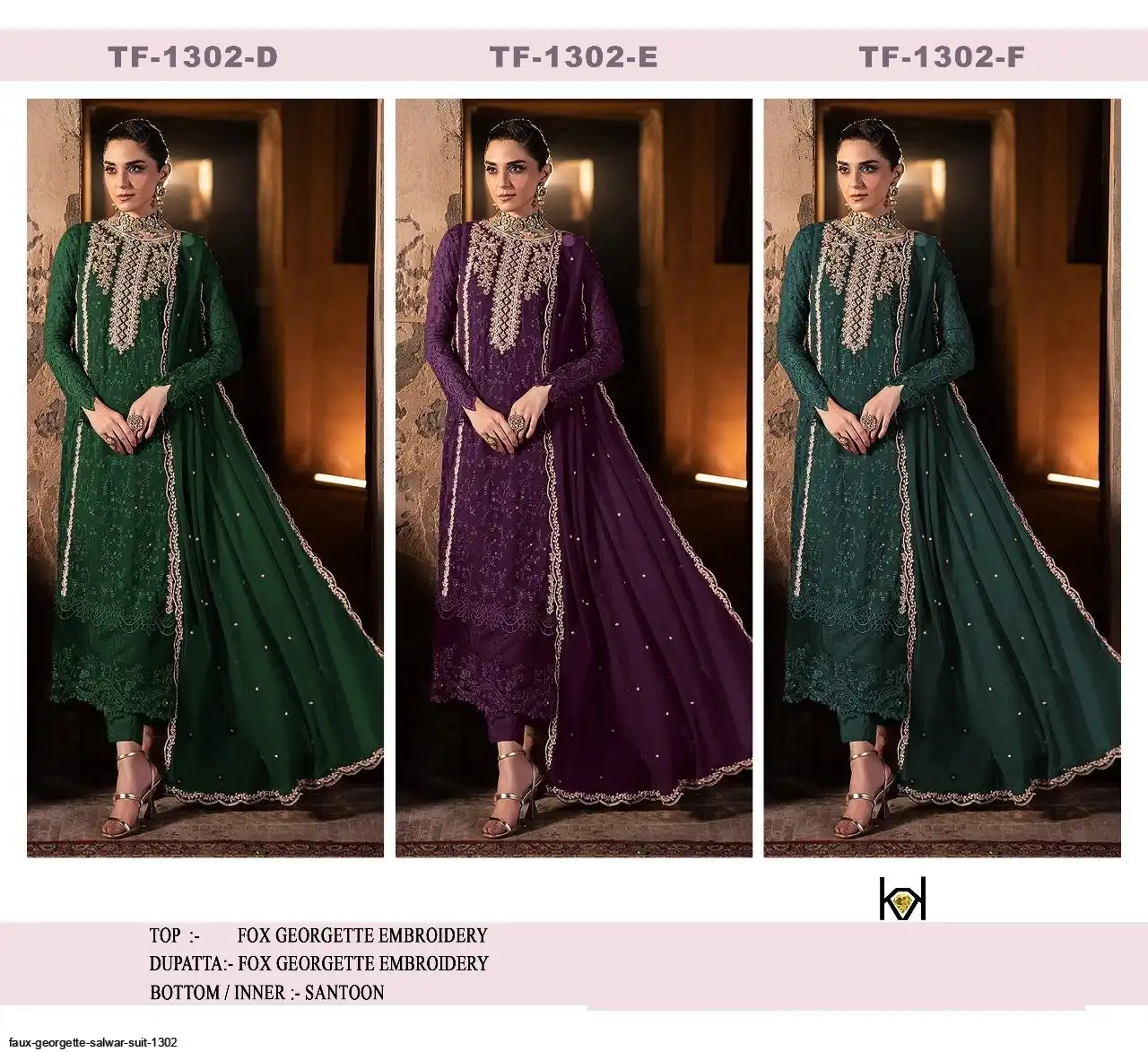 TOP FRONT:- FAUX GEORGETTE with Embroidery 3 mm Siq. work+ DAMAN LESS
