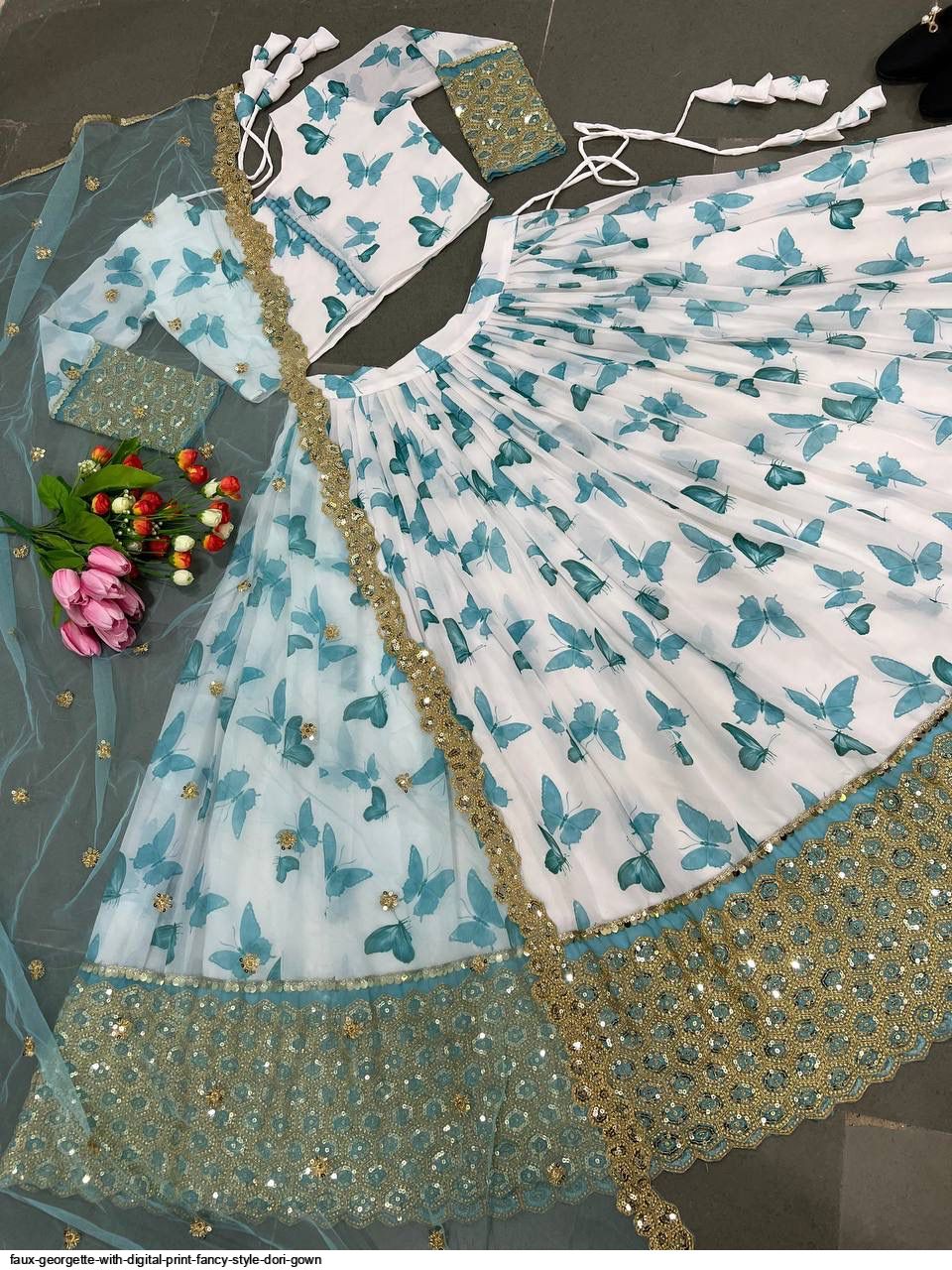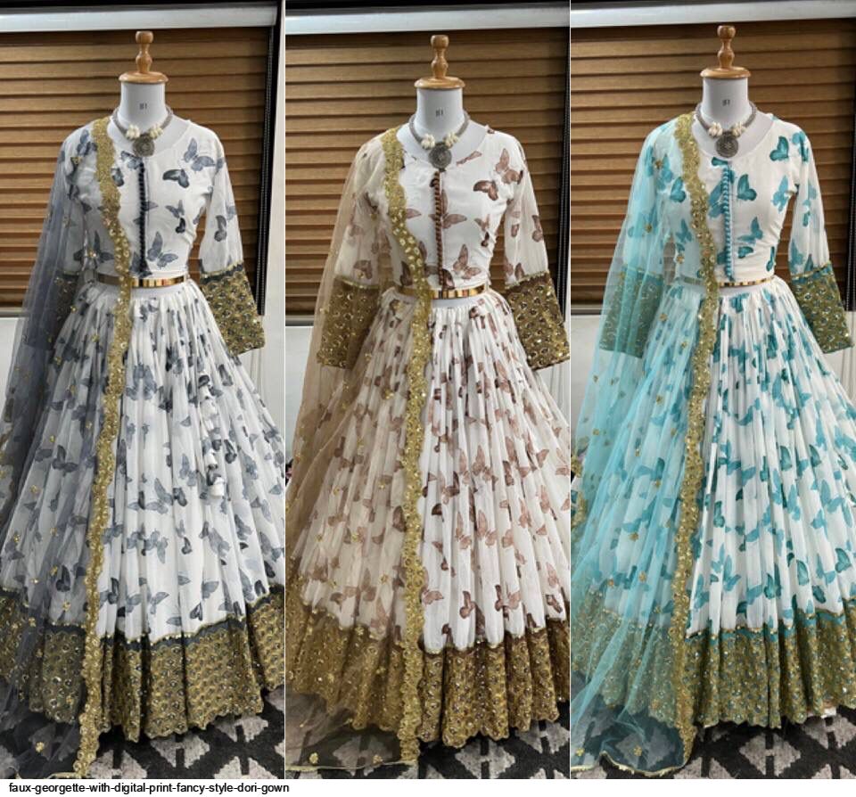Choli Fabric: Faux Georgette With Digital Print and Embroidery Sequence Work With Fancy Style Dori (Full Stiched Up to 42 And Margin for 44 Size)