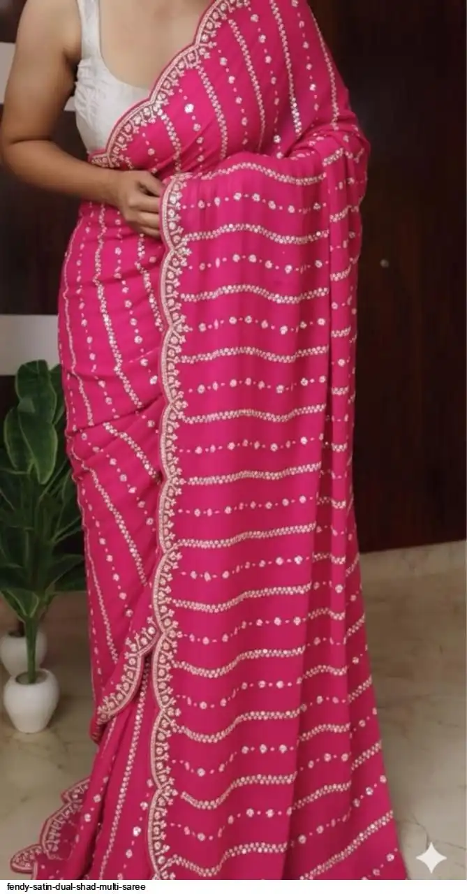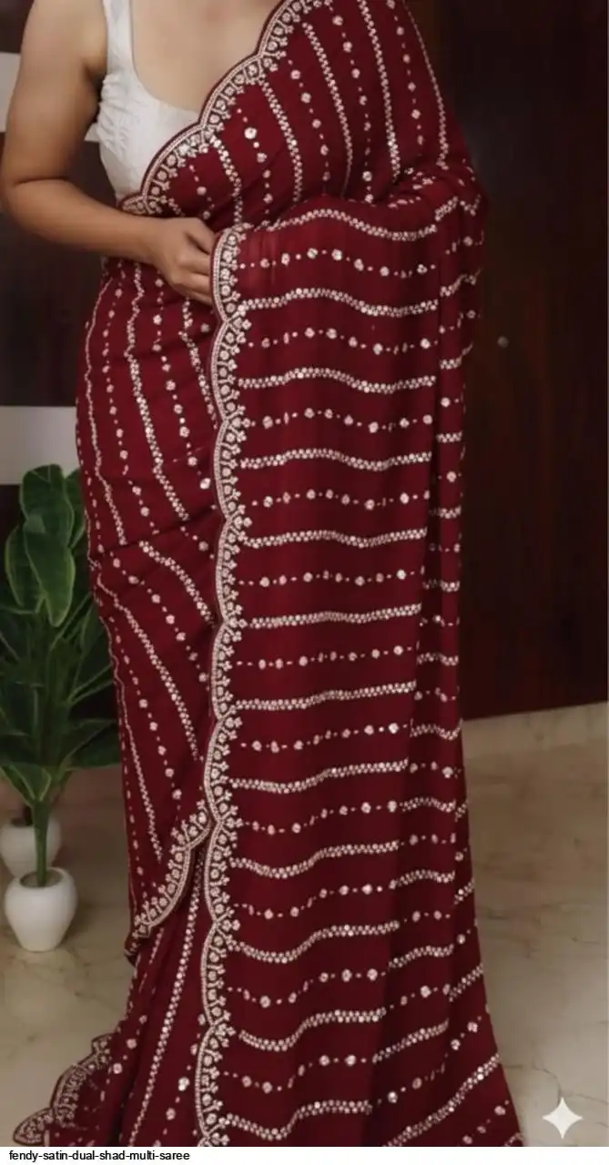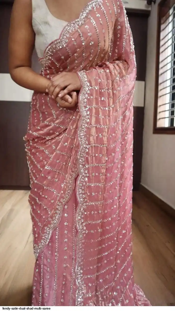Fendy Sattin Dual Shad Saree Multi Sequence Emrodairy Work With Running Blouse Embroidery work