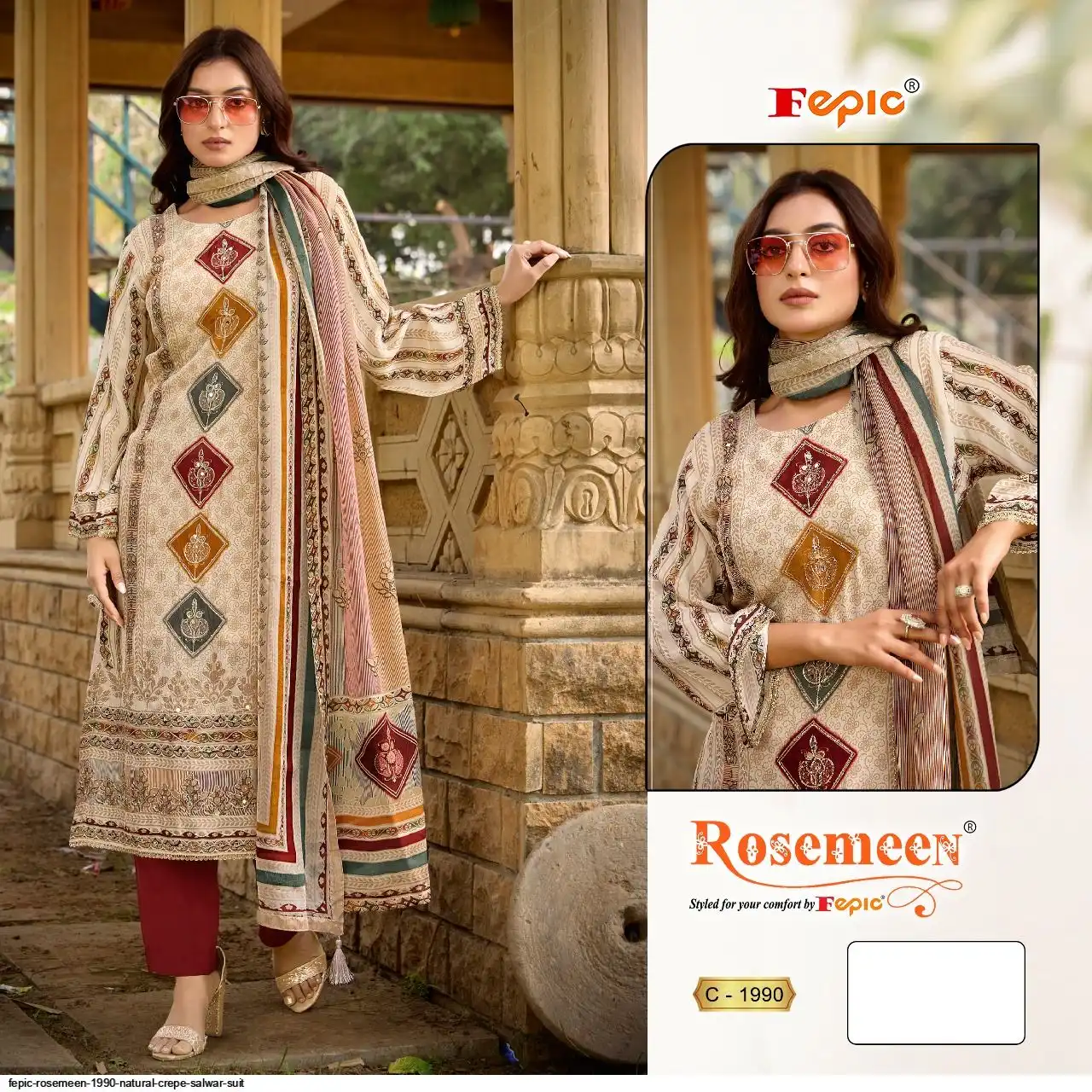 Top:- PURE NATURAL CREPE PRINTED EMBROIDERED