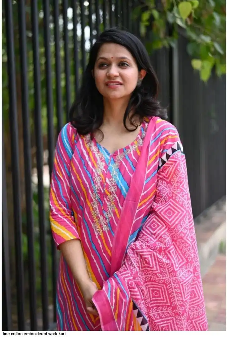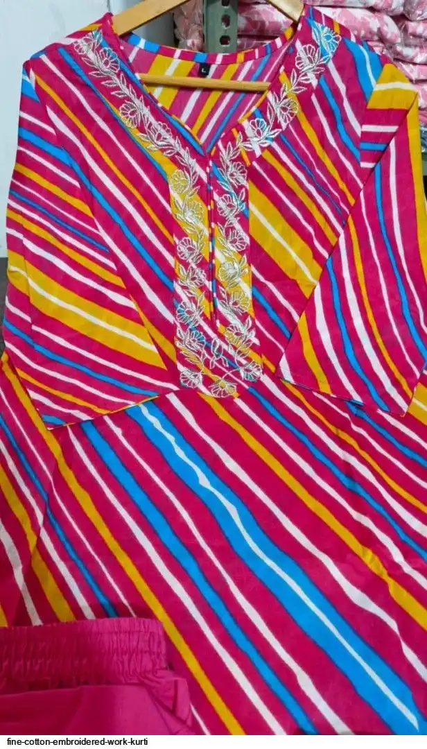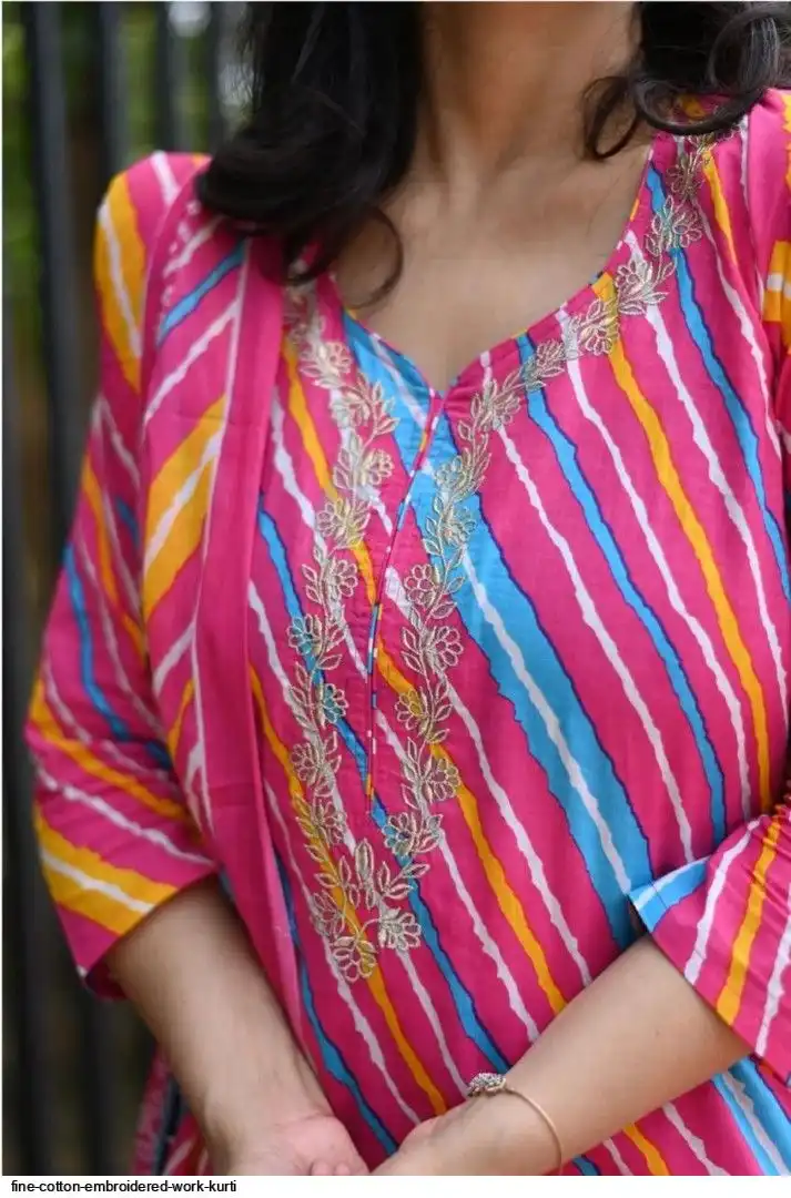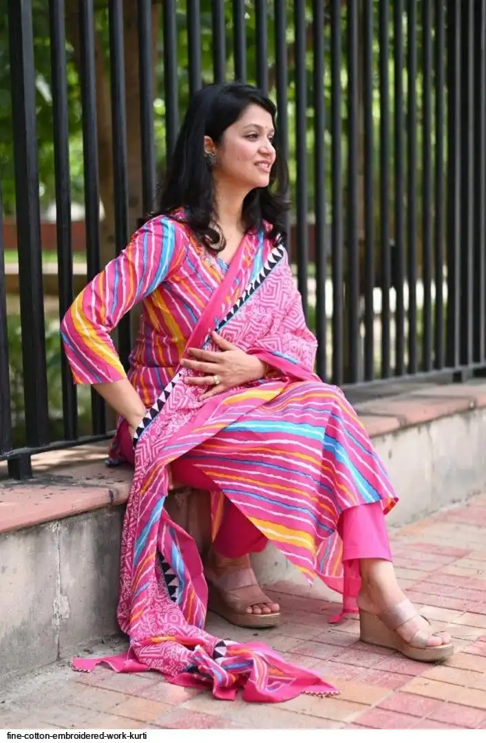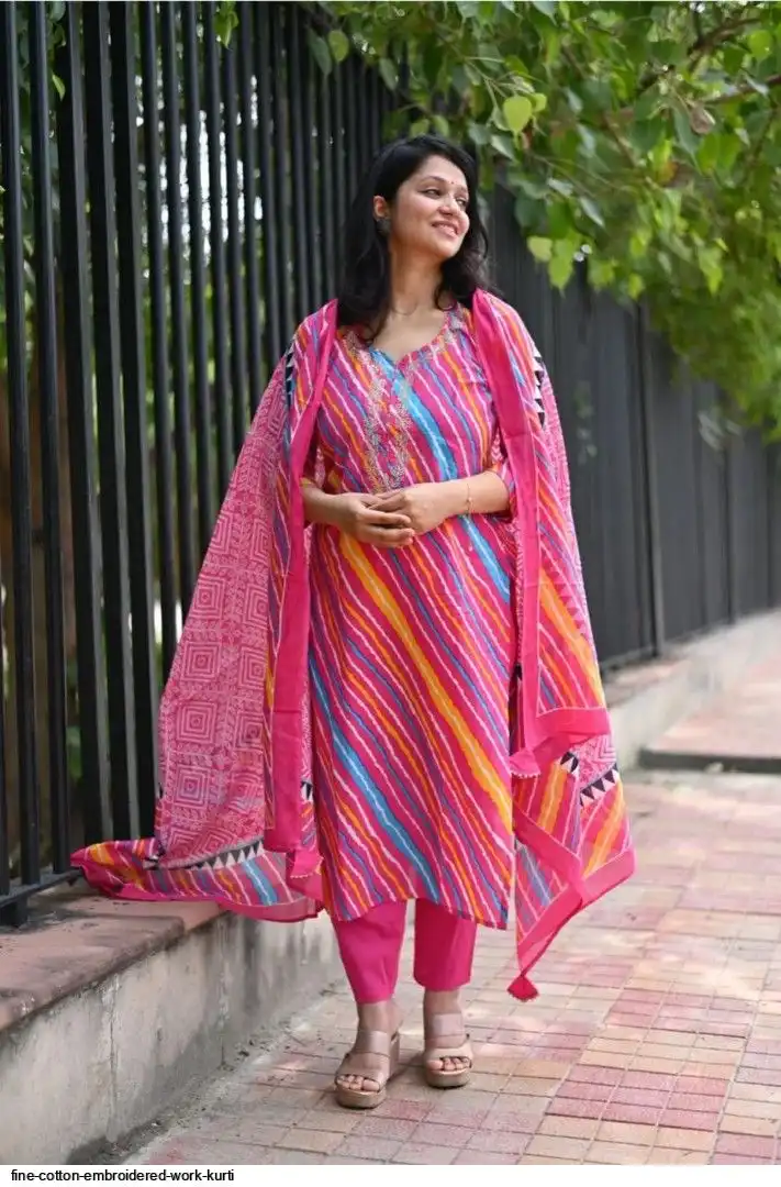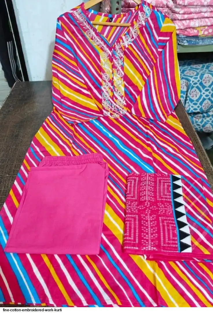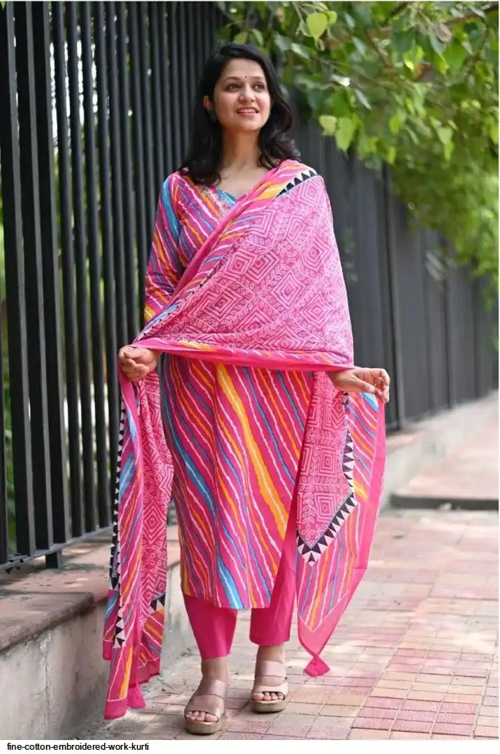Pure fine Cotton fabric lahariya Kurti with Pant with cotton 100-100 Dupatta