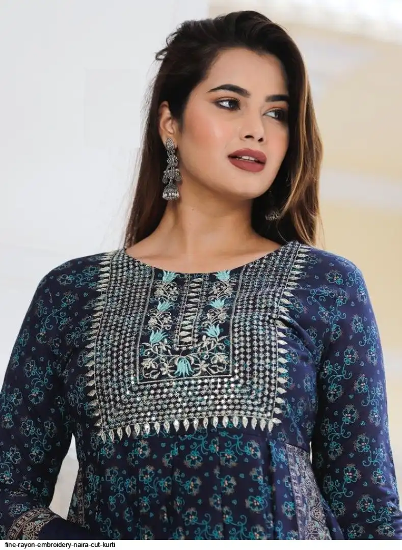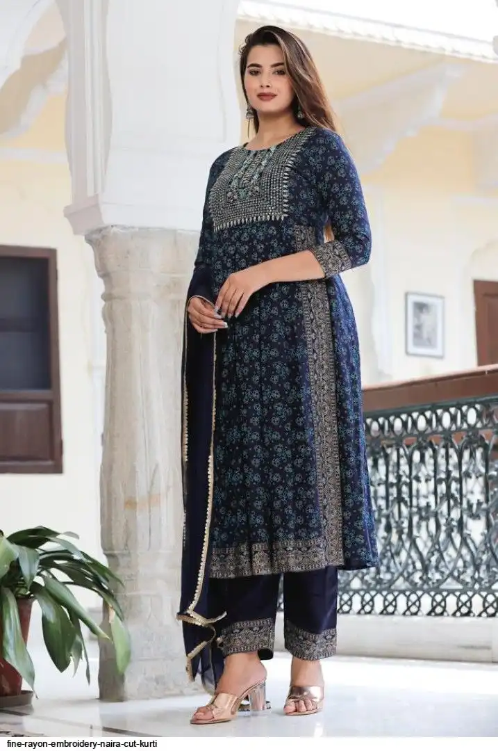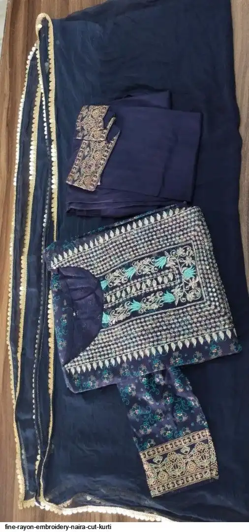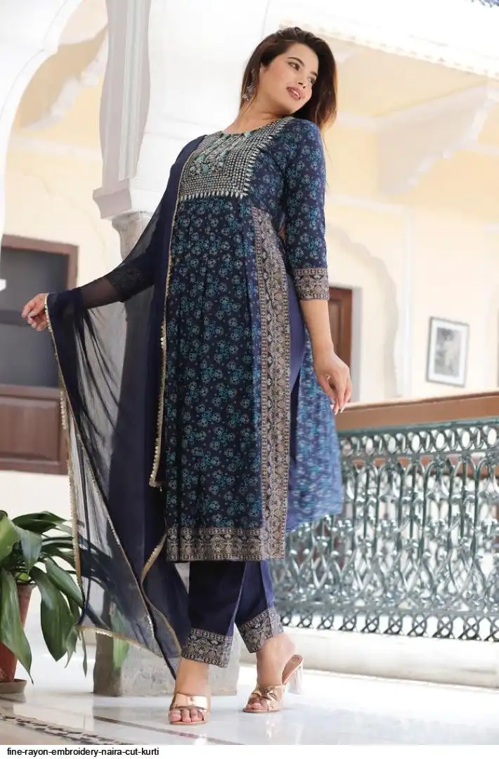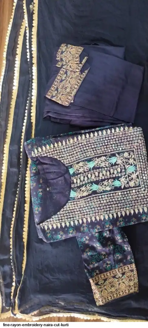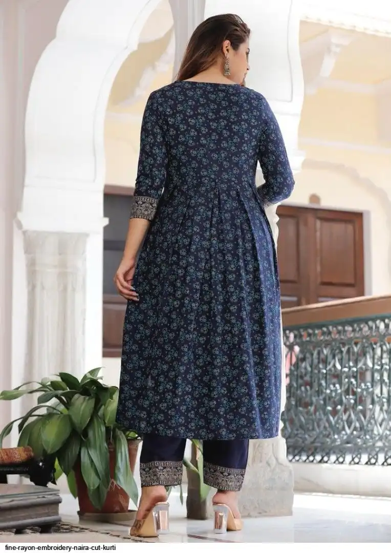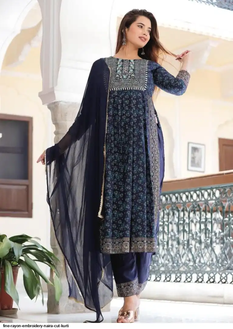 Pure fine Rayon fabric with embroidery naira cut Kurti with Pant