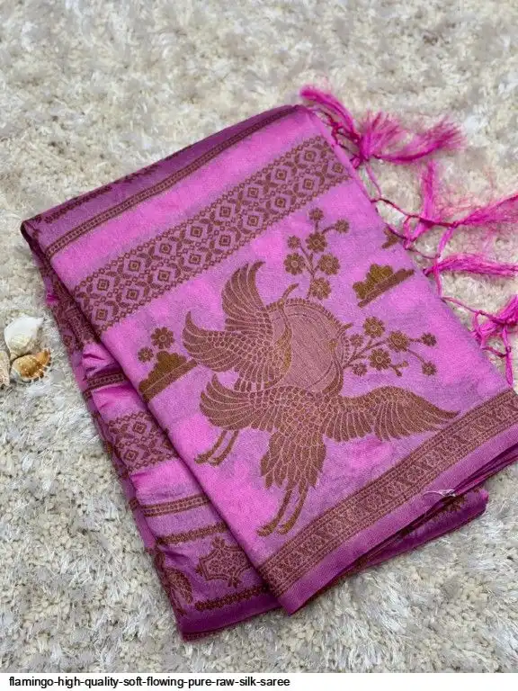 The Rich and High Quality Soft, Flowing Pure Raw Silk Sarees With Copper Zari Weaving Body And Copper Zari Pallu Woven Pairs With Woven And Tussle