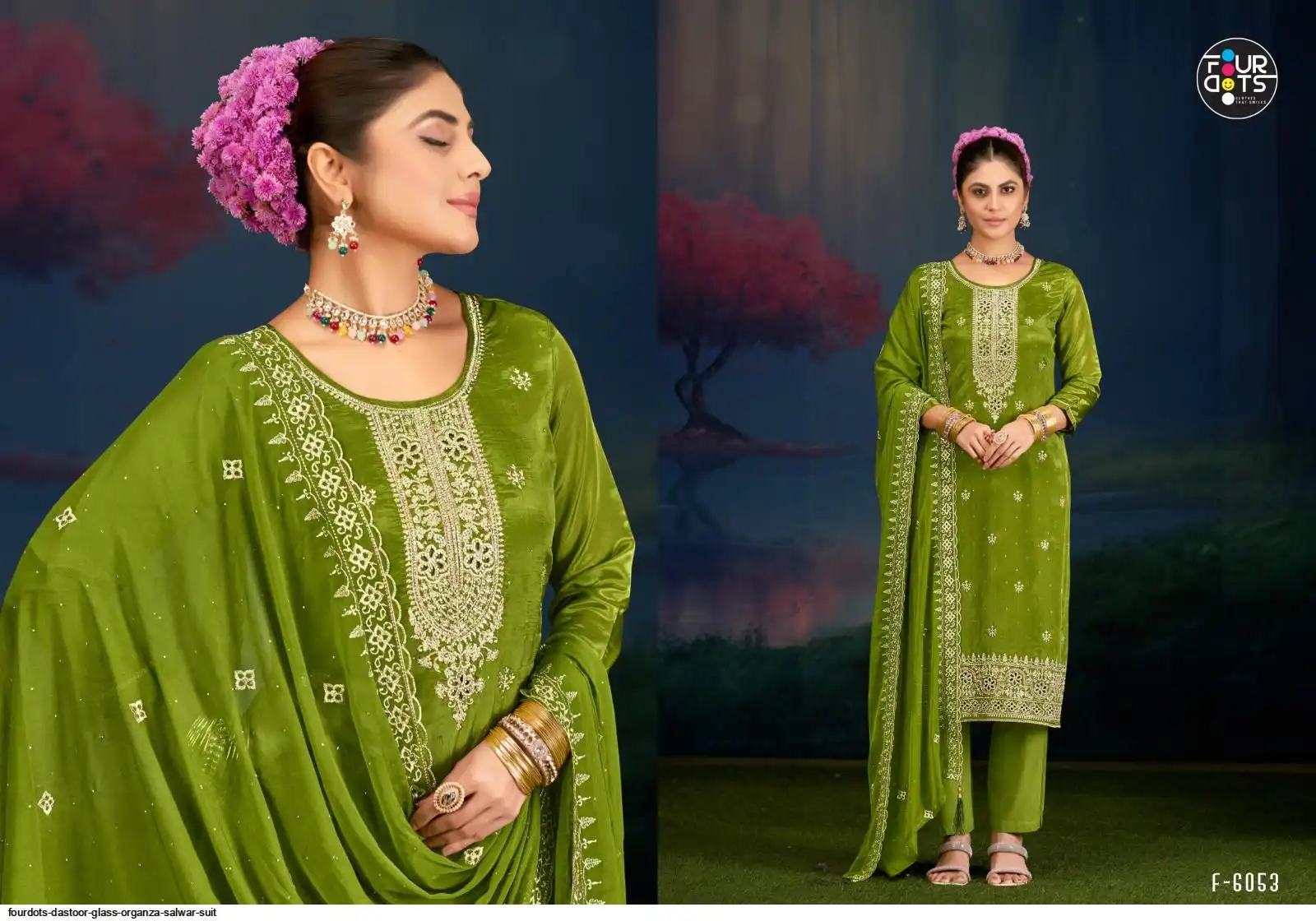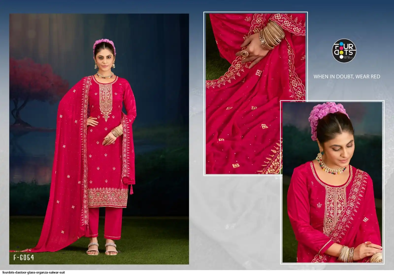 Top:- Glass Organza Heavy Work With Jarkan Work