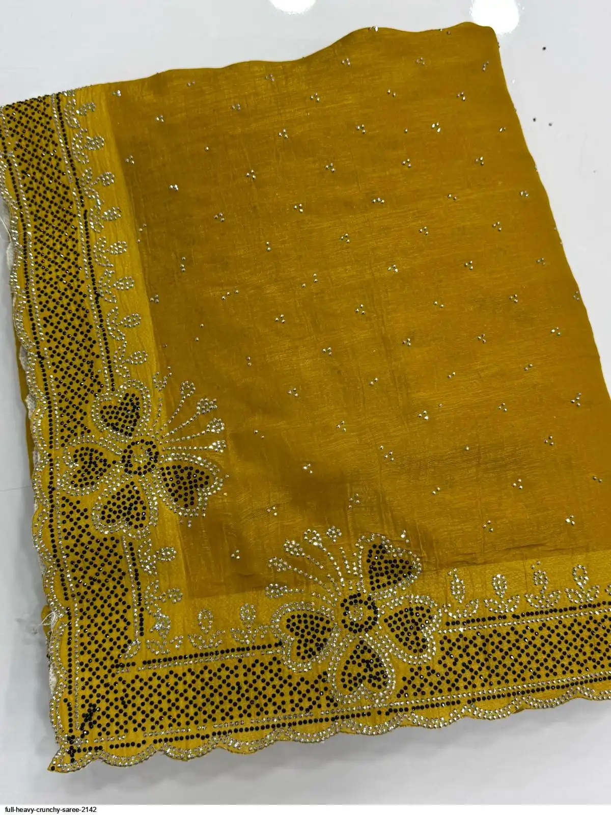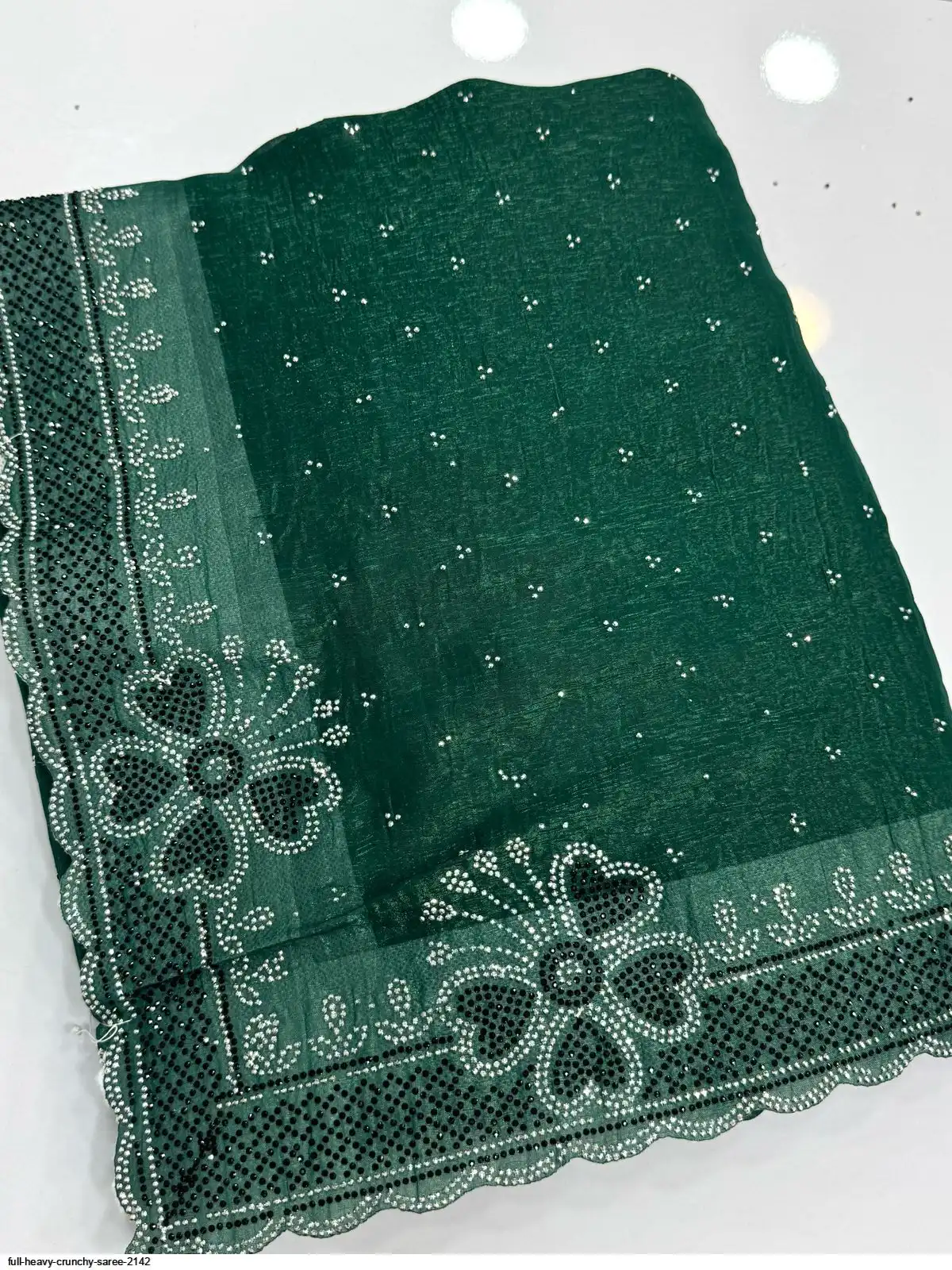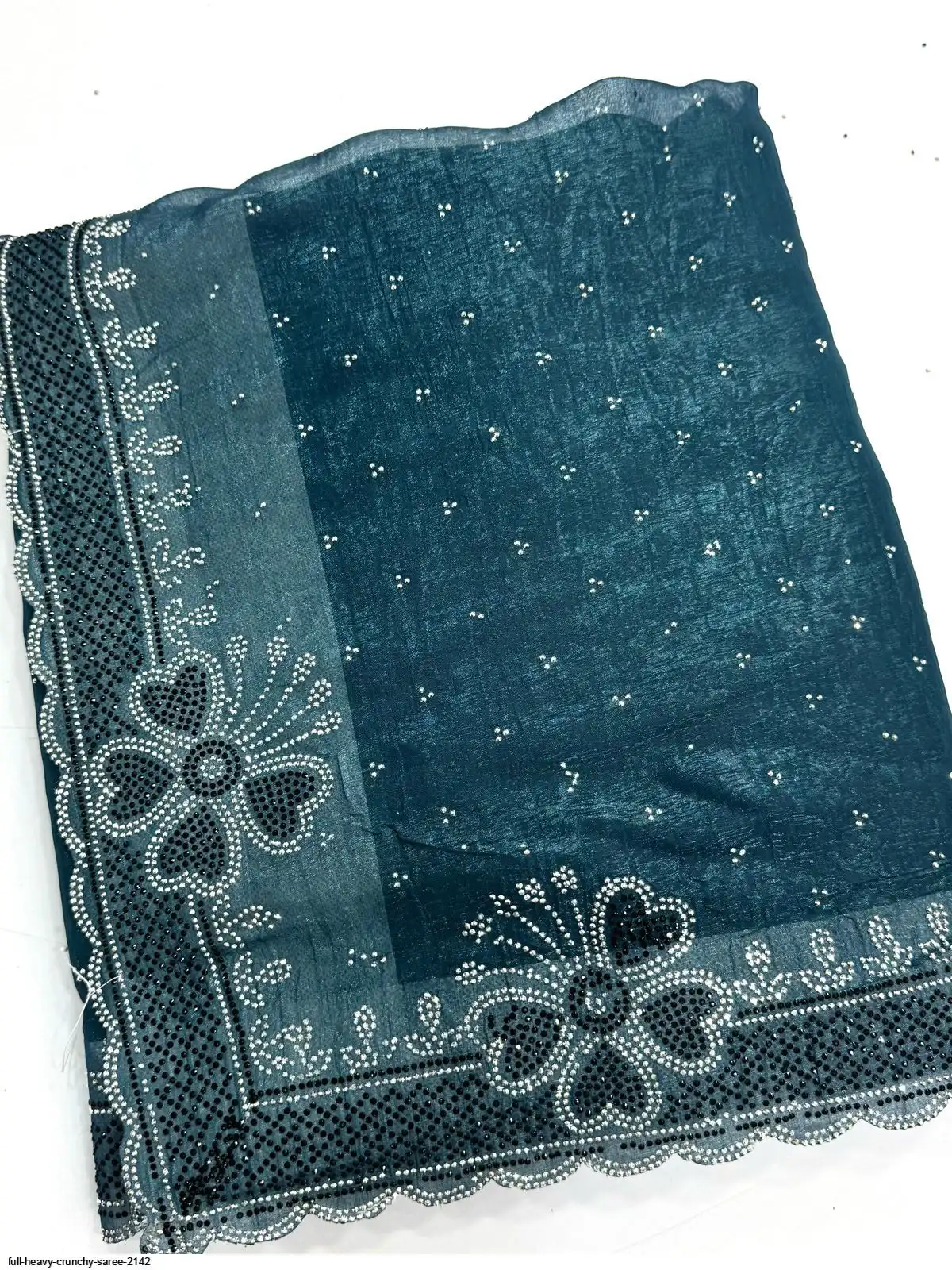 Work :- Full Heavy Swarocky Stone Work In All Over Saree With Heavy Border.