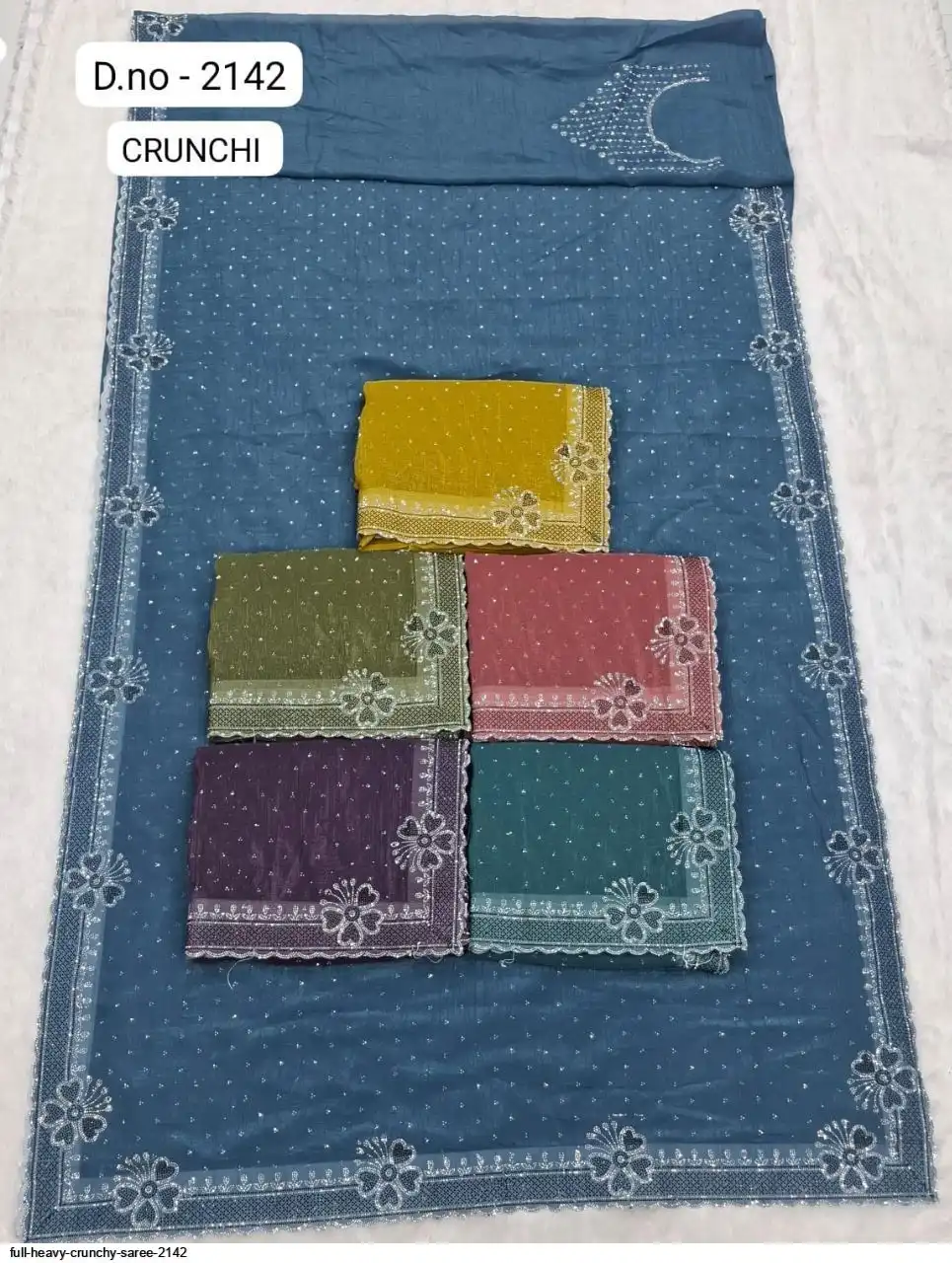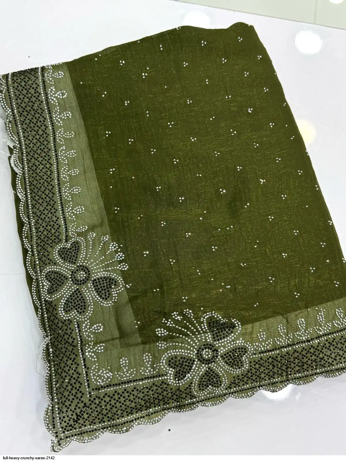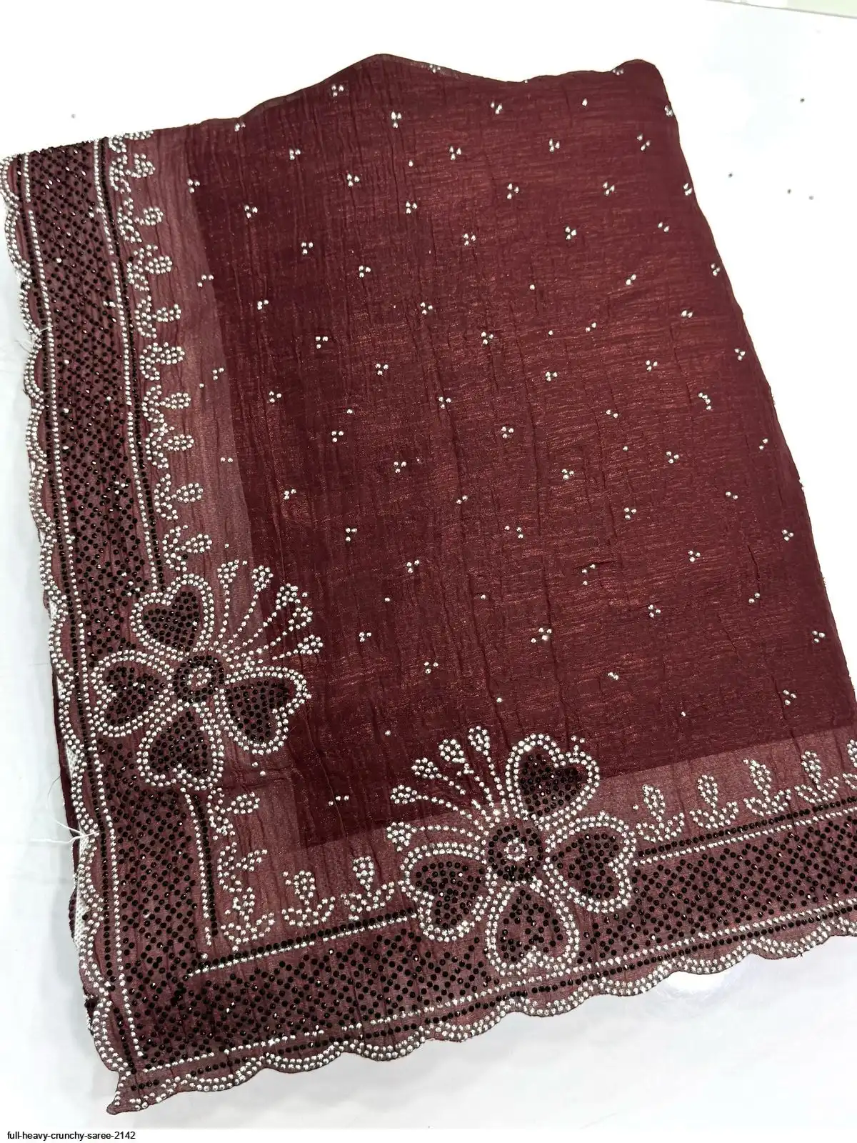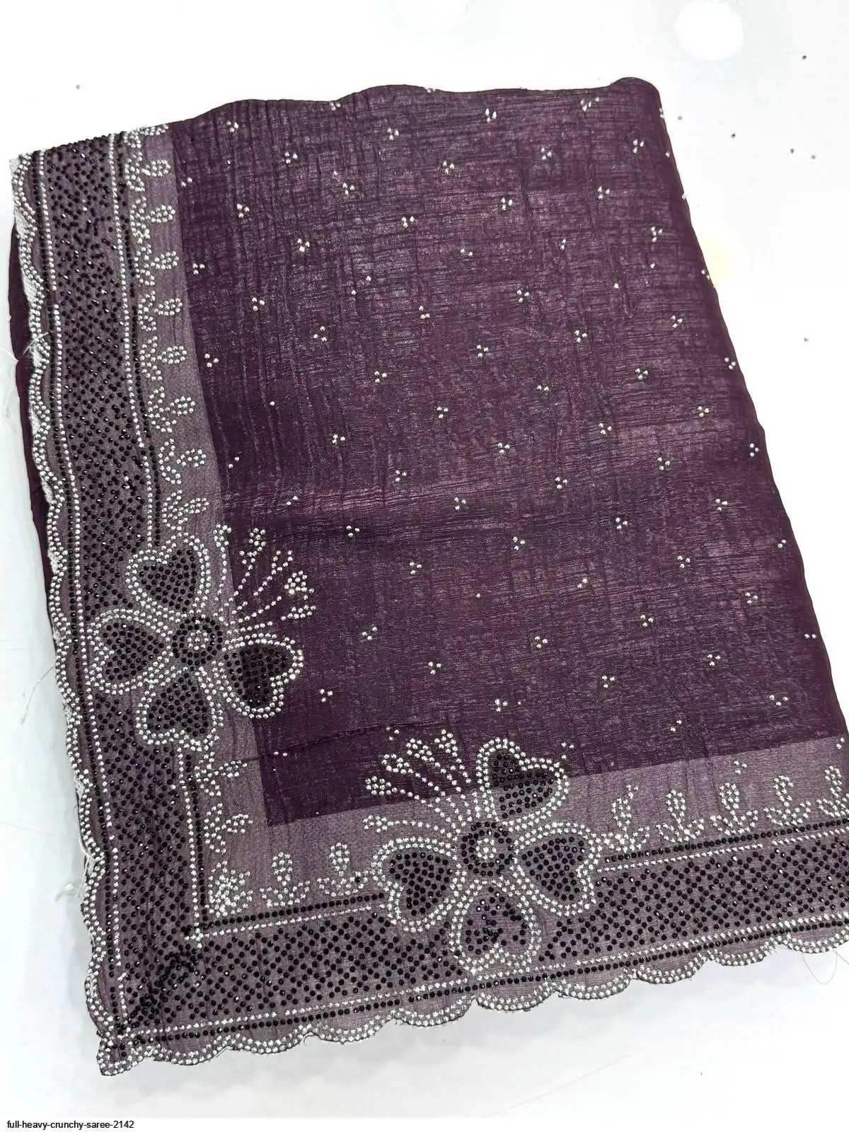 Work :- Full Heavy Swarocky Stone Work In All Over Saree With Heavy Border.