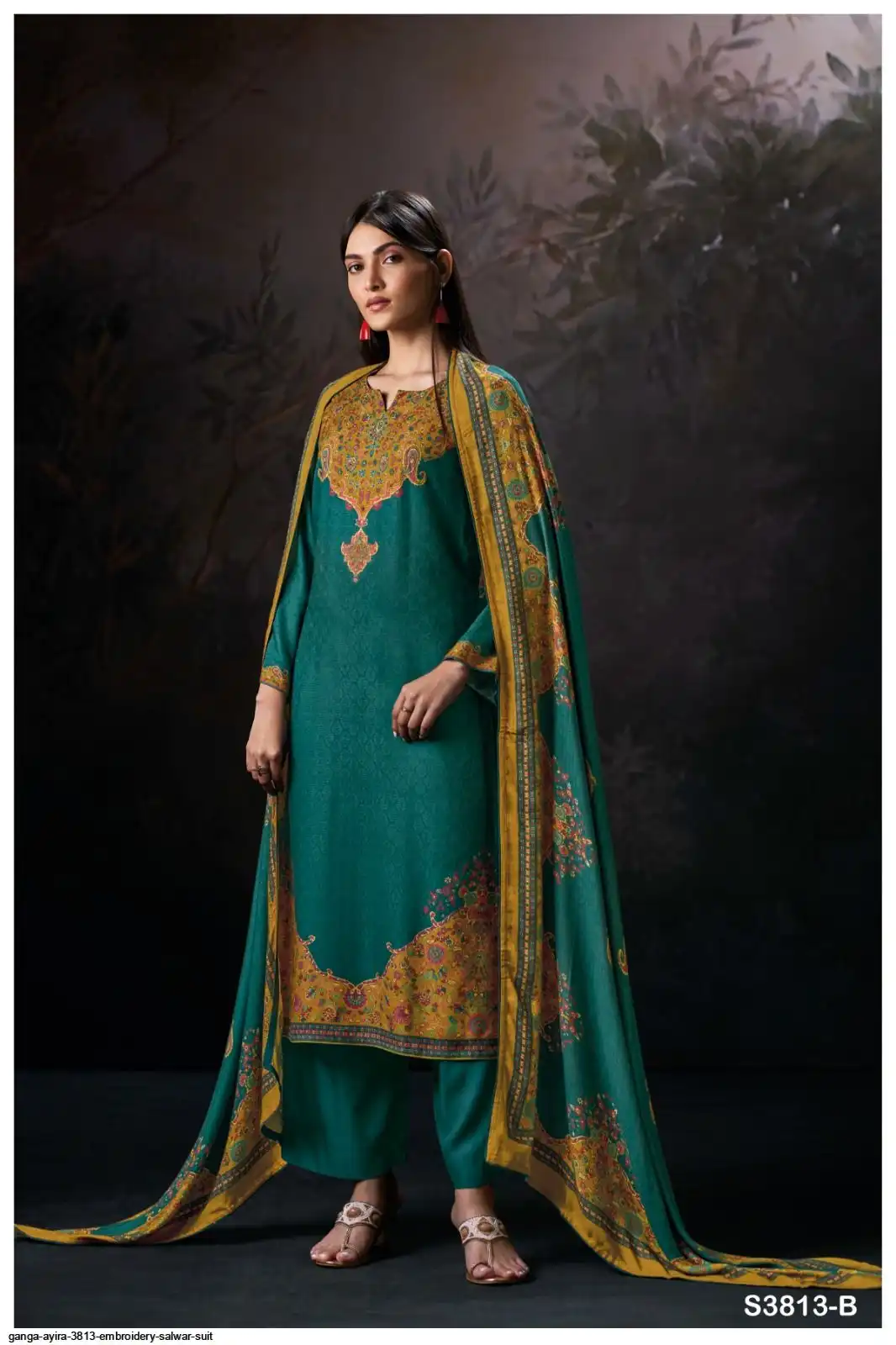 JACOUARD PRINTED WITH HAND EMBROIDERY, SWAROVSKI WORK AND SOLID COLOR BORDER ON DAMAN.