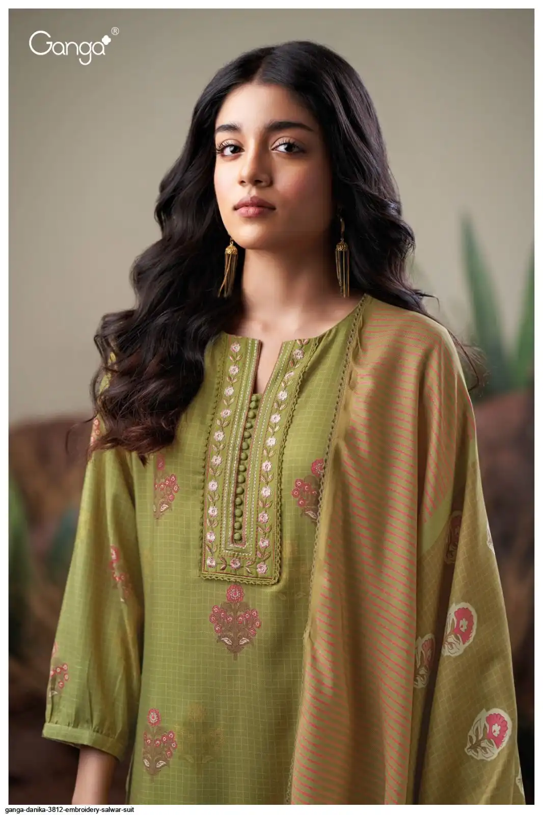 PRINTED WITH EMBROIDERY ON NECK & DAMAN, CROCHET LACE ON DAMAN & NECK.