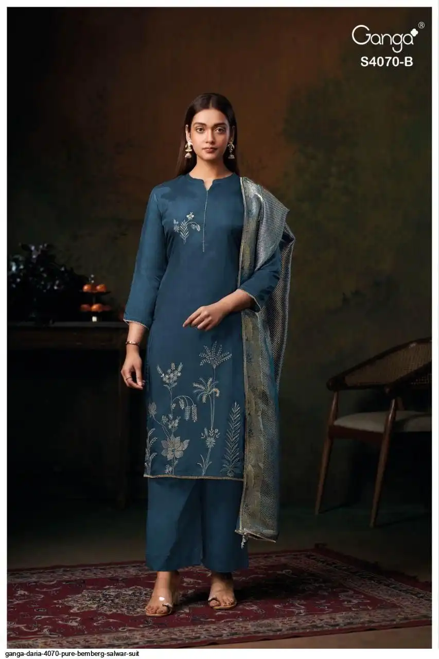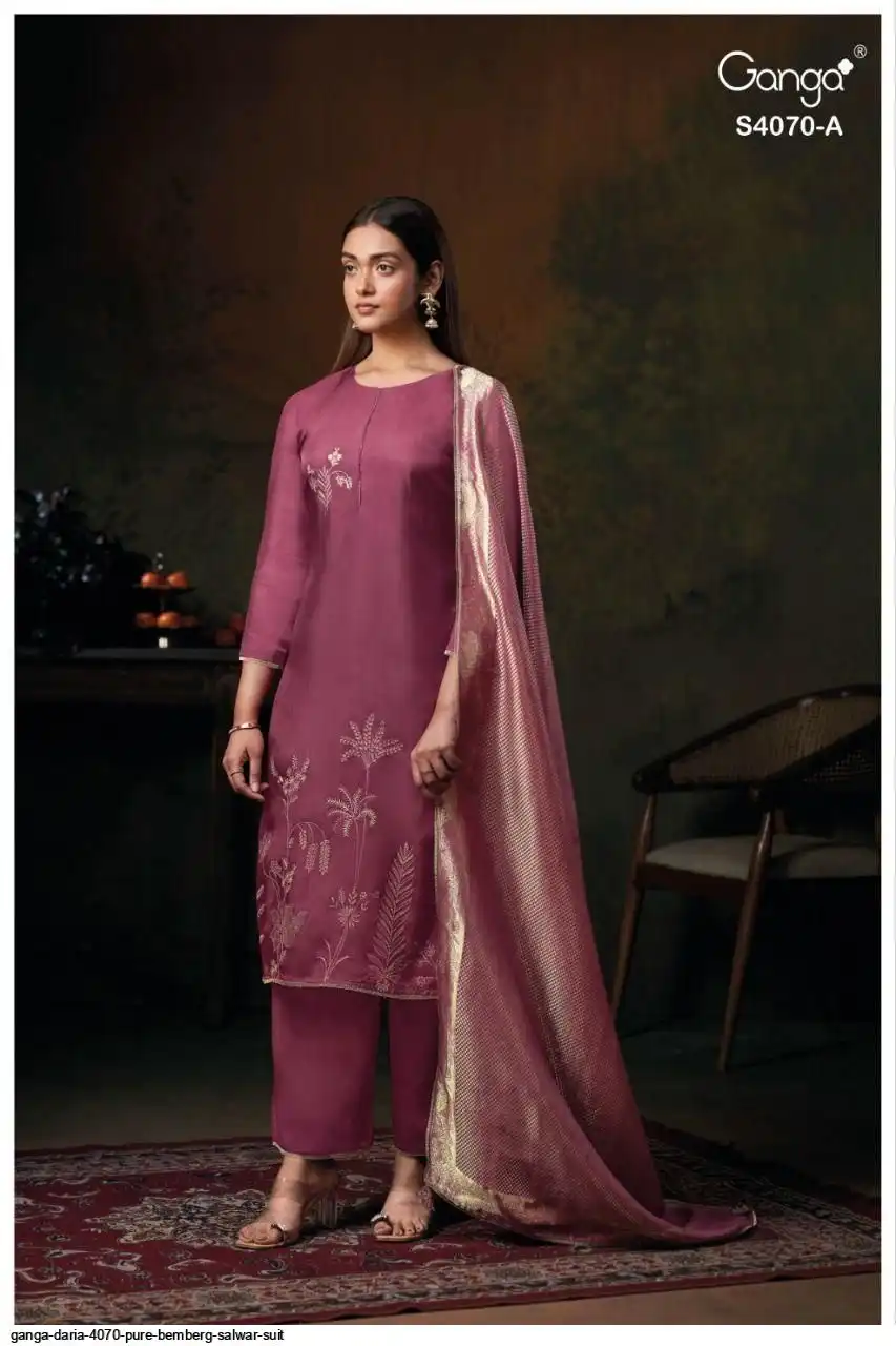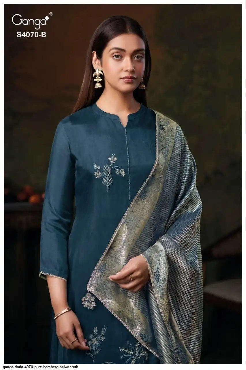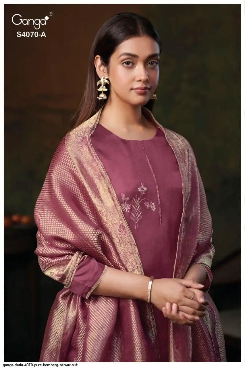 PREMIUM PURE BEMBERG HABUTAI SILK SOLID COLOR WITH EMBROIDERY, JARI LACE ON DAMAN.