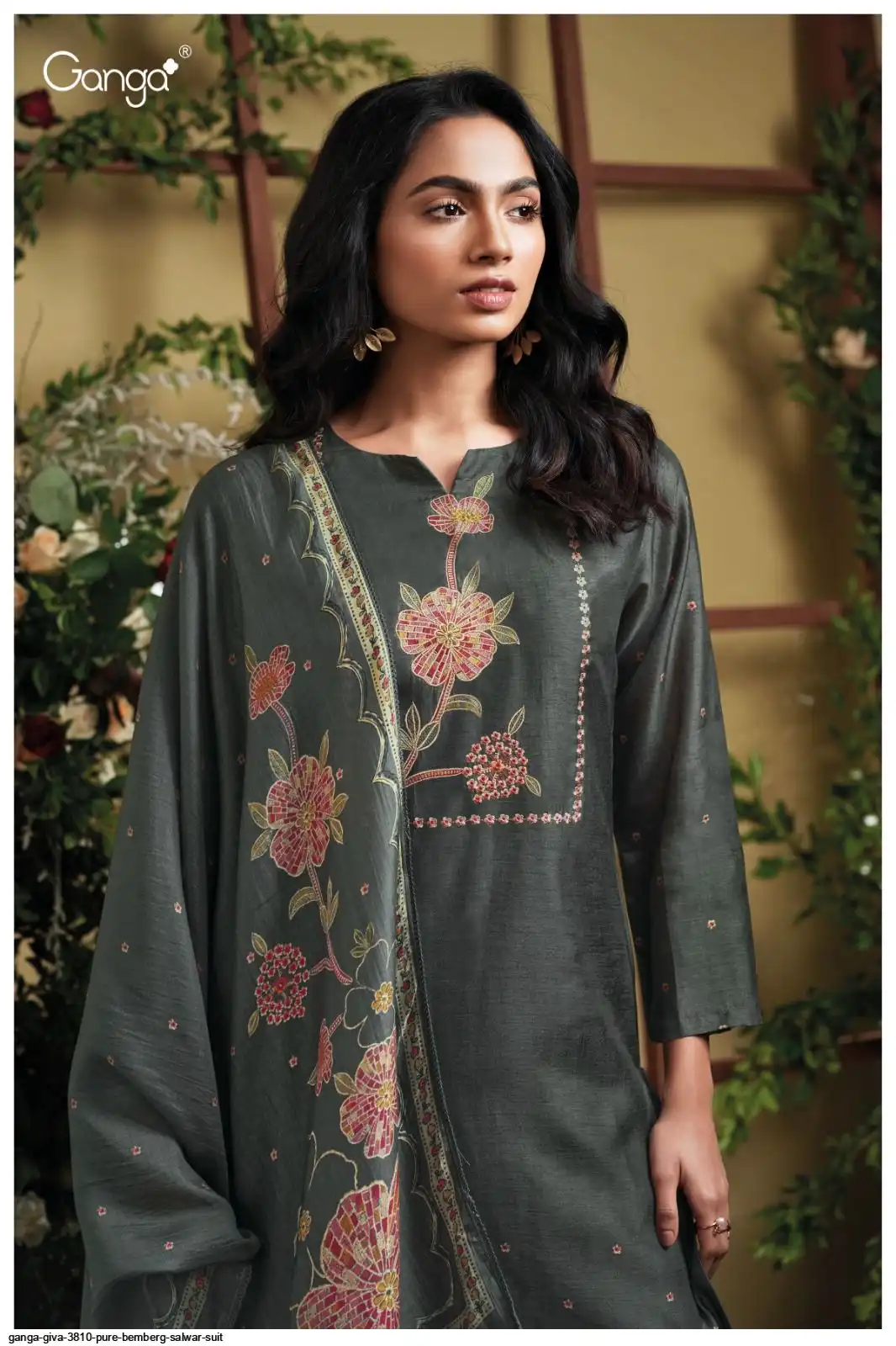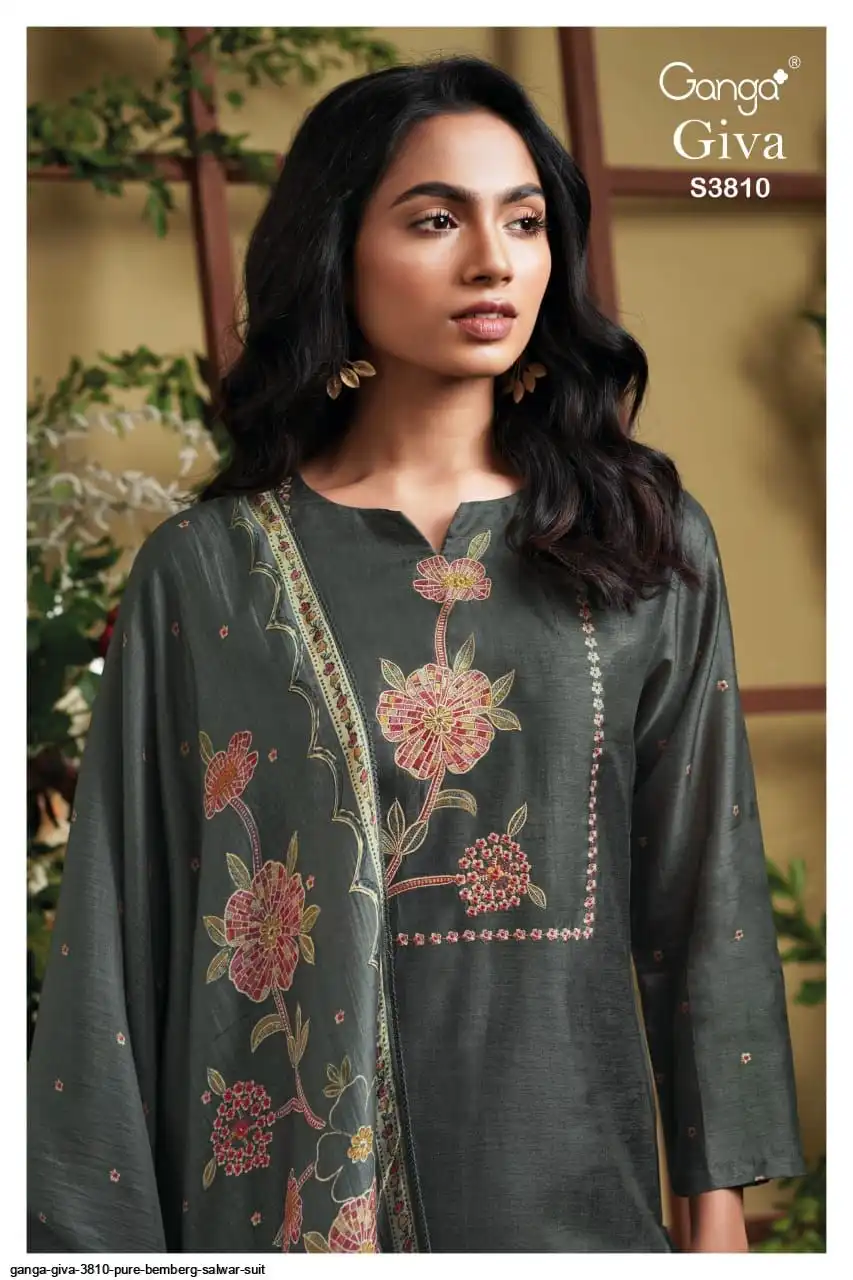 SILK PRINTED WITH EMBROIDERY, CROCHET LACE ON DAMAN.