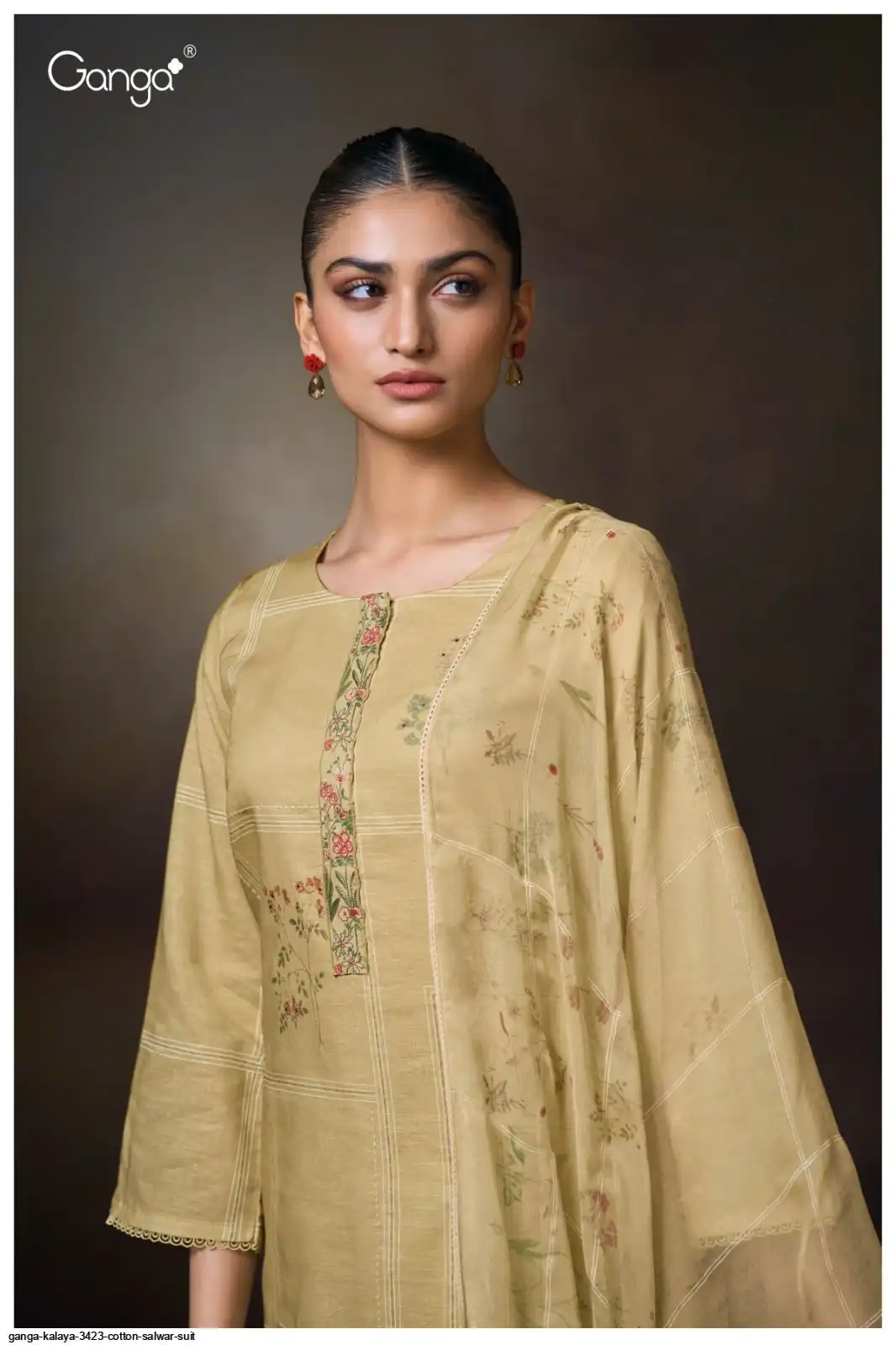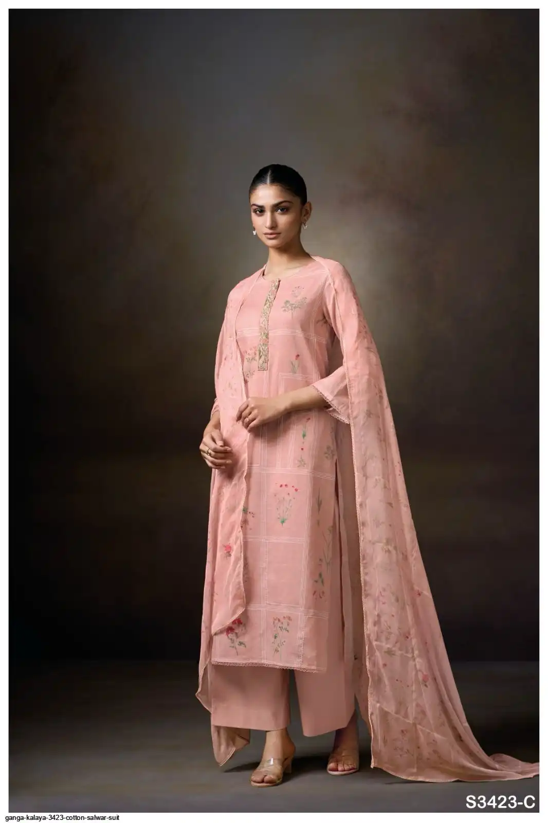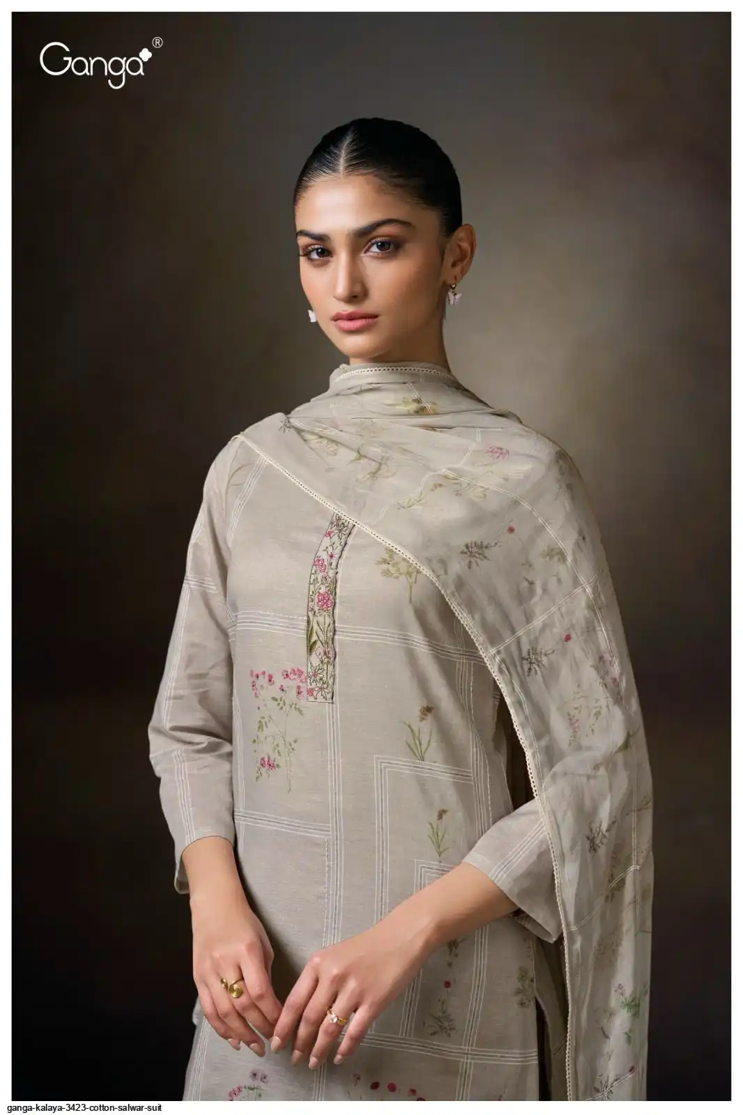 PRINTED WITH HAND WORK, EMBROIDERY LACE ON NECK, HAND EMBROIDERY, SCHIFFLI EMBROIDERY LACE.