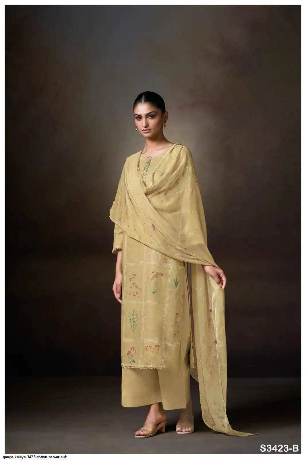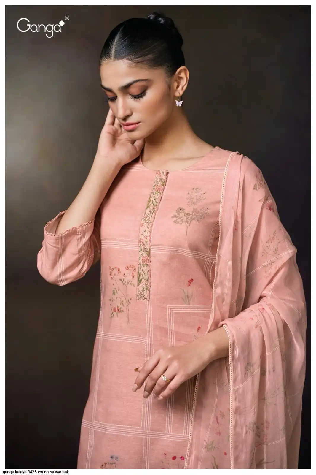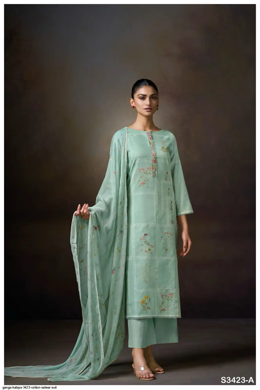 PRINTED WITH HAND WORK, EMBROIDERY LACE ON NECK, HAND EMBROIDERY, SCHIFFLI EMBROIDERY LACE.