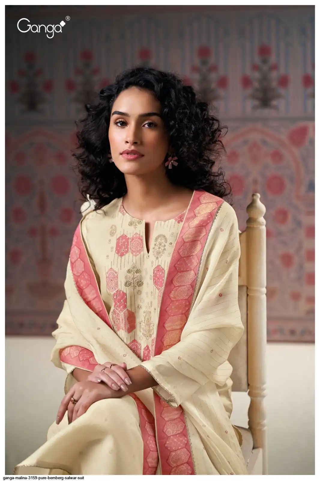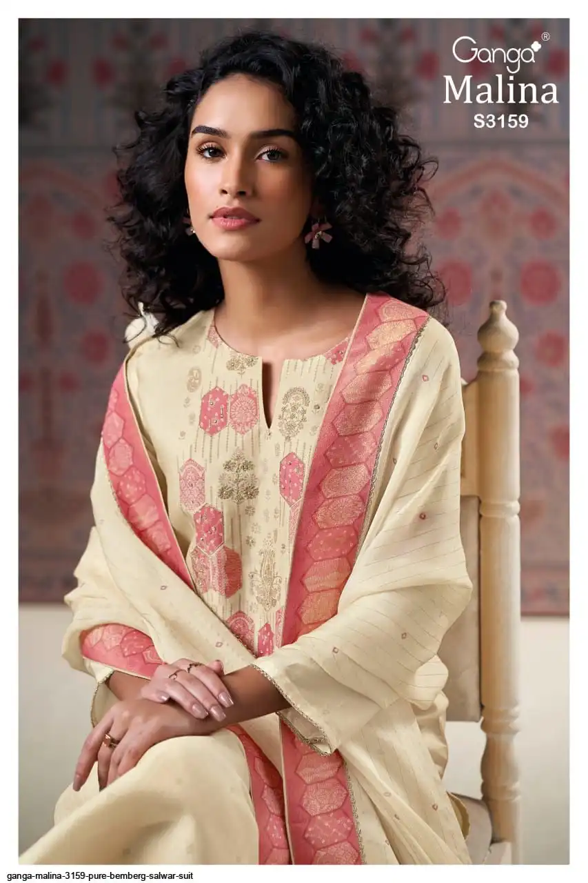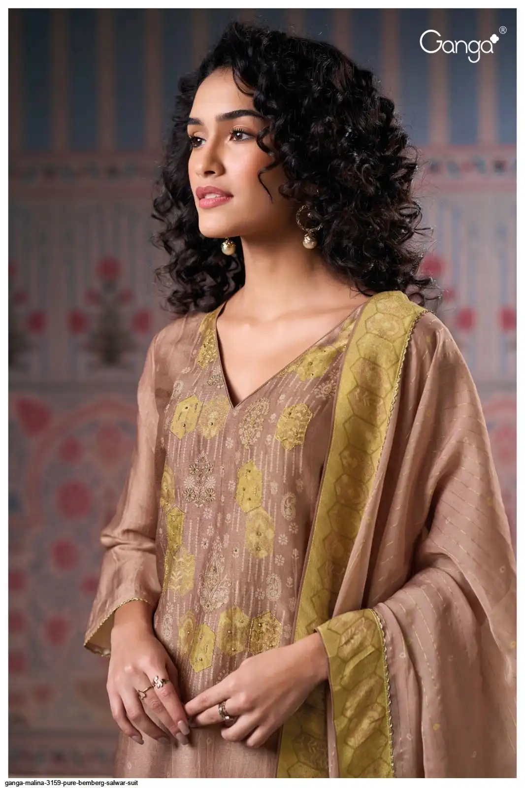 SILK JACOUARD PRINTED WITH HAND EMBROIDERY, SWAROVSKI WORK,JARI LACE ON DAMAN & SLEEVES.