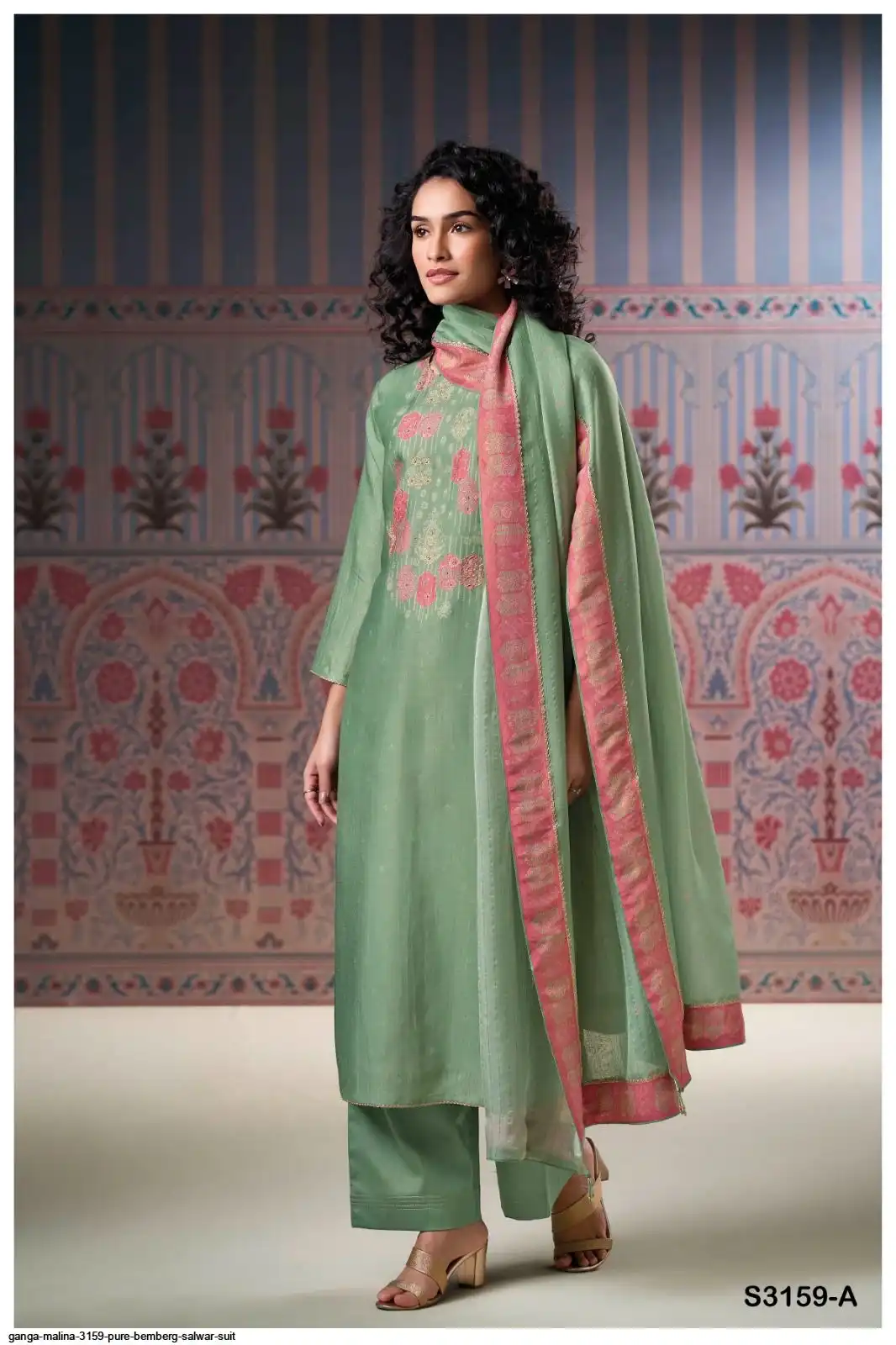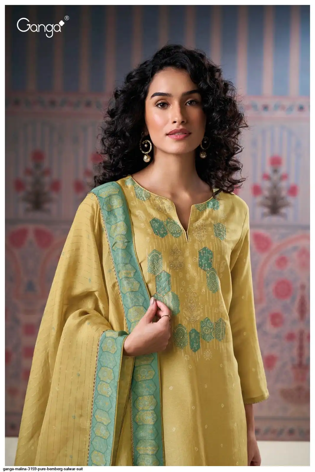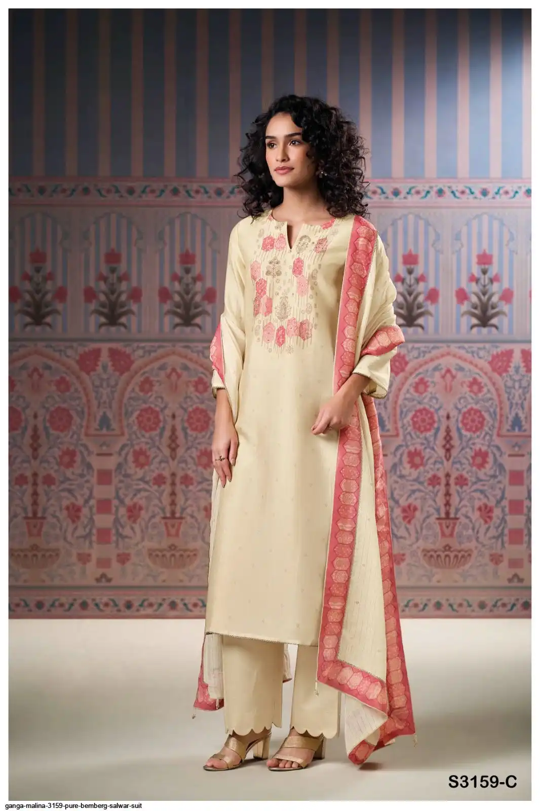 SILK JACOUARD PRINTED WITH HAND EMBROIDERY, SWAROVSKI WORK,JARI LACE ON DAMAN & SLEEVES.