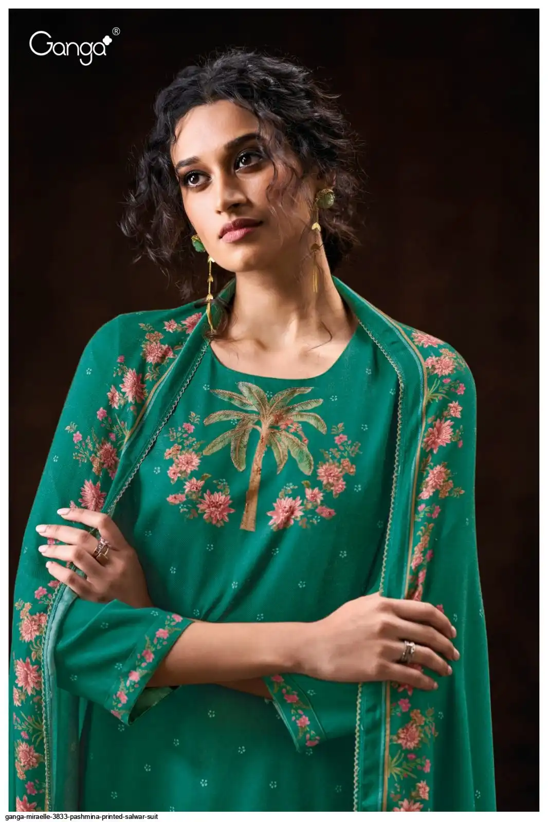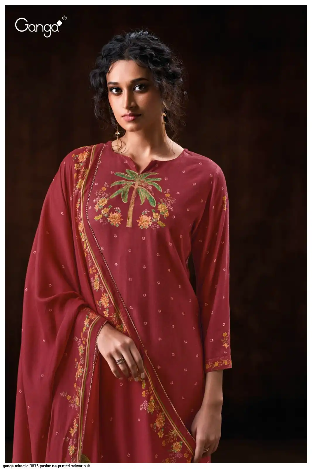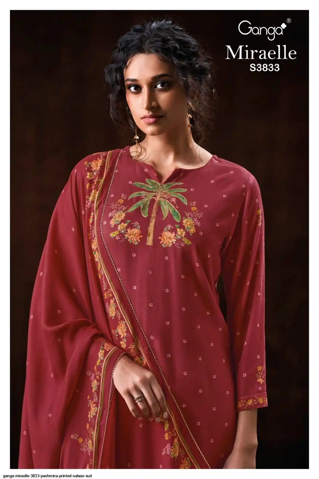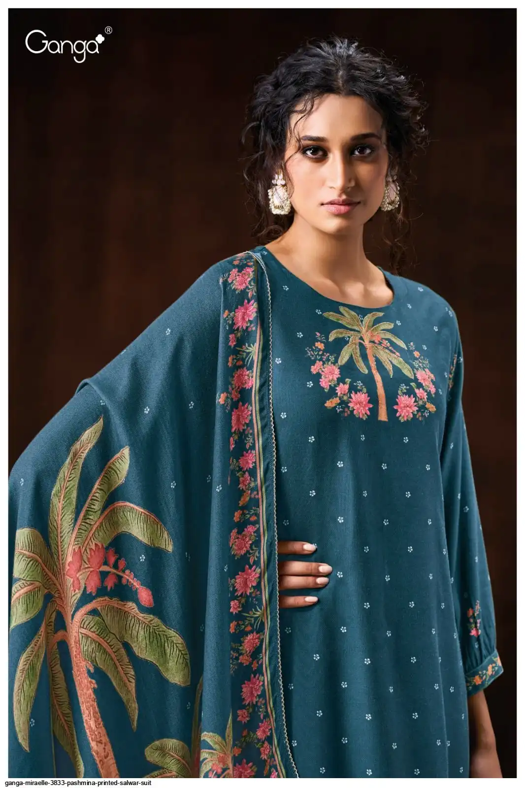 PREMIUM PURE WOOL PASHMINA PRINTED WITH HANDWORK , HAND EMBROIDERY , CROCHET LACE ON DAMAN