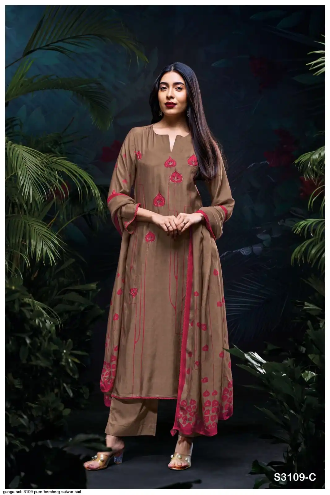 PRINTED WITH HAND EMBROIDERY, HAND WORK & CROCHET LACE ON DAMAN AND SLEEVES.
