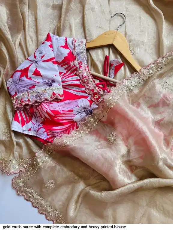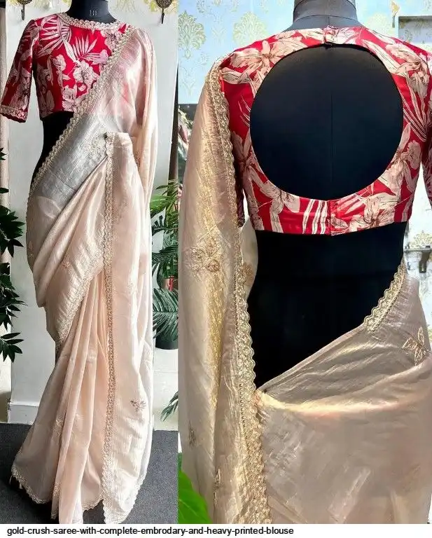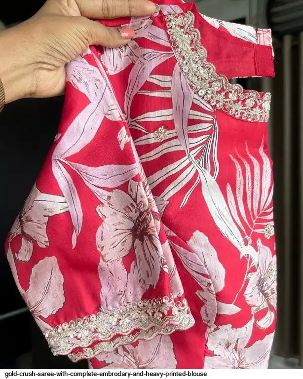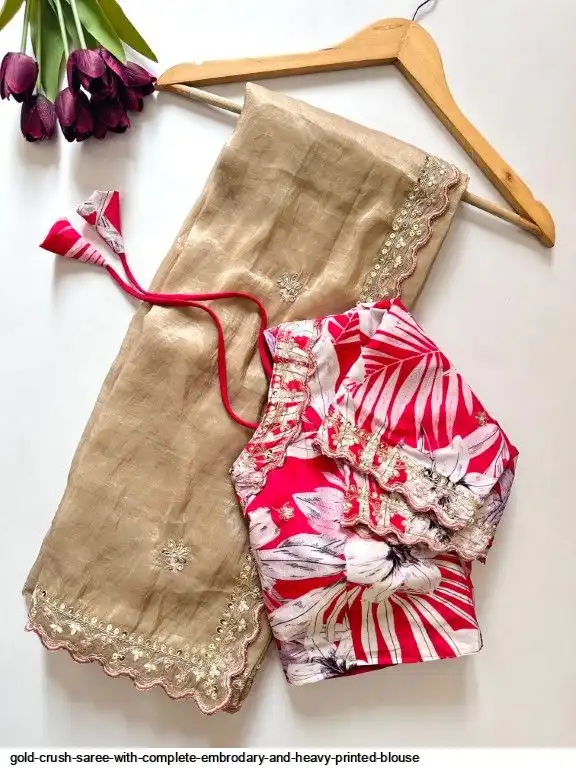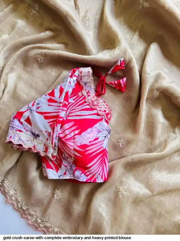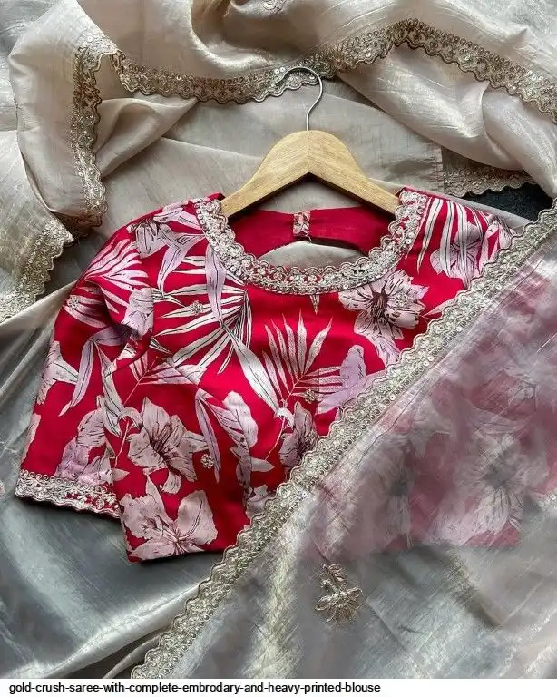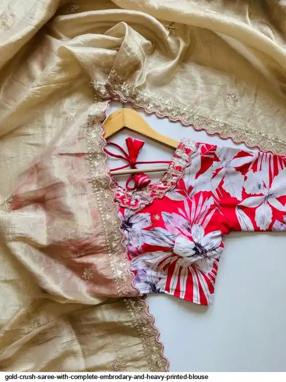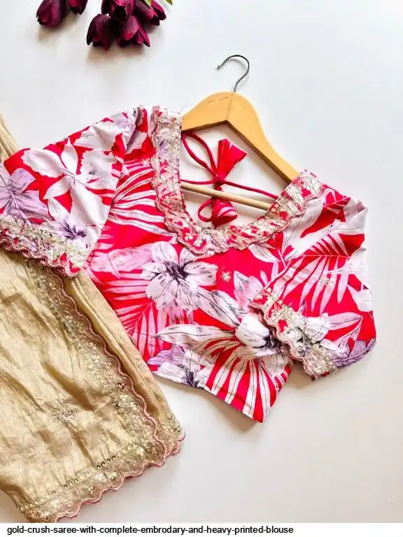 Exclusive elegant launch for fancy collection perfect for any gold crush saree with complete embrodary and heavy printed blouse