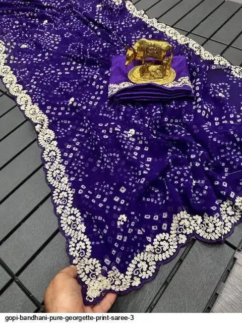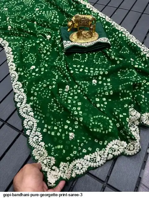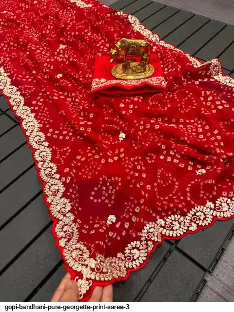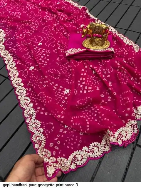 Saree :~ Pure Georgette with Jodhpur Bandhani Print Saree with Beautiful Pita Work in C~Pallu Butti Work Border in Saree
