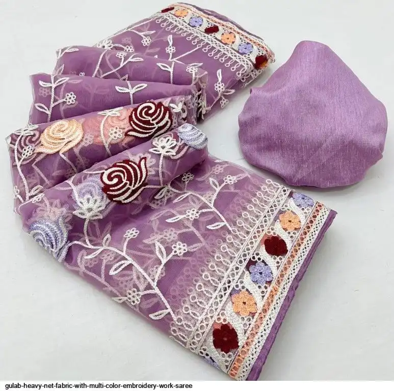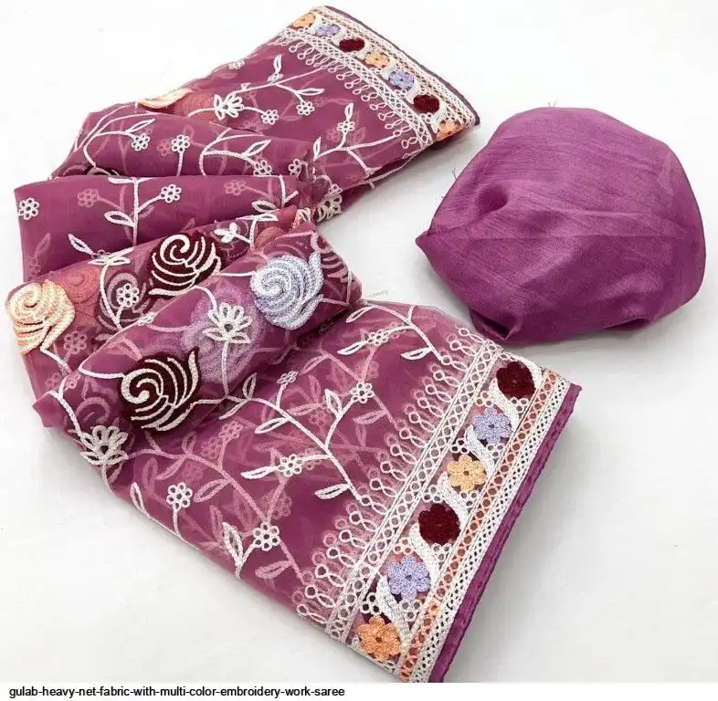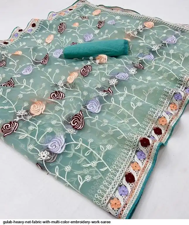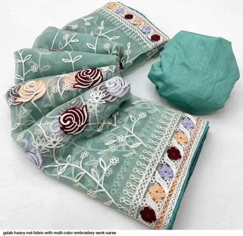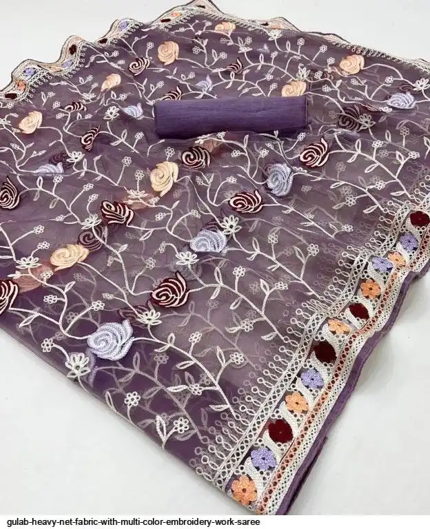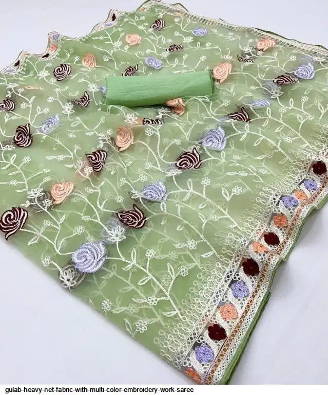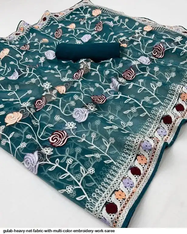 FABRIC - Heavy Net Fabric With Multi Color Embroidery Work Saree And Border With Art Silk Embroidery Work Blouse