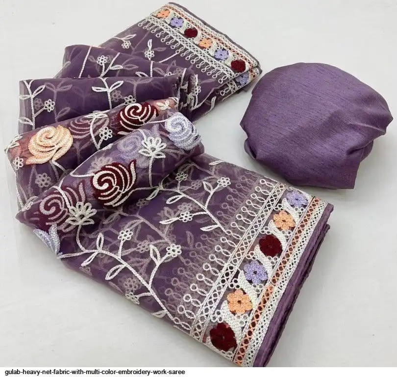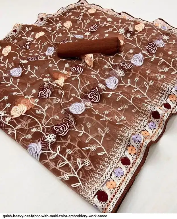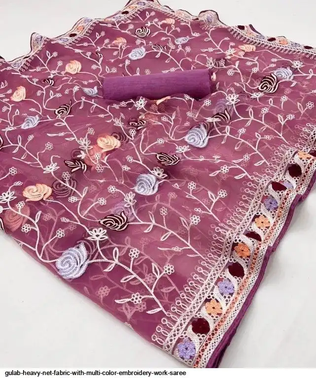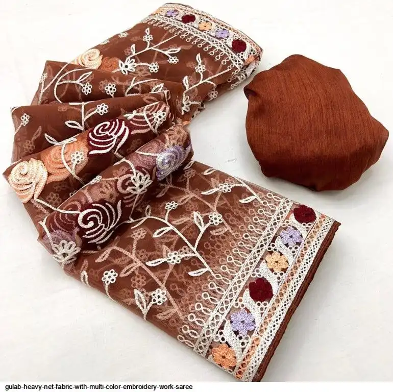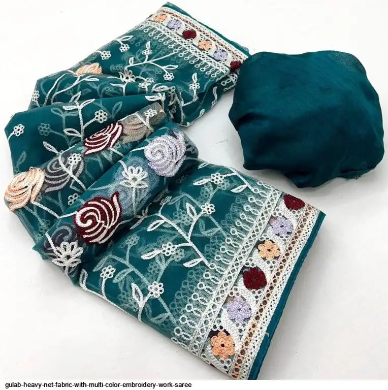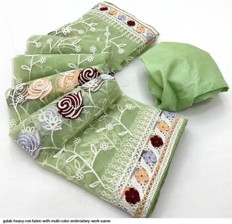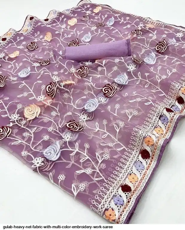 FABRIC - Heavy Net Fabric With Multi Color Embroidery Work Saree And Border With Art Silk Embroidery Work Blouse