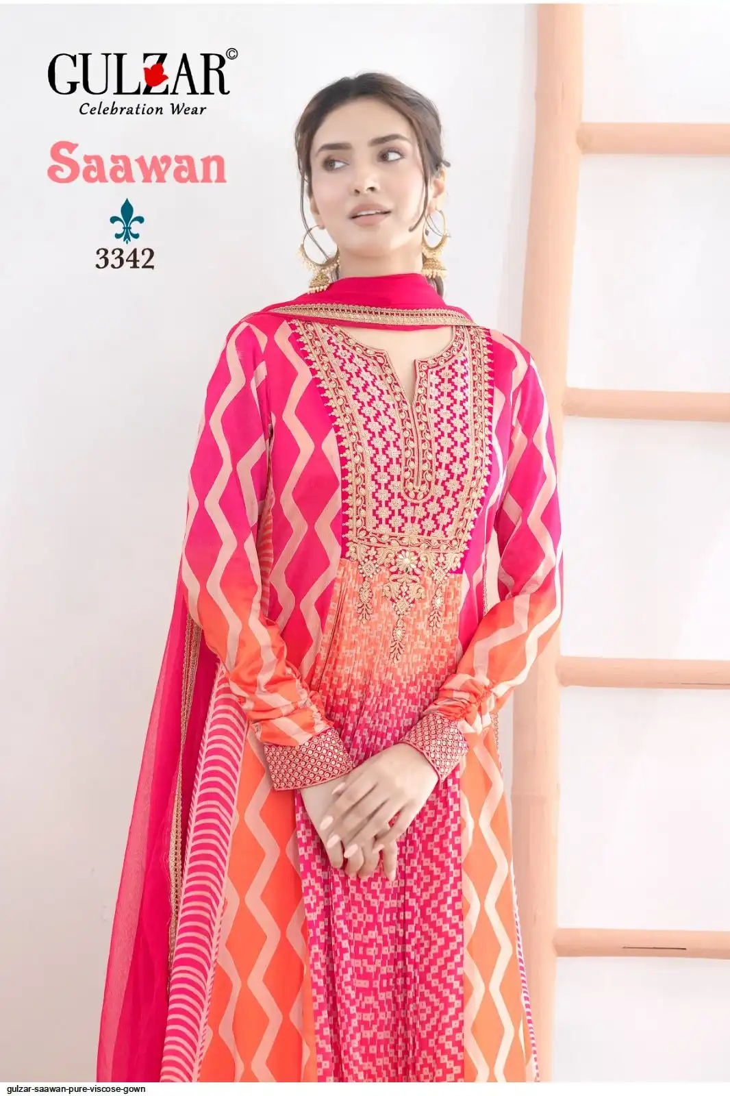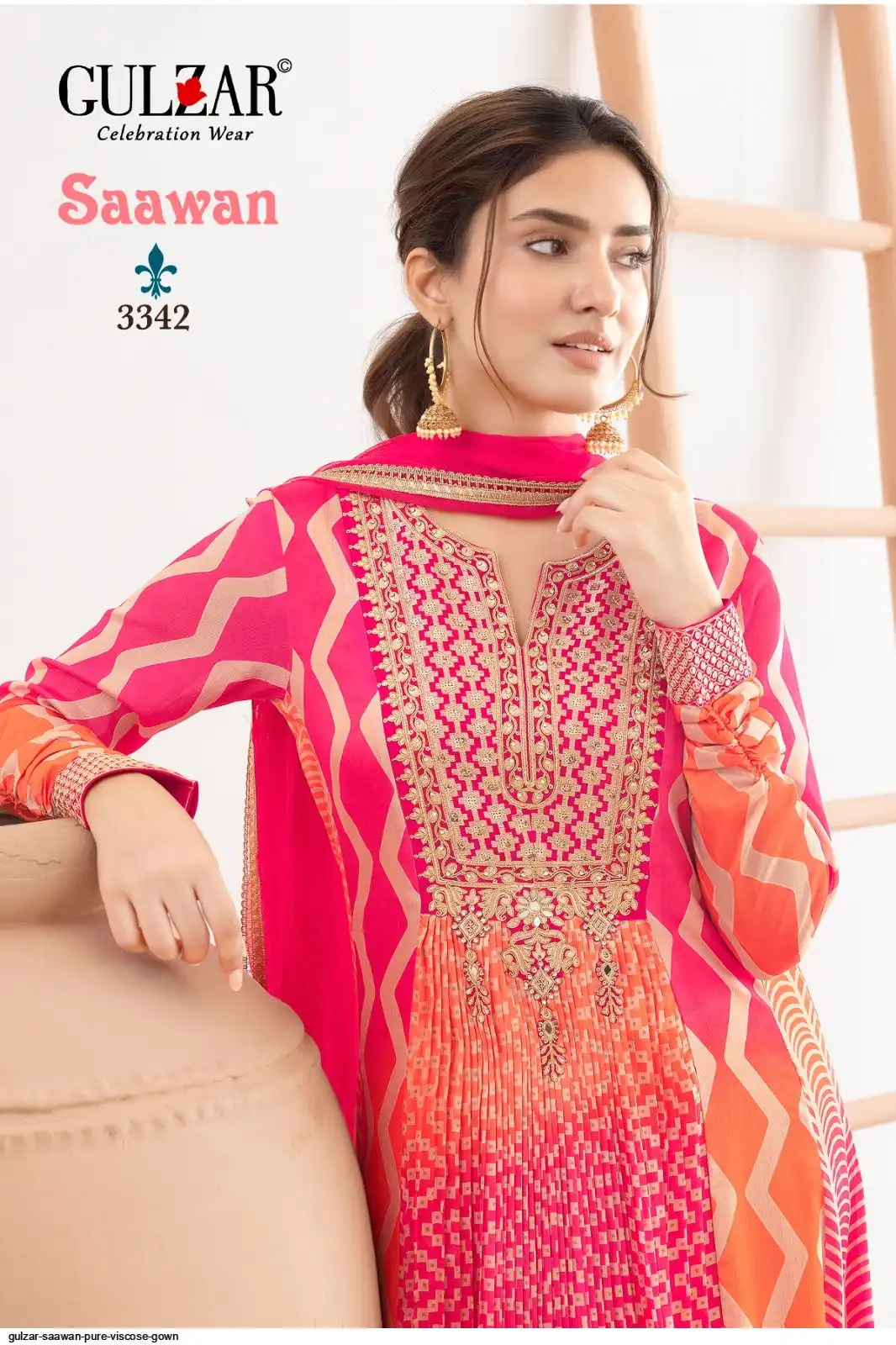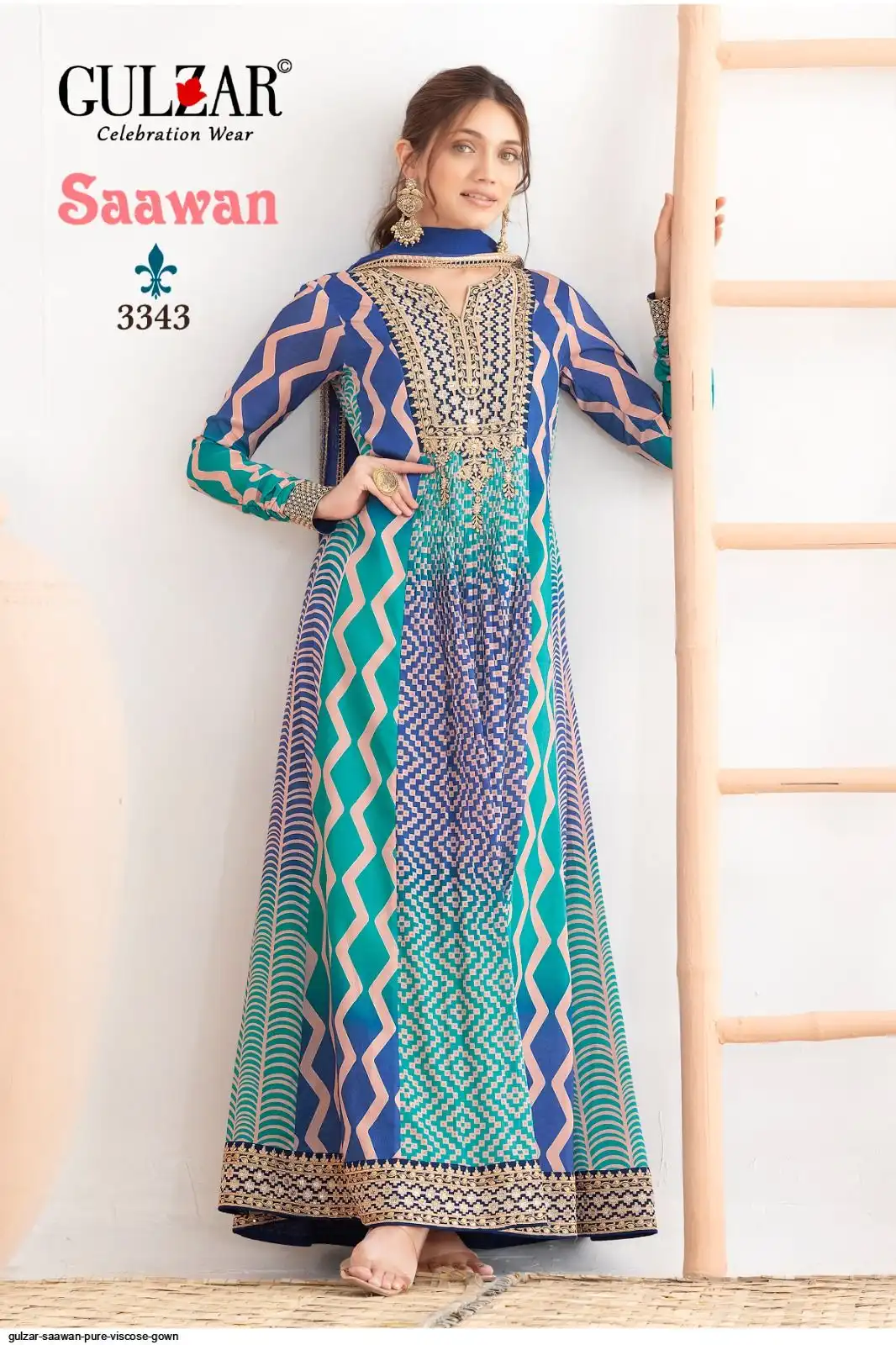 Top: Long sleeves anarkali on premium chinnon fabric with dual colour combination