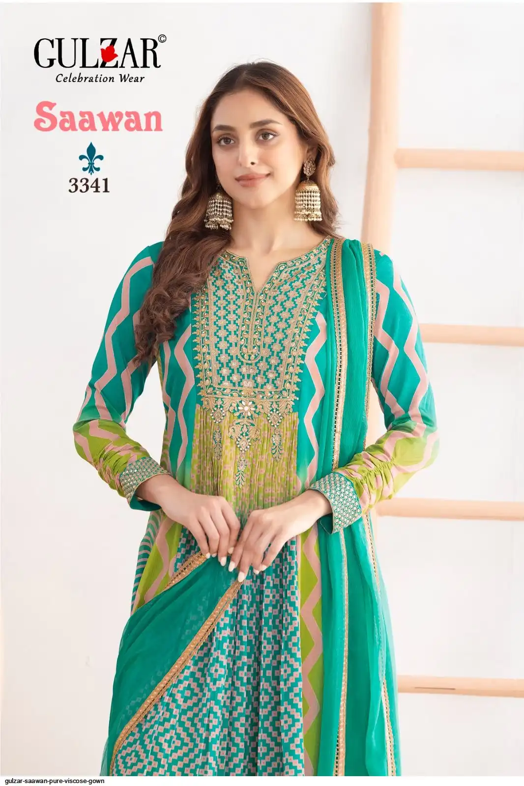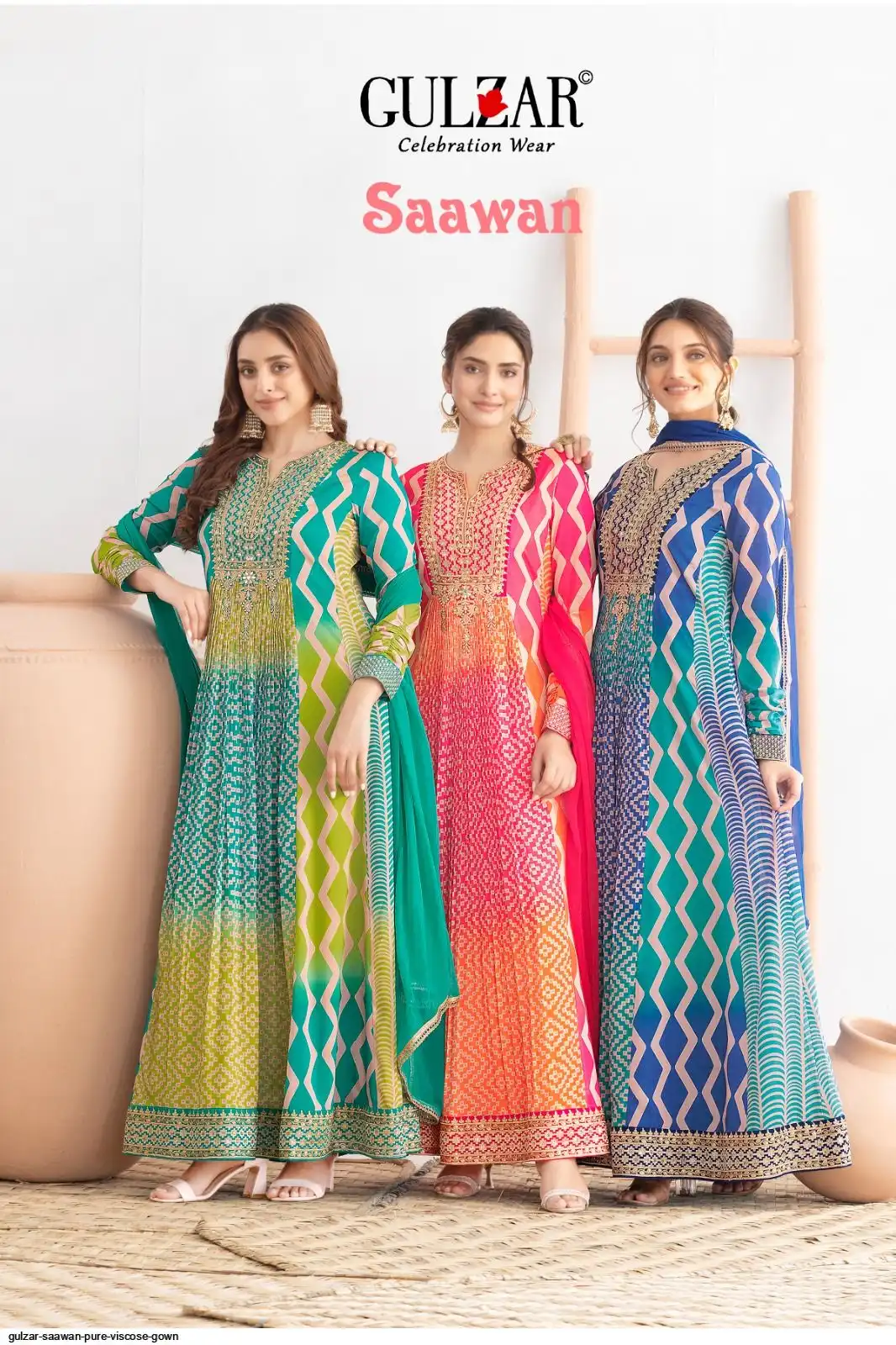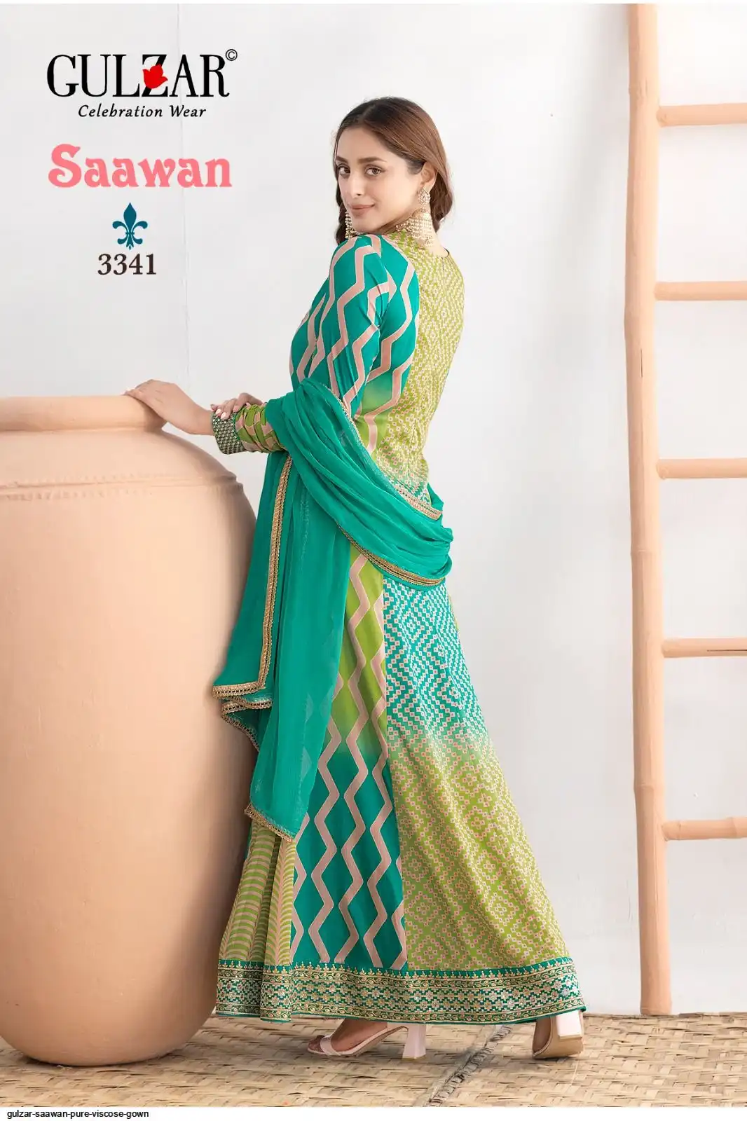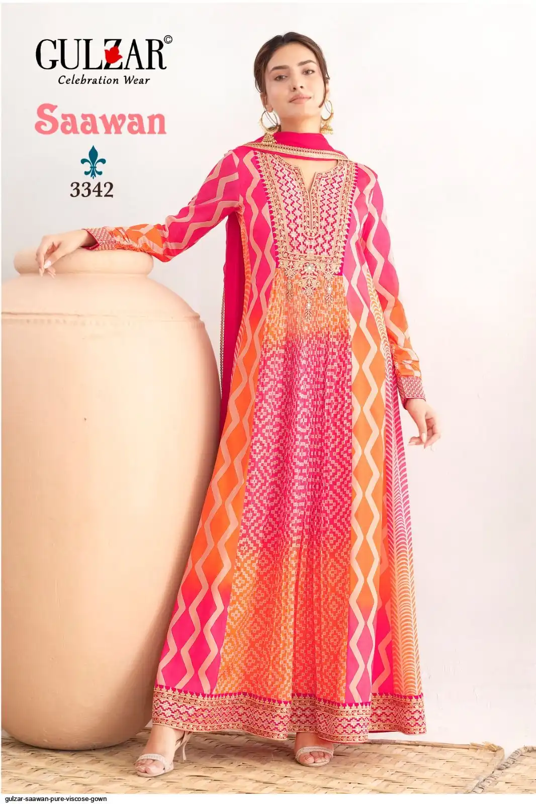 Top: Long sleeves anarkali on premium chinnon fabric with dual colour combination