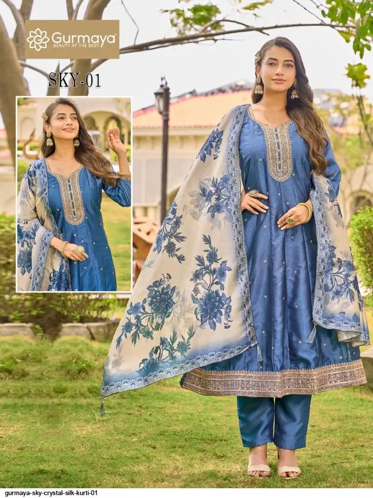 GURMAYA SKY CRYSTAL SILK KURTI 01