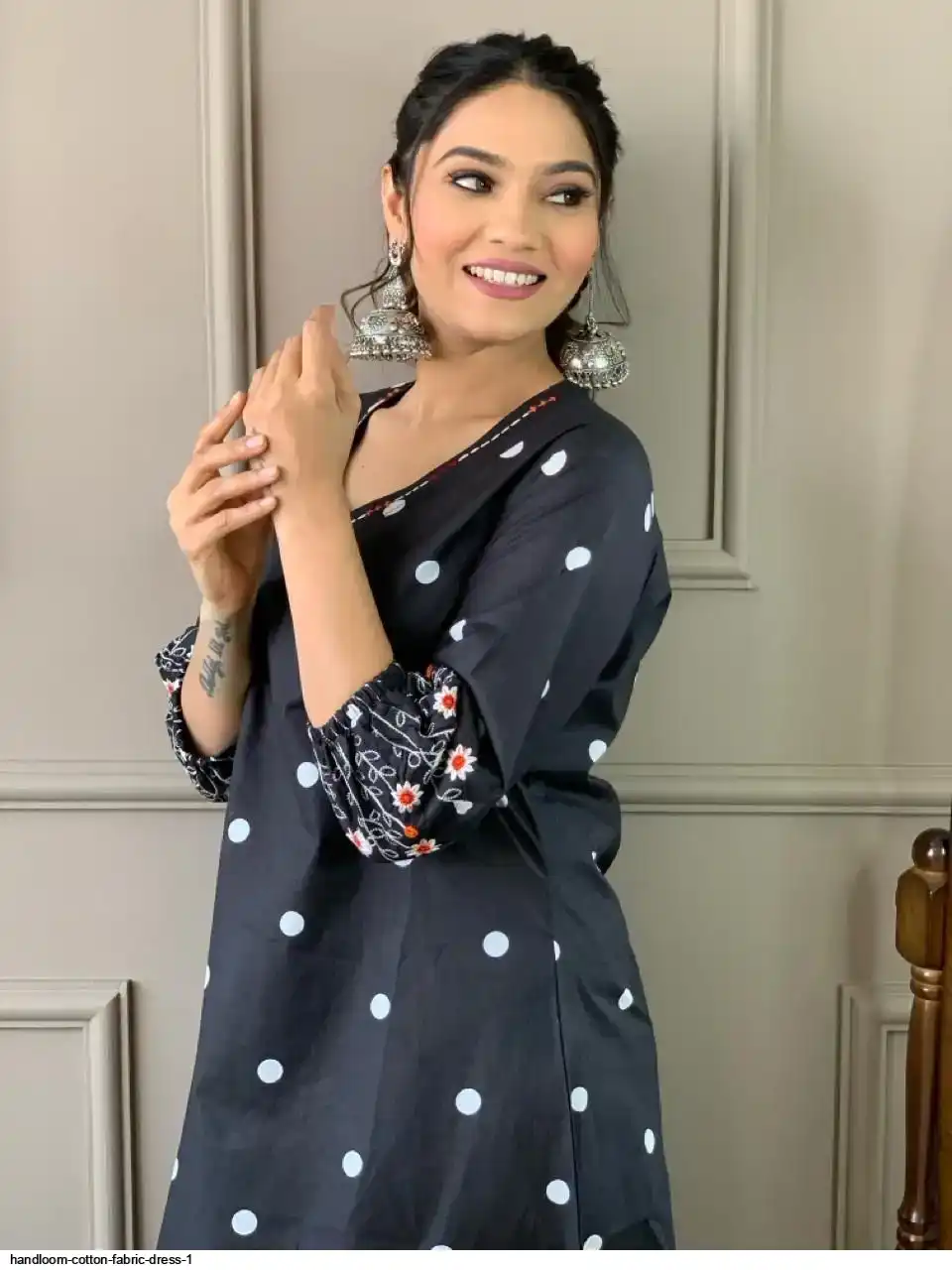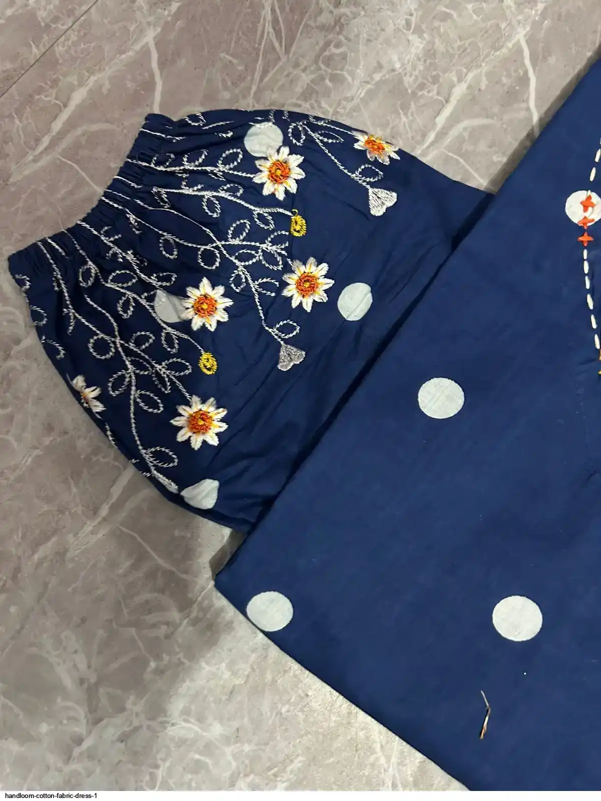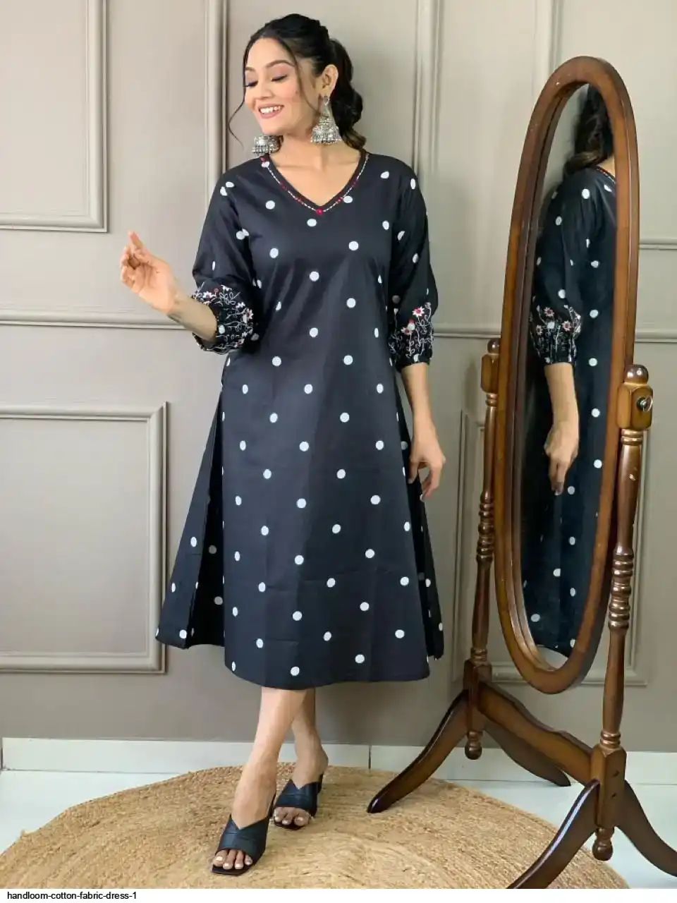 Embroidery on sleeves nd neck work one piece A line style midi style.