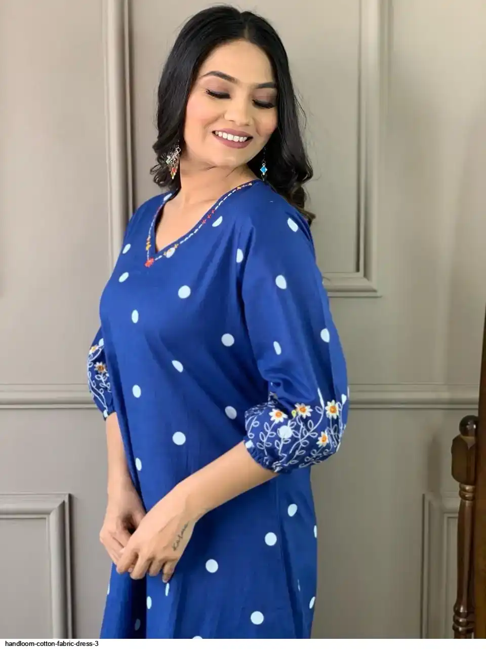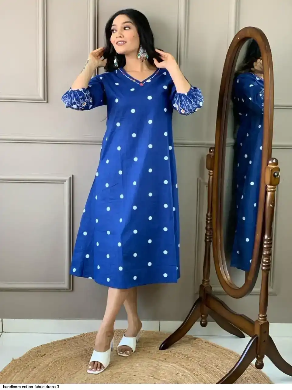 Embroidery on sleeves nd neck work one piece A line style midi style.