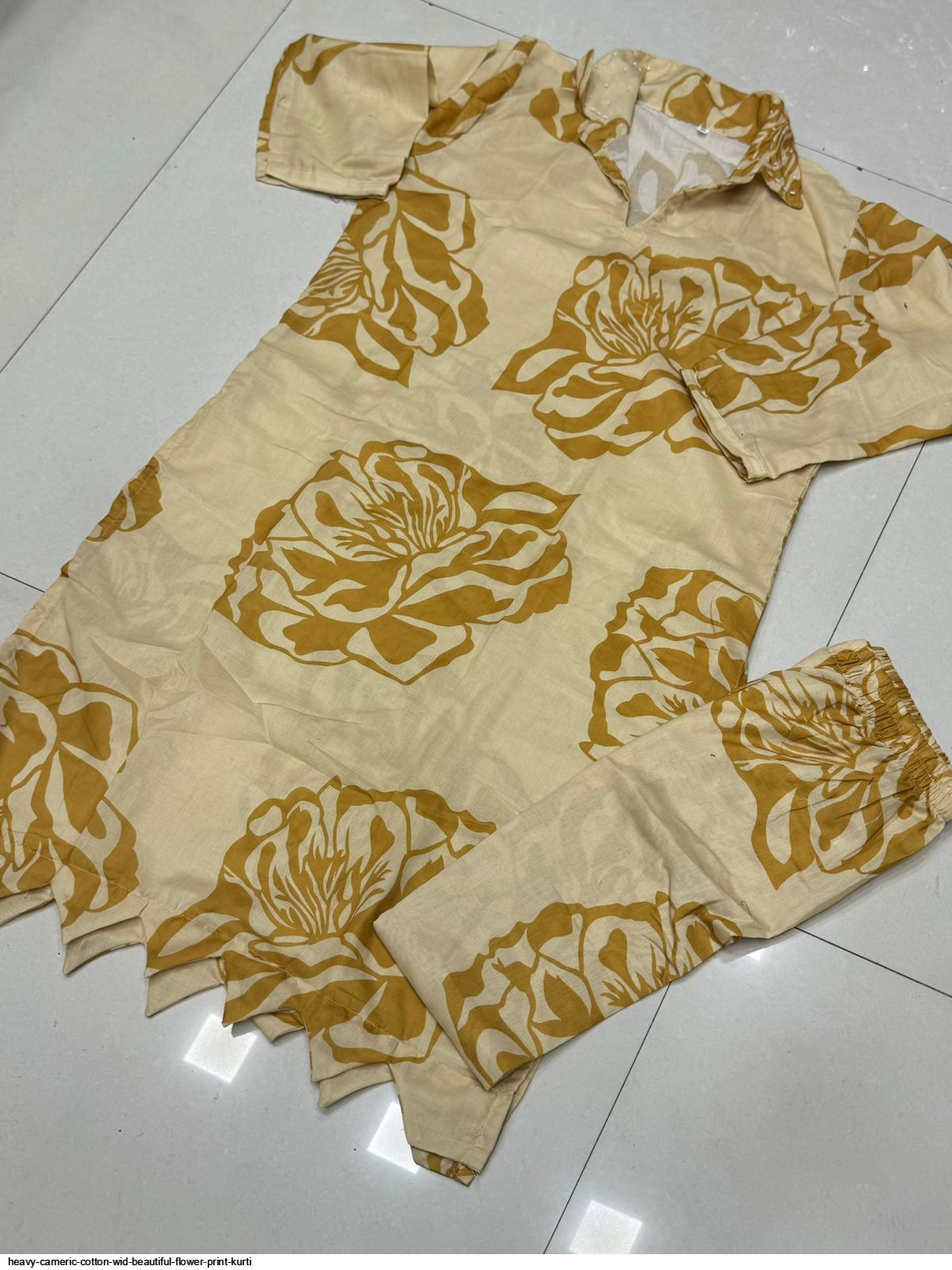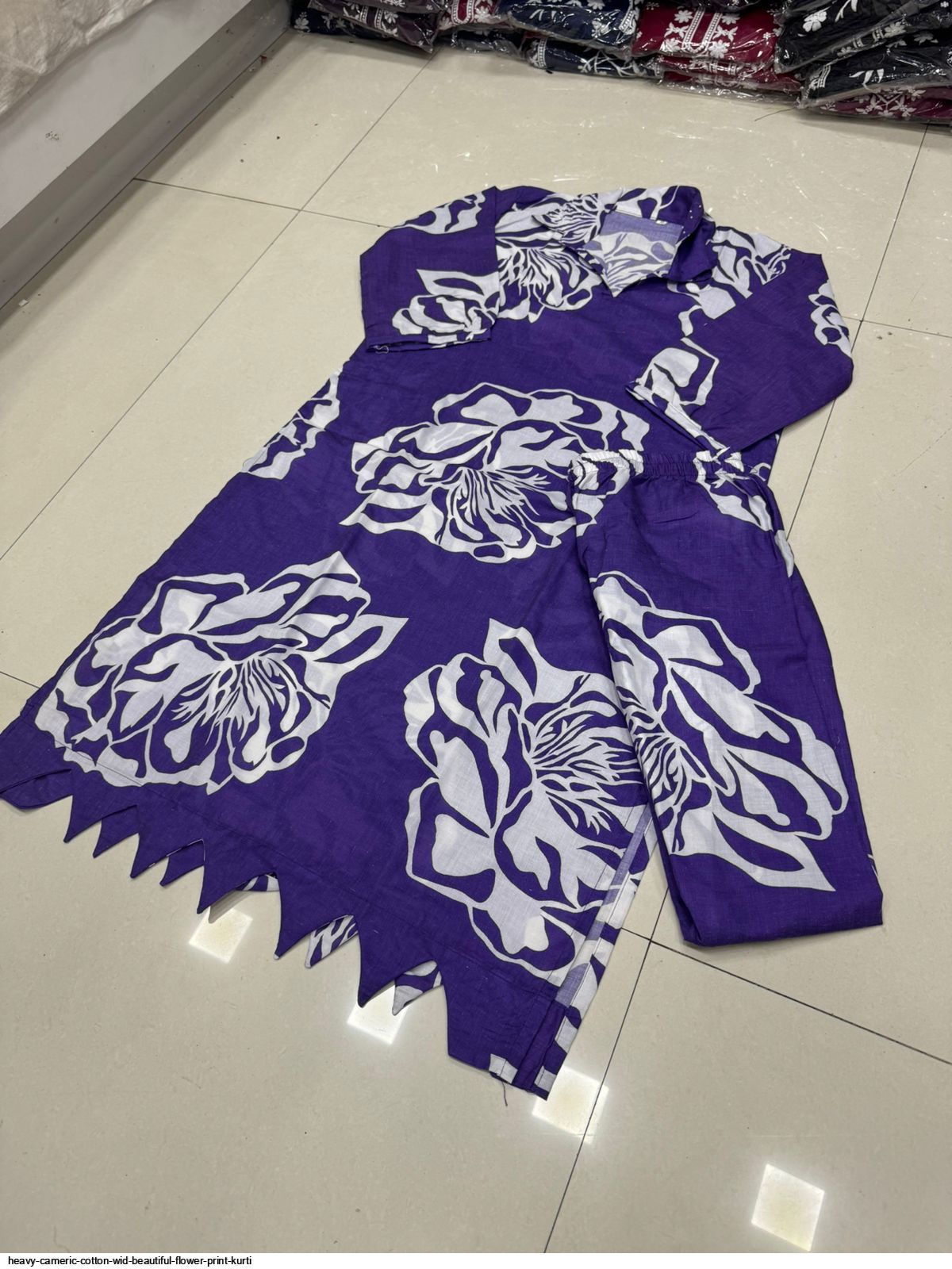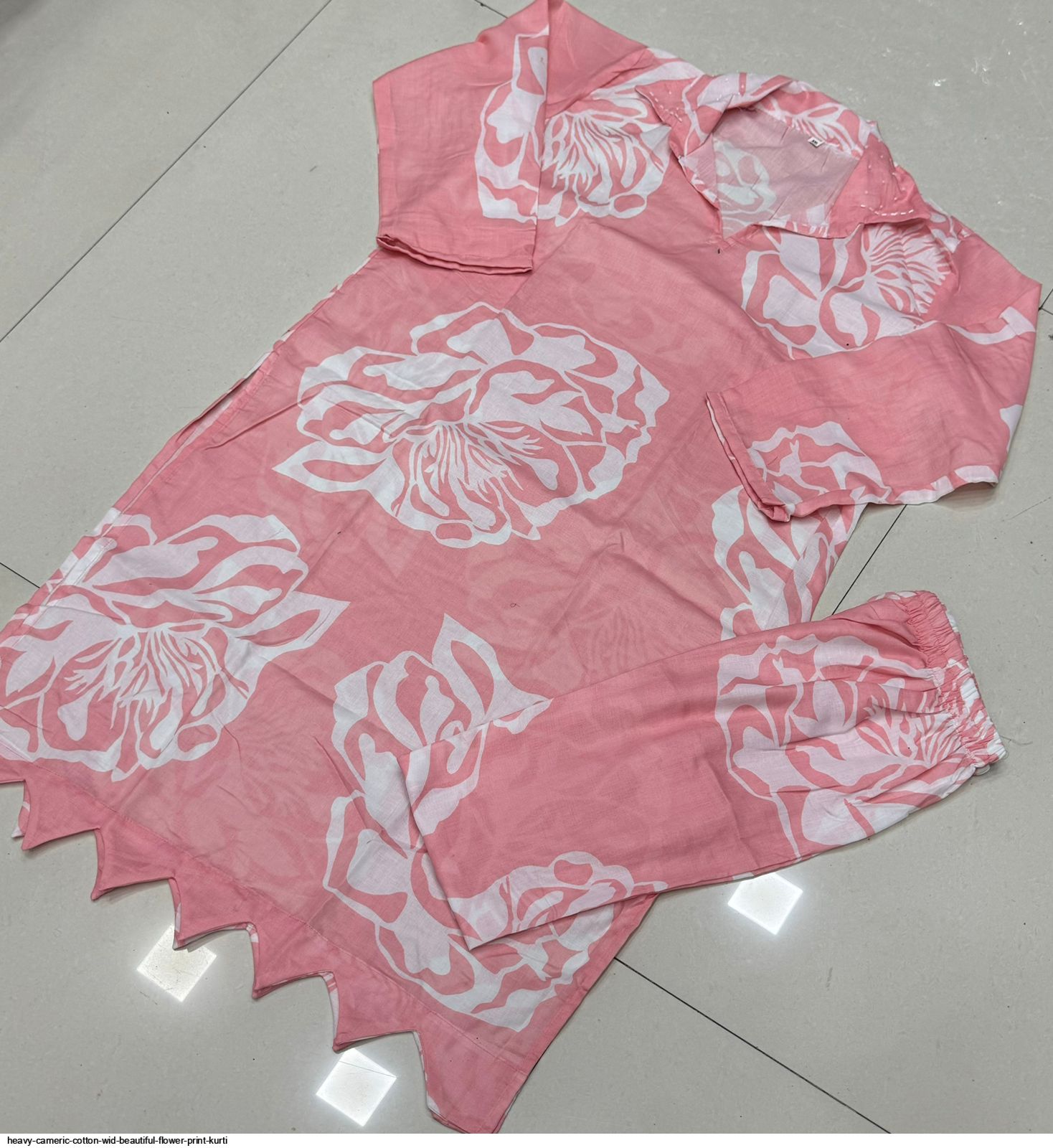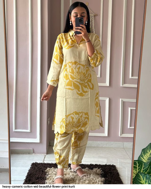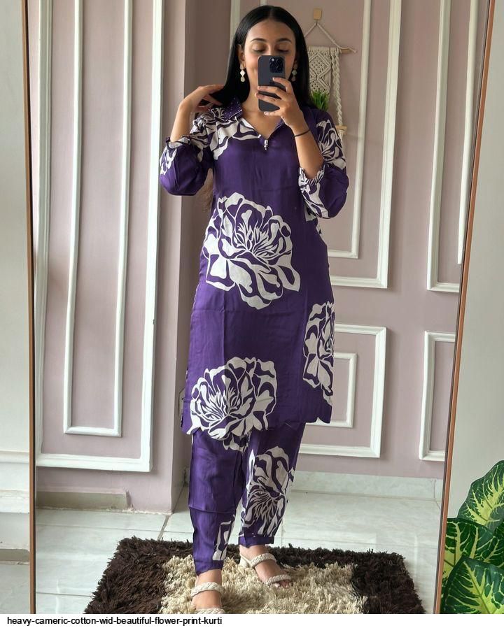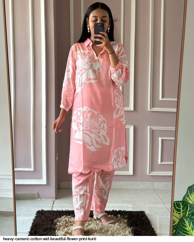 Fabric HEAVY CAMERIC COTTON WID BEAUTIFUL FLOWER PRINT HAVING CUTWORK AT THE LOWER PART OF KURTI