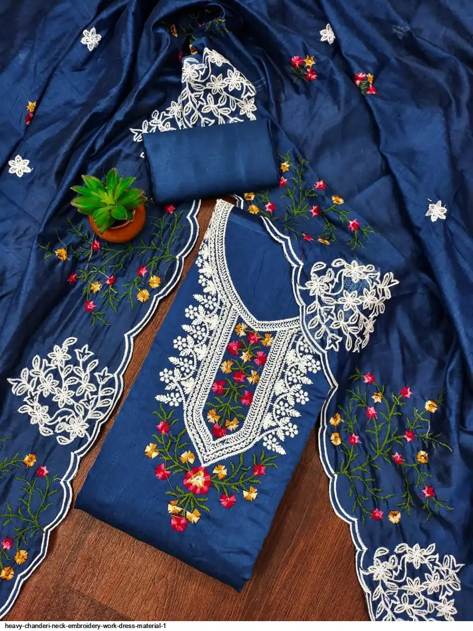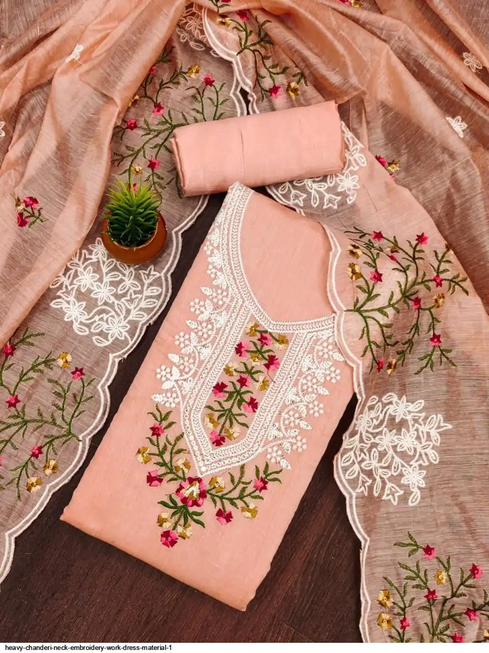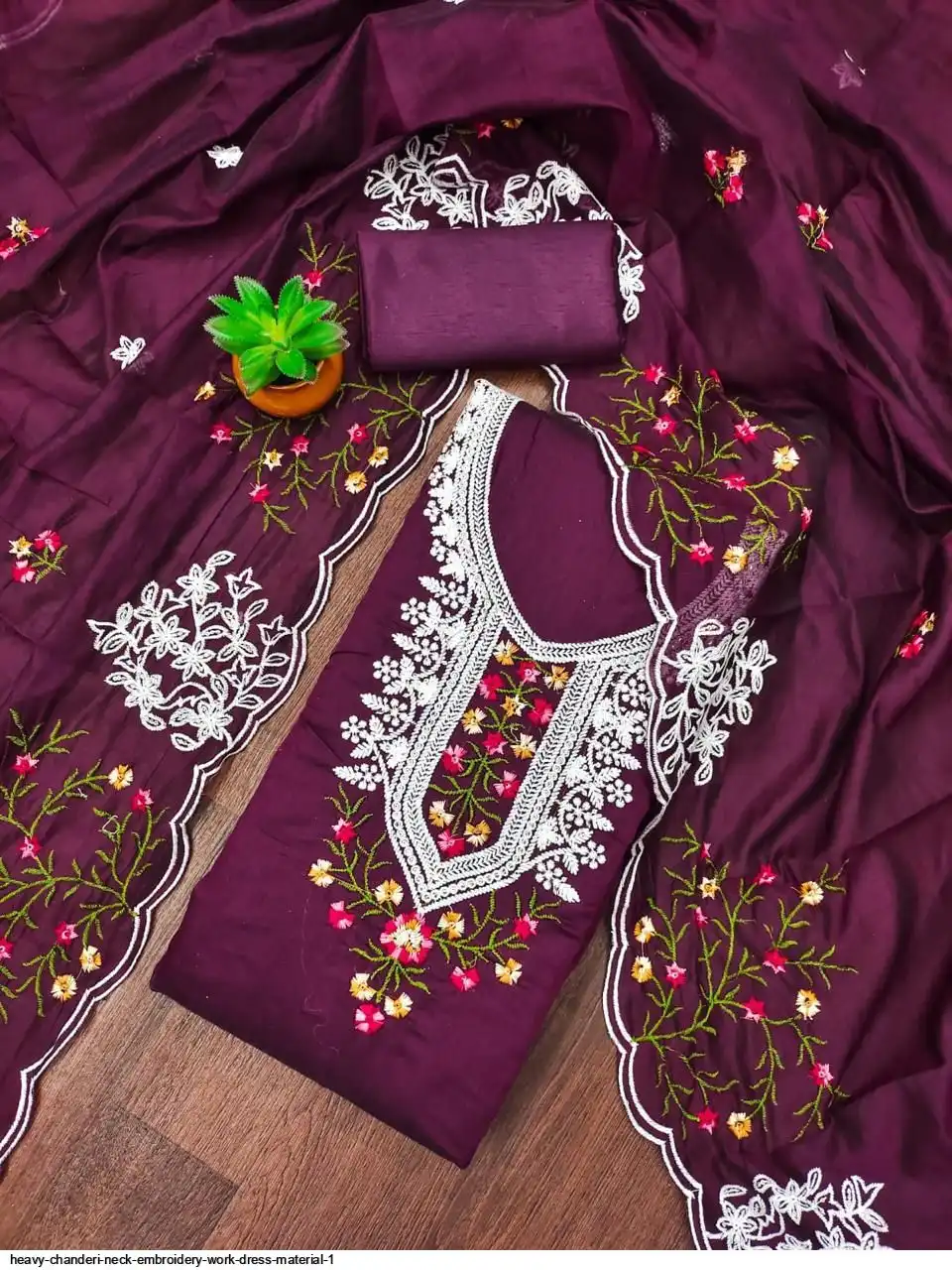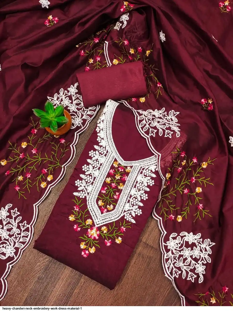 Top : HEAVY CHANDERI NECK EMBROIDERY WORK 1.9 MTS