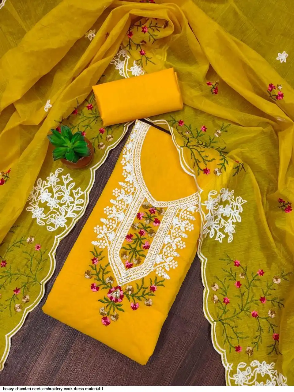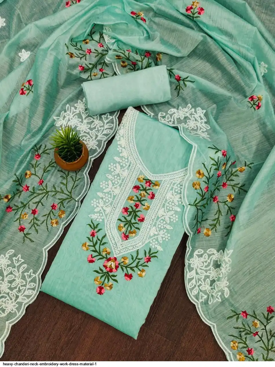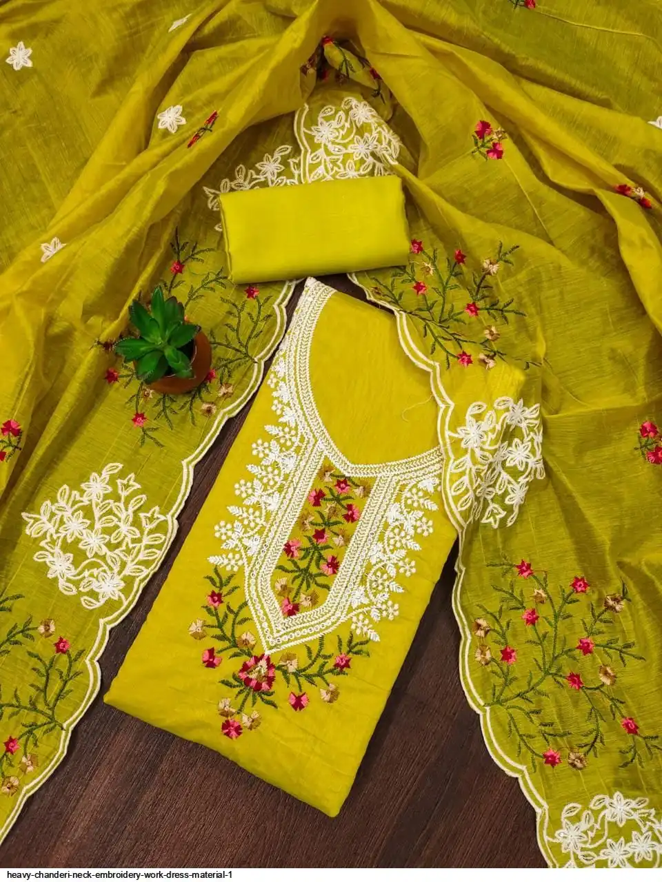 Top : HEAVY CHANDERI NECK EMBROIDERY WORK 1.9 MTS
