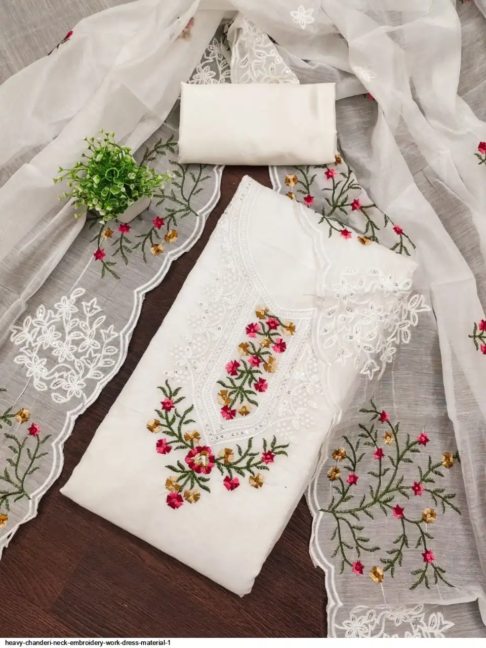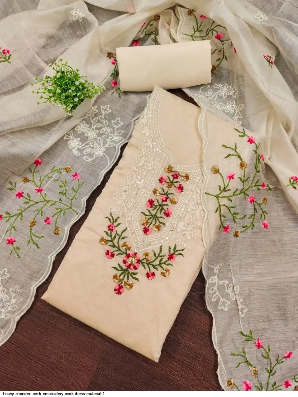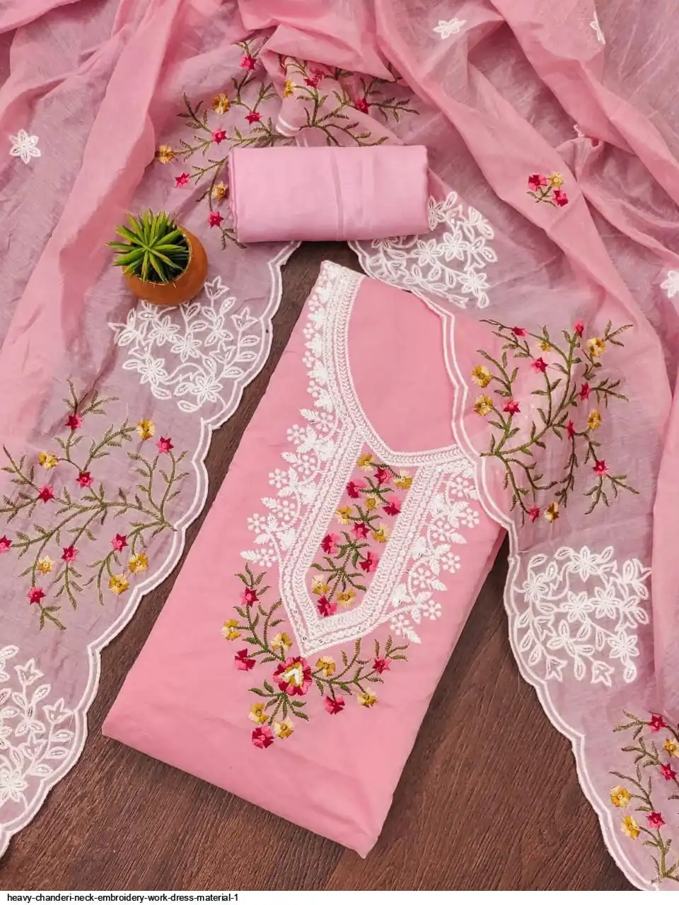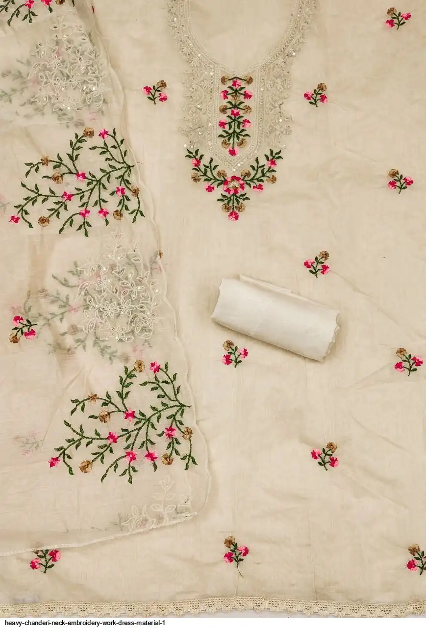Top : HEAVY CHANDERI NECK EMBROIDERY WORK 1.9 MTS