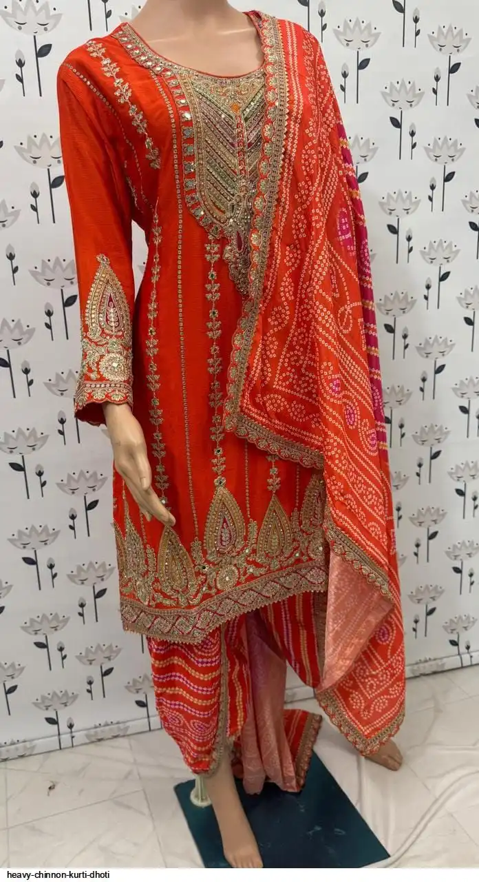 HEAVY CHINNON KURTI DHOTI 2131
