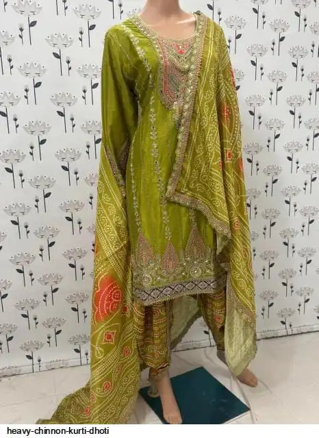 HEAVY CHINNON KURTI DHOTI 2133