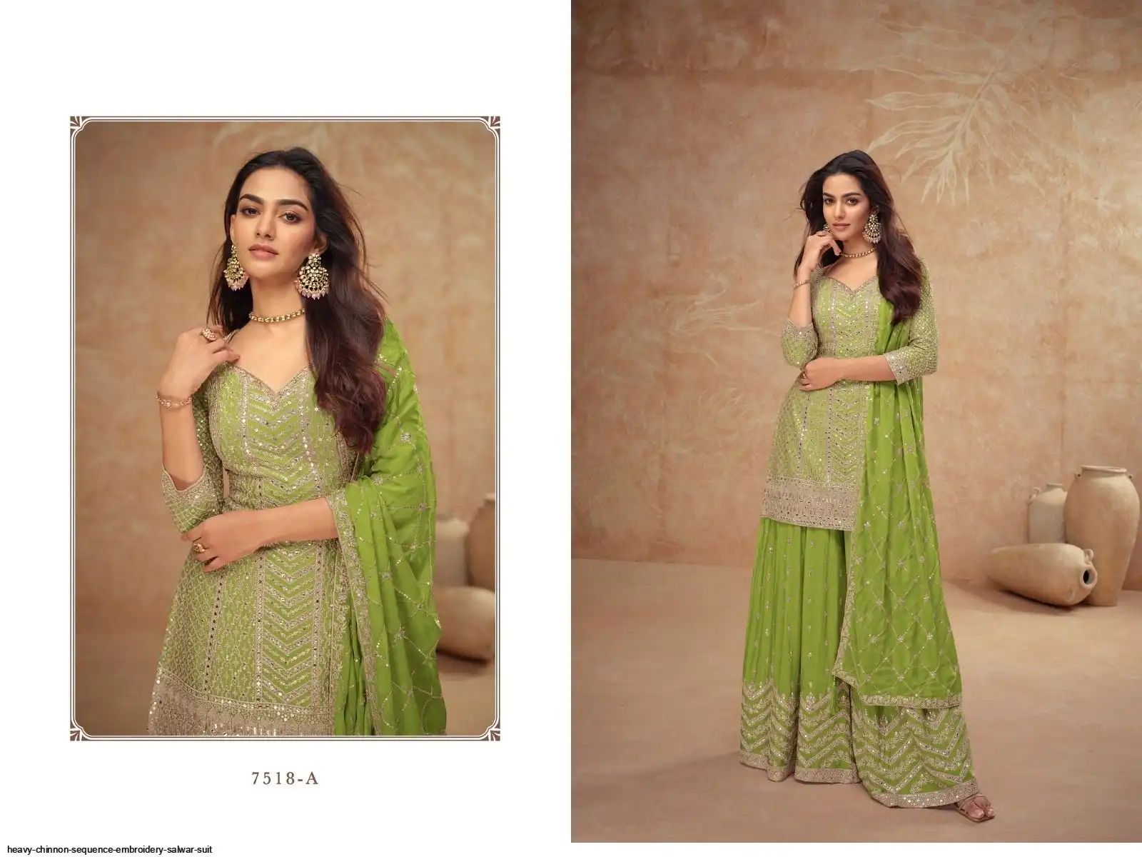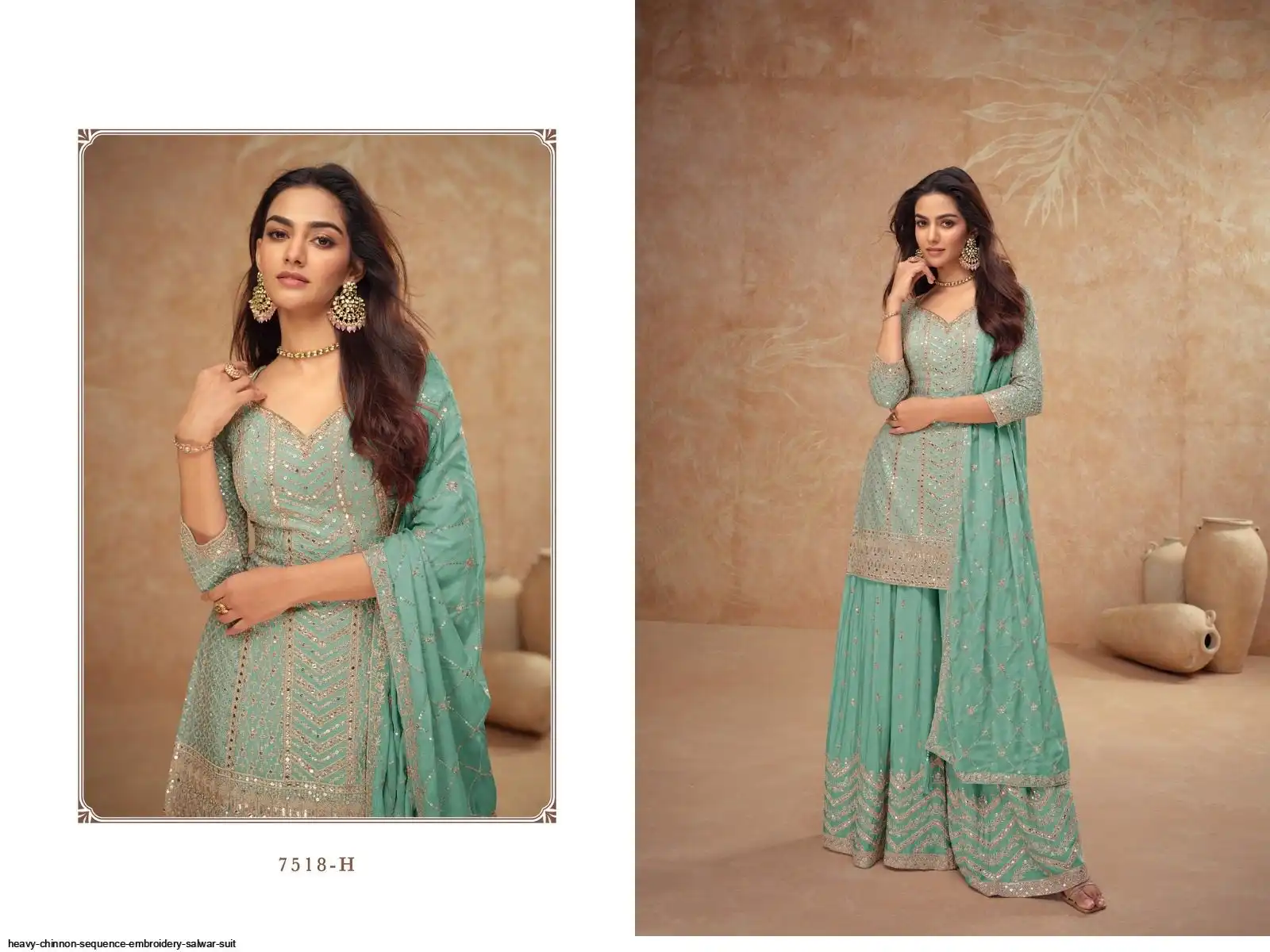 TOP :- Heavy Chinon With Sequence Embroidery Stich Work