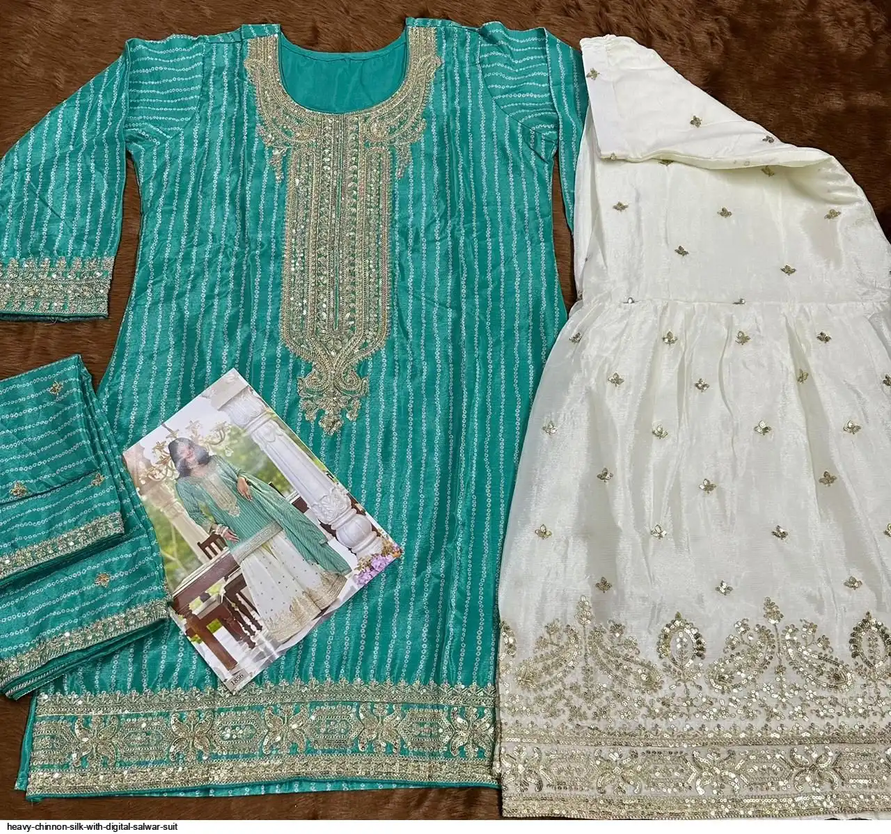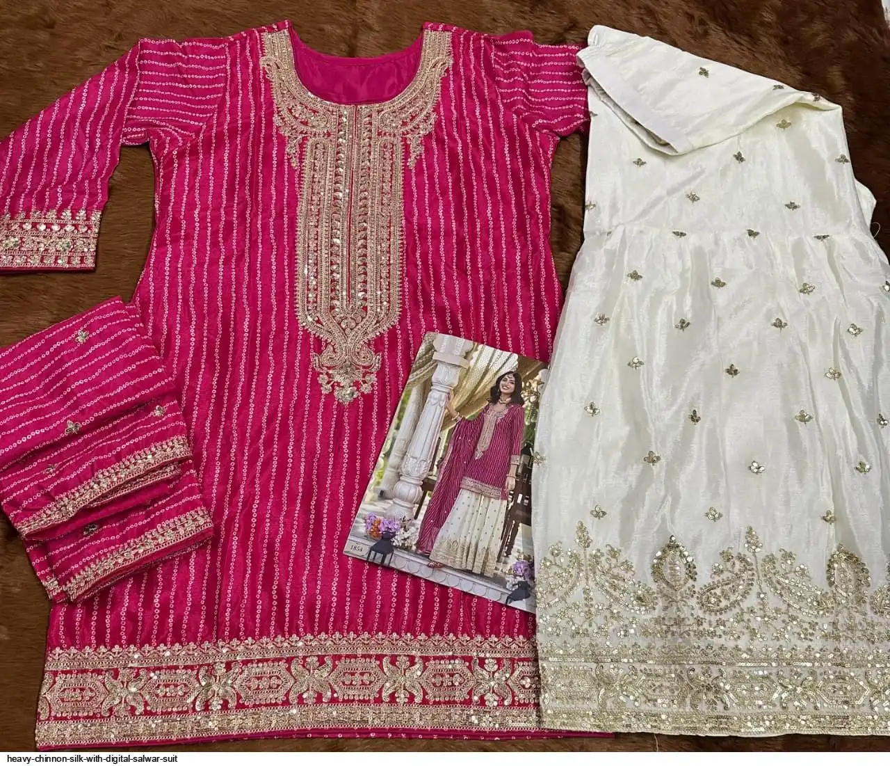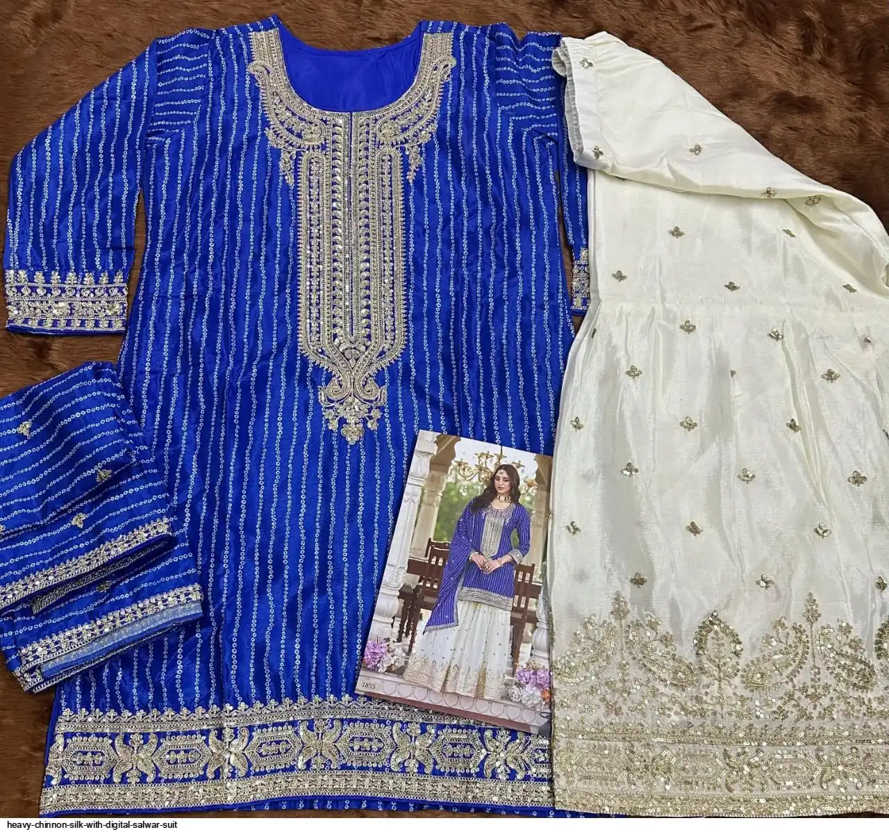 TOP :- Heavy Chinon Silk with Digital Print With Emb.. siquance work